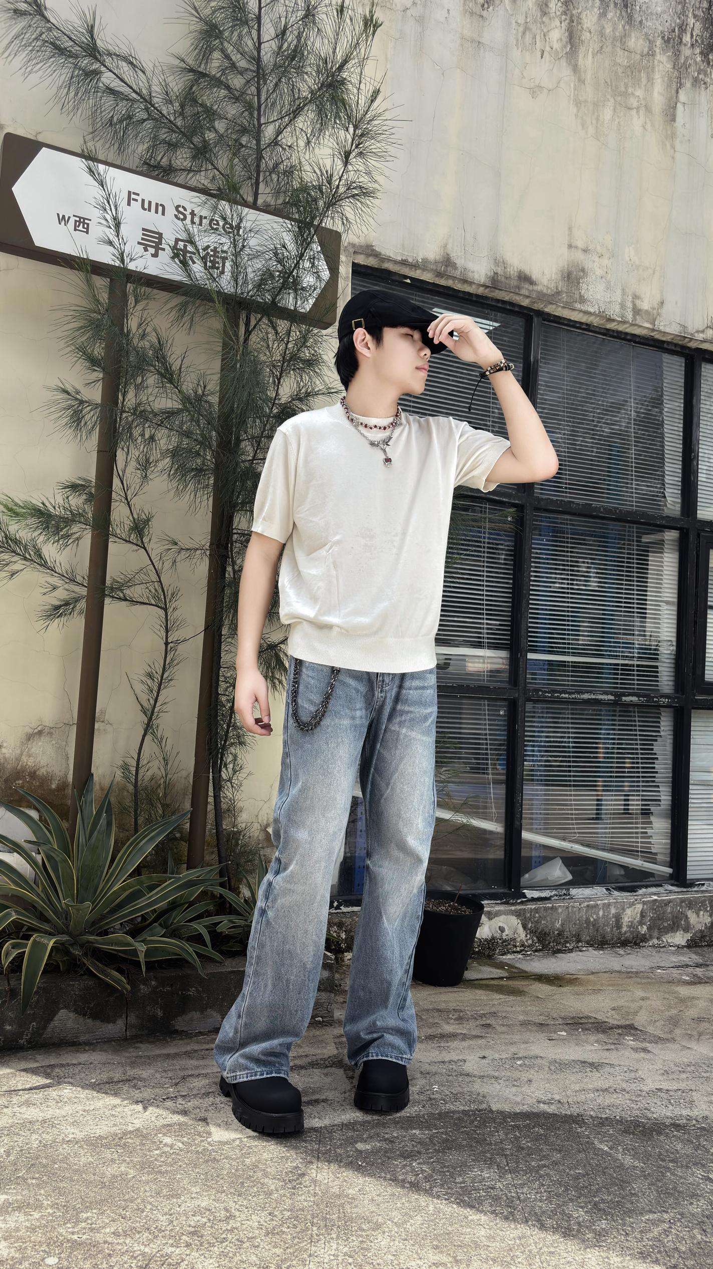 👔上衣基础塑身白t版型偏宽松 简约而不失去气质 👖下半身微喇牛仔裤 面料质感都很好 日常出勤工作日学生党穿都没问题! 🧢贝雷帽设计穿出艺术感,纯黑戴上很显质感,穿戴方式都挺有风格,平时旅游 工作穿上老板都说你是艺术生吗!