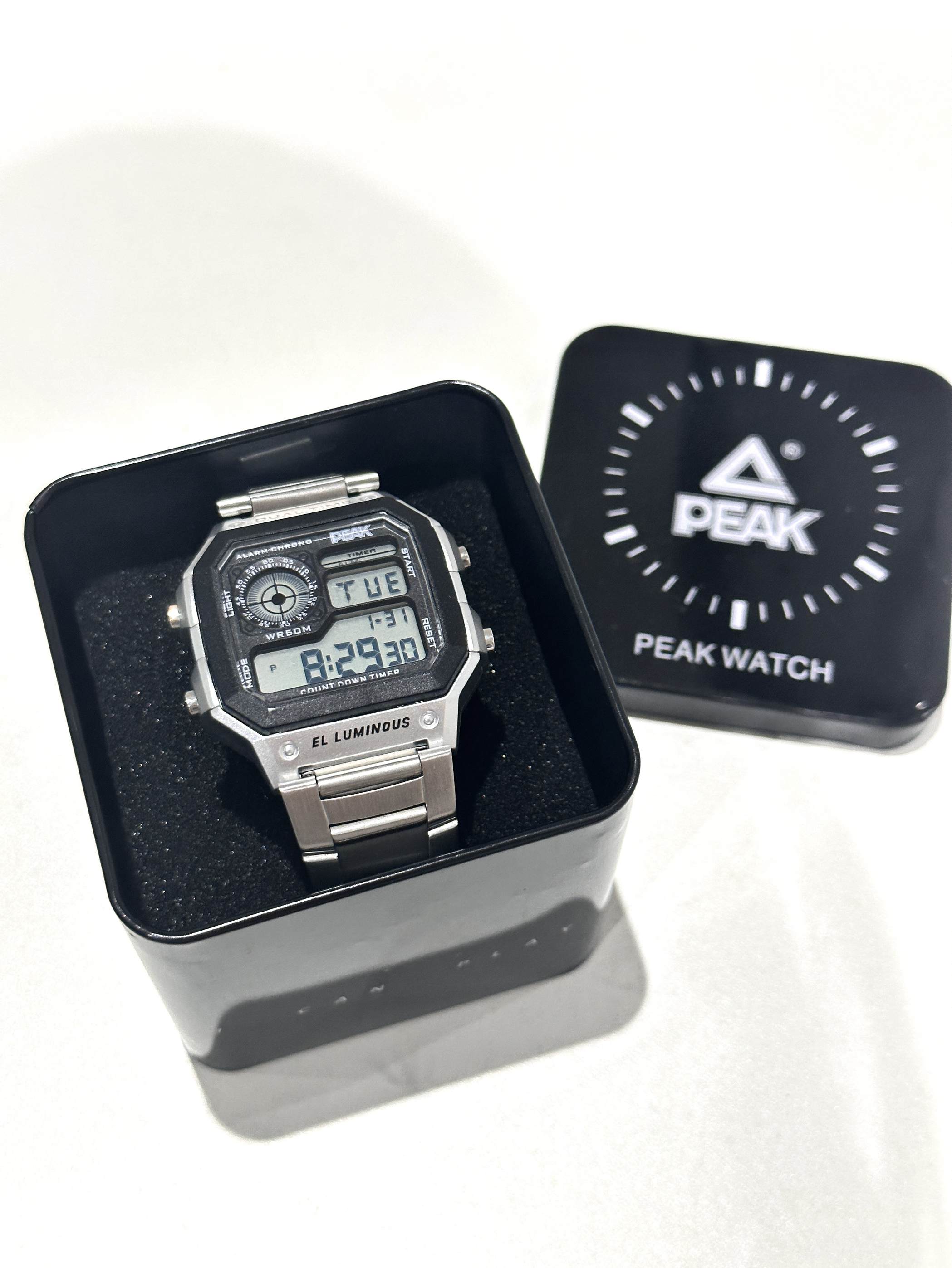 本篇笔记关联了Peak/匹克 经典复古系列 50米防水金属不锈钢表壳初高中防摔小方块电子男女同款手表 银色等商品,为用户提供真实的使用体验和购买参考。