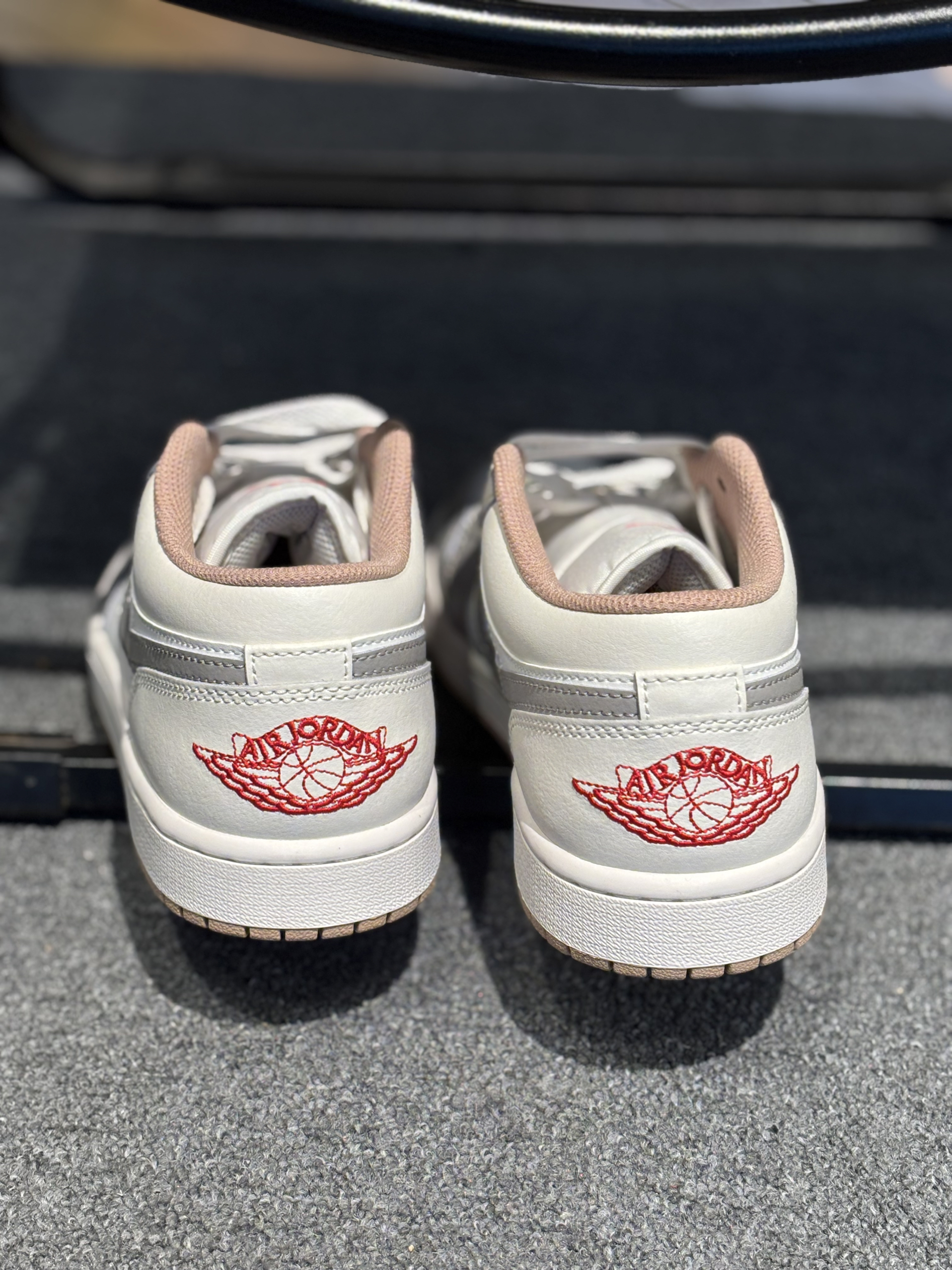 👟 设计亮点: 【经典配色】这双AJ1采用了白色和灰色的搭配,简约而不失时尚感,非常适合日常穿搭。 【细节设计】鞋后跟的红色“Air Jordan”标志和鞋舌上的红色飞人标志,增添了一丝活力和辨识度。 【舒适体验】鞋帮设计不仅保护脚踝,还提供了良好的支撑性,让你在运动中更加自如。 👟 穿搭建议: • 休闲风:搭配牛仔裤和一件简单的T恤,轻松打造休闲街头风。 • 运动风:搭配运动裤和运动上衣,适...