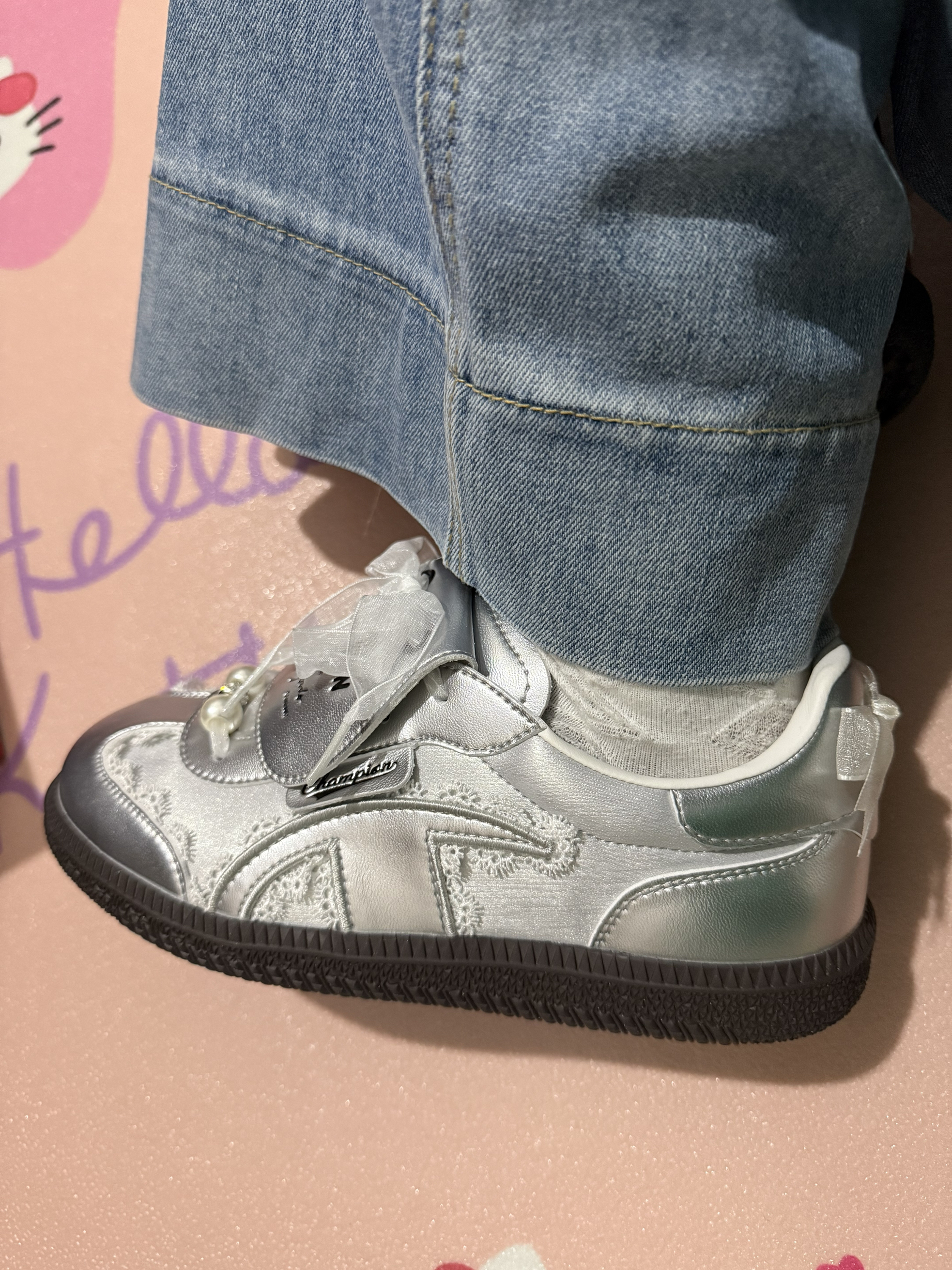 救命!挖到宝藏鞋了!Champion 025春季新款日系德训板鞋太绝了!银色革面自带清冷高级感,阳光下微微反光,低调又超吸睛✨ 鞋型利落显瘦,上脚瞬间拉长腿部线条,小个子也能拥有大长腿既视感!日系简约风适配各种穿搭,牛仔裤、工装裤、连衣裙都能搭出不同味道。 德训鞋的经典设计加上Champion的细节巧思,复古又时髦。鞋垫柔软回弹,暴走一整天也不累脚!这双真的闭眼入,谁穿谁好看!