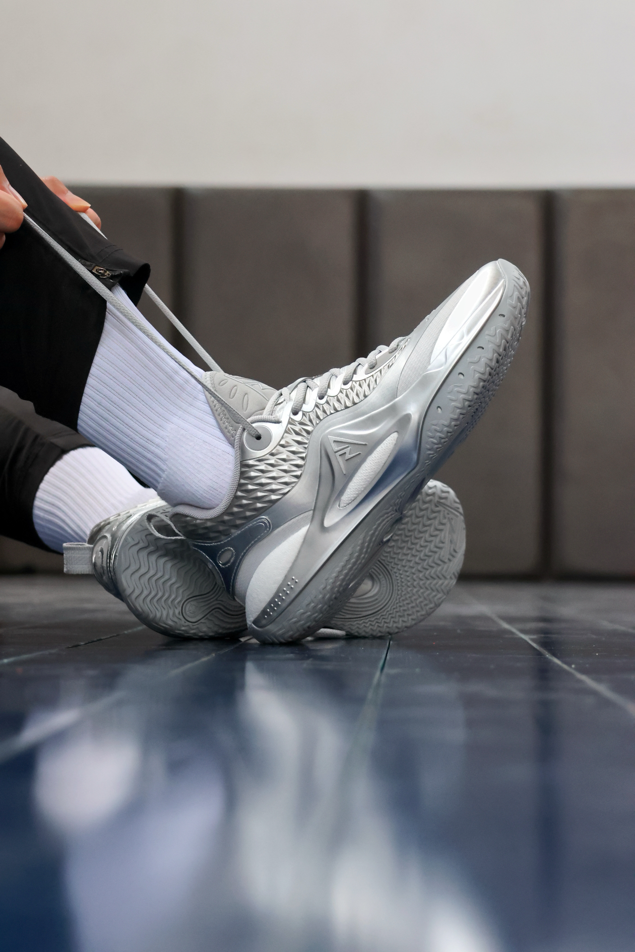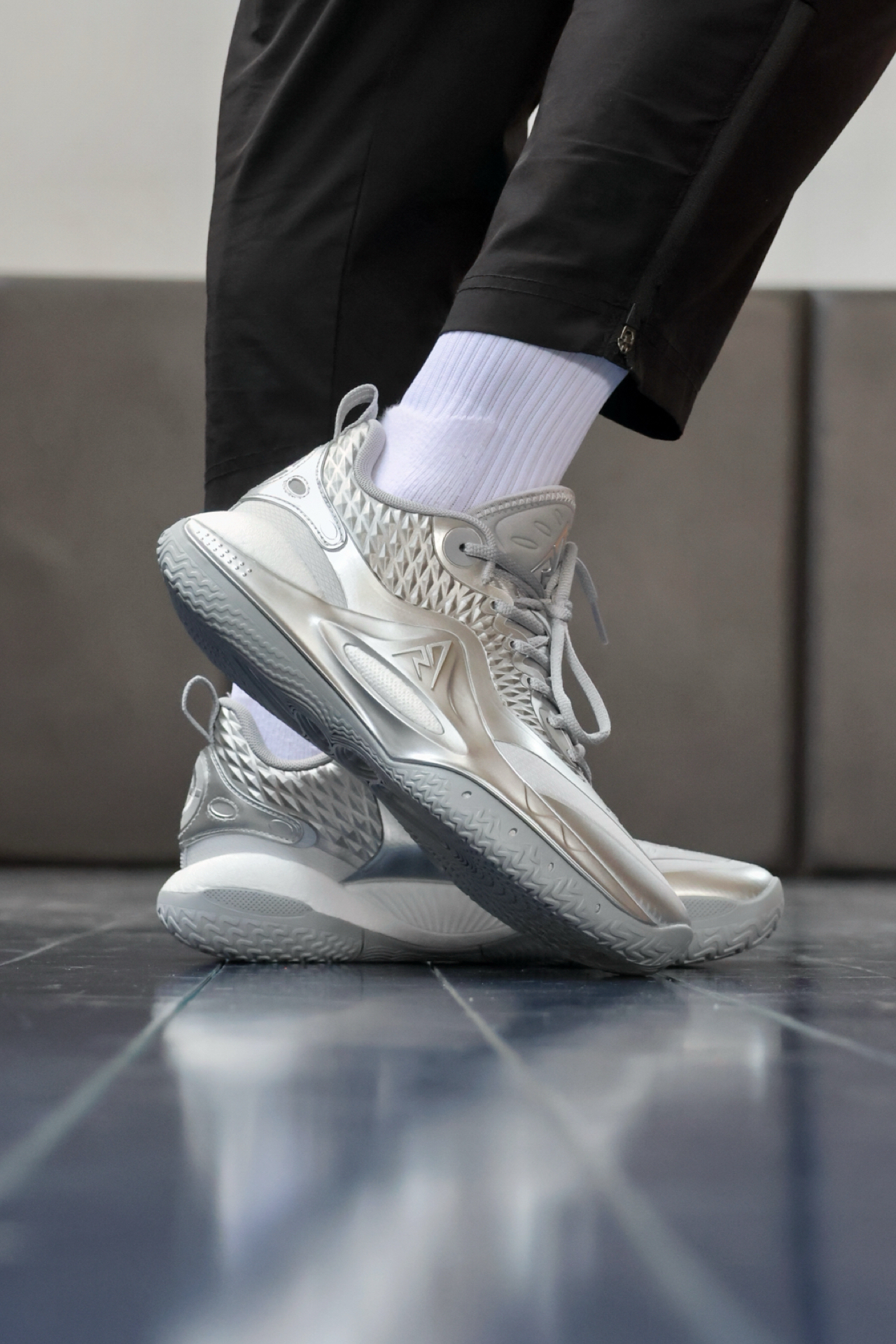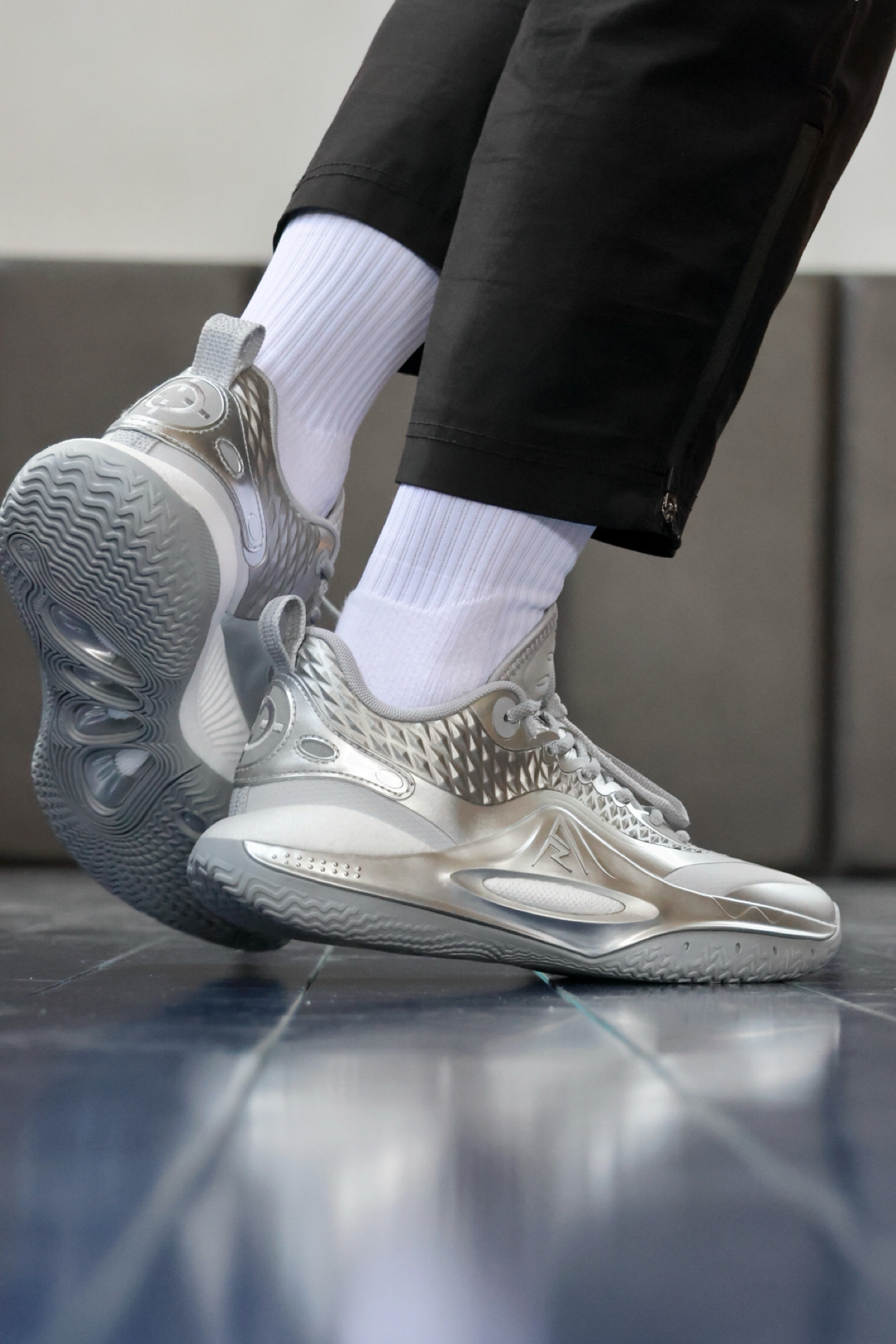 今天又是一双来自准备Ar2的新配色!不得不说 这个质感实物到手真的太棒了! 鞋面的材质有点液态银的感觉 且鞋身的做工 非常出色!喜欢质感的兄弟们 这一次配色千万不要错过! @不爱后撤步 #AR2千锤百炼 #里弗斯2幽灵 #准者里弗斯2代