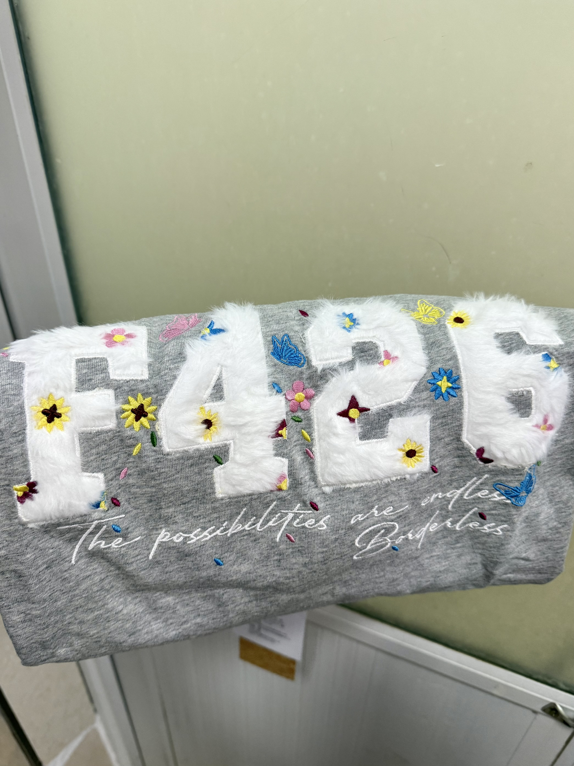 166 102穿的是M码 胸前的logo是毛毛组成的 上面还有花朵🌸刺绣!!!穿上超级吸睛呀 而且自带活力感哦 喜欢的宝宝可以参考一下哦