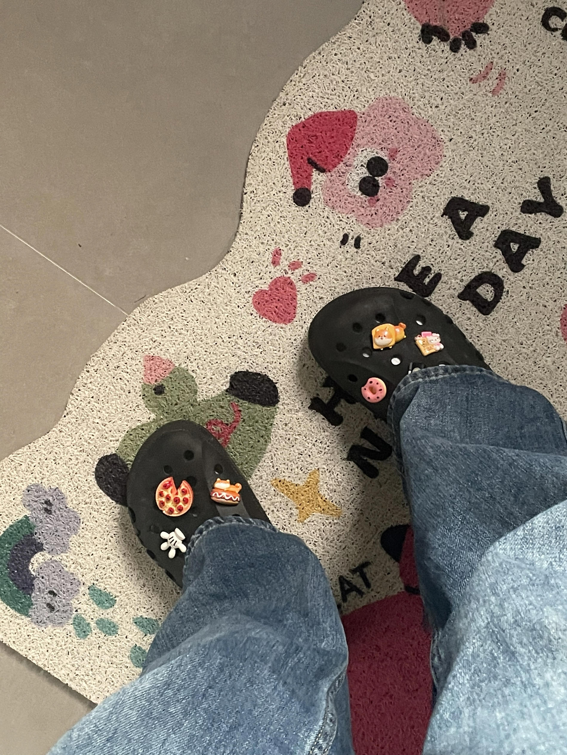 crocs洞洞鞋!黑色经典不过时耐脏好打理!脚底很软下雨天穿也不担心 可以随意diy鞋花相当于多双鞋!好穿爱穿!