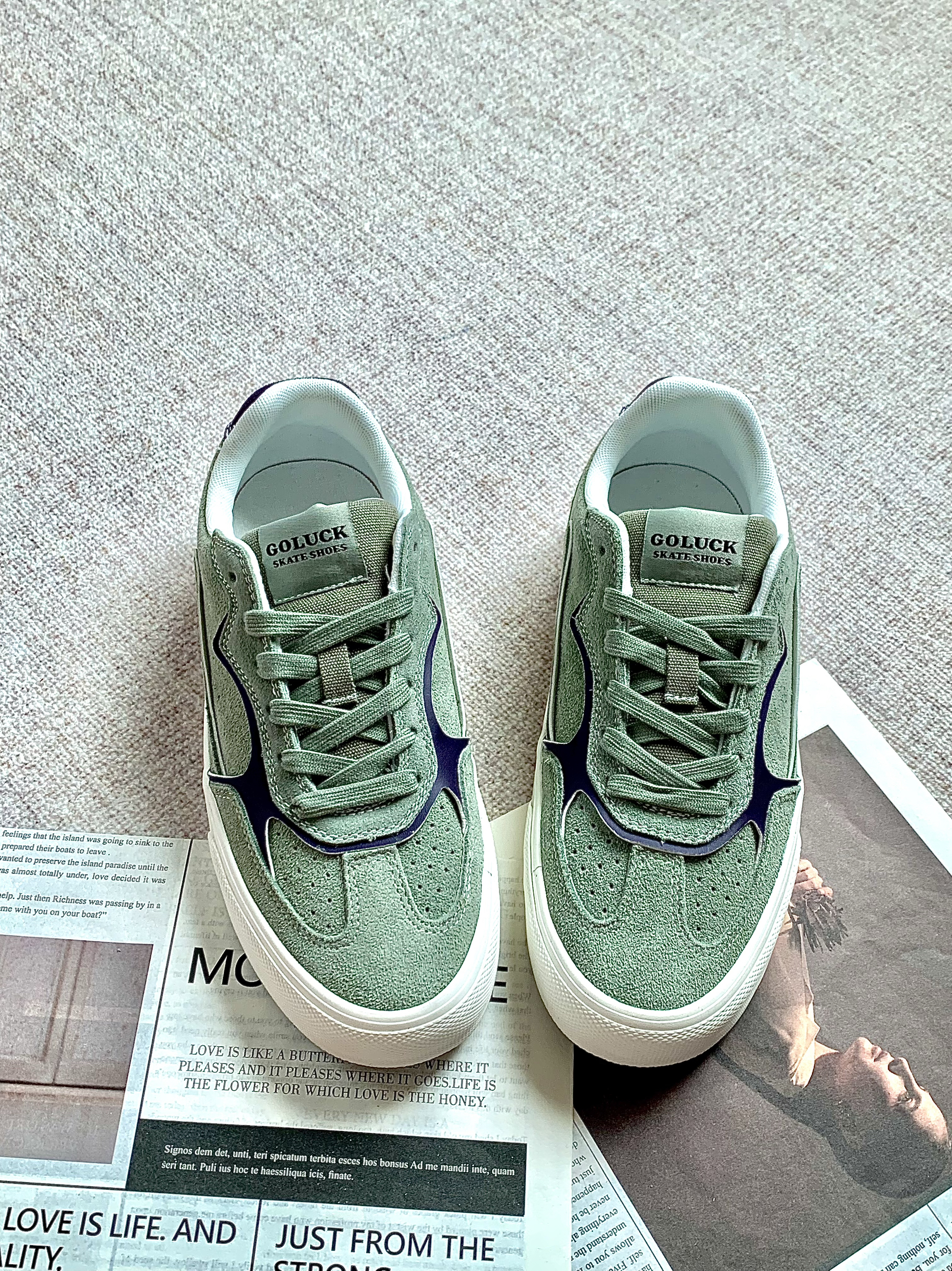 可爱奶绿板鞋🍈 🧐是一双百搭的滑板鞋,🍐🥝🥑鞋子质感十足,耐磨性强,夏天的颜色,淡淡的有点像马卡龙色盘的调调。 设计的是专业滑板PU减震鞋垫 同时也可以很好保护脚踝🤩