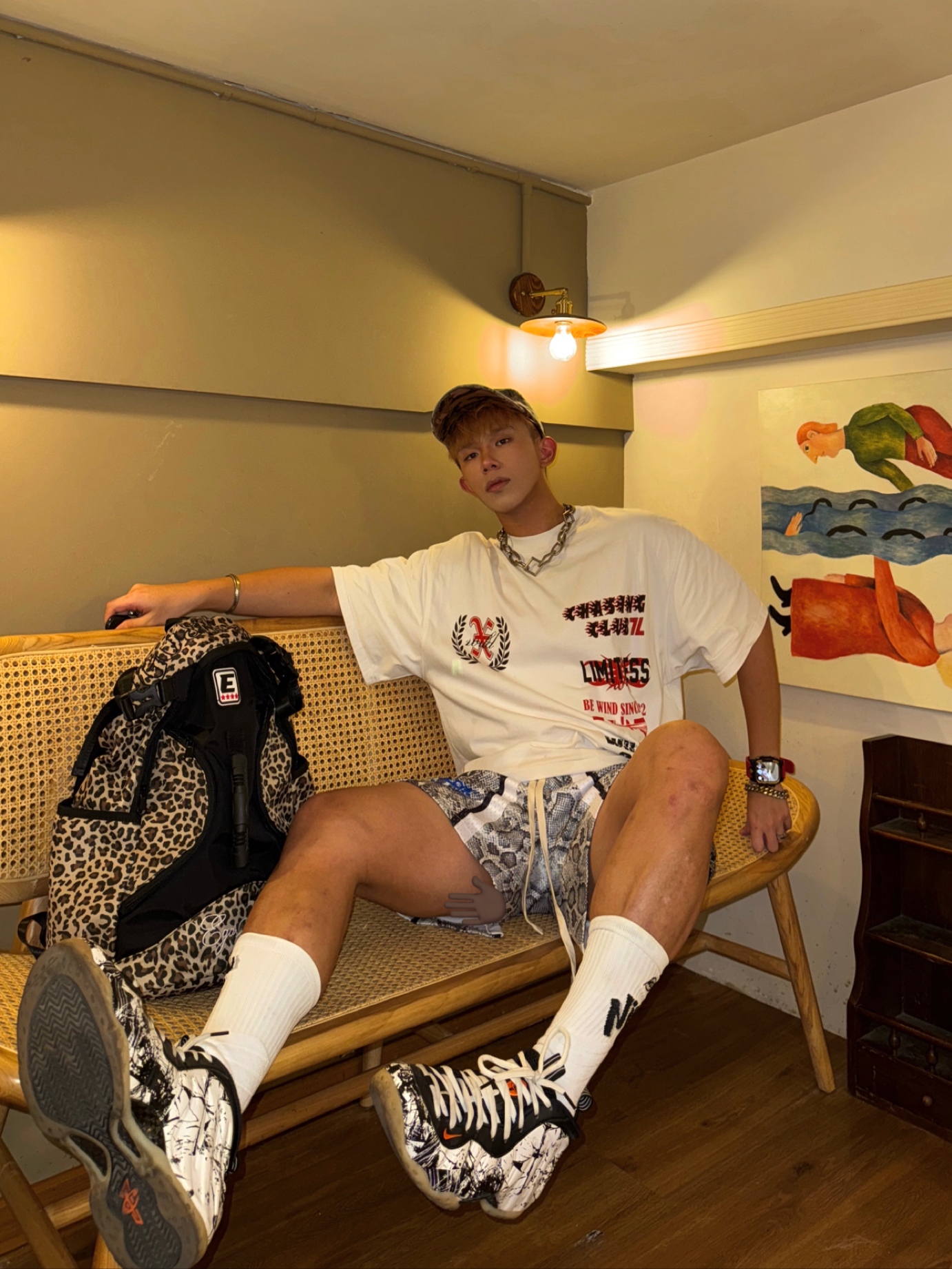 今天穿什么鞋❔——万圣节喷🎃 今天穿的蛇纹短裤 跟万圣节喷的涂鸦图案还挺呼应的 搭配美式小logo白t 一套还蛮有复古美式街头少年感的 被朋友评价:“小熊穿黑白色系才对味嘛”🐻❄️ #复古男神ootd #潮鞋分享男生穿搭 #潮男OOTD🔥🔥🔥 #晒晒男生穿搭穿搭ootd #每日球鞋上脚