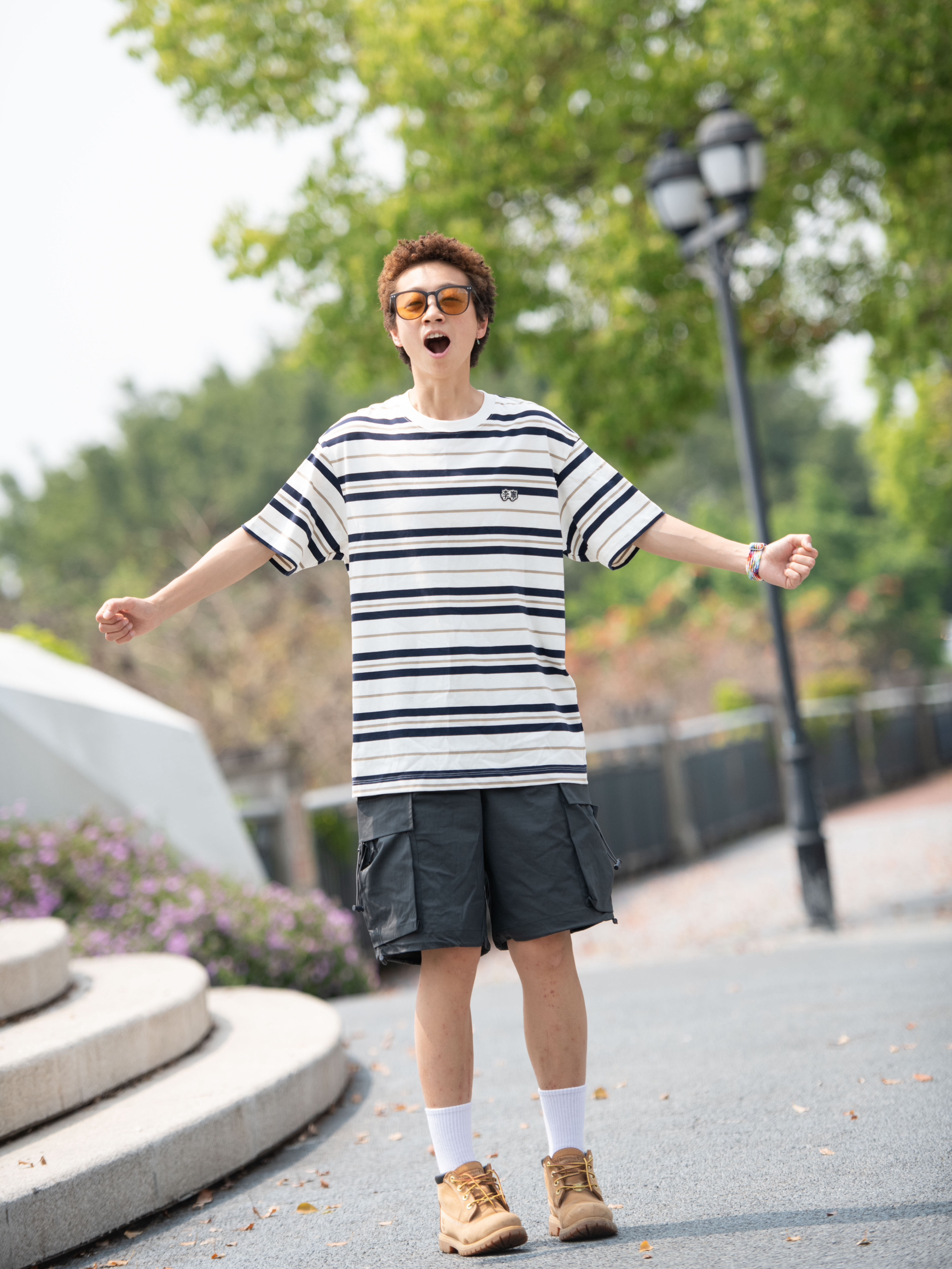 欢迎进入无敌小圆哇子的穿搭分享频道 172CM|55KG 👔:m👖:m|👟:39码 运动穿搭10秒出门那就上身ASICS的清爽白配绿哒运动套装吧! 阳光下质感拉满耶✌️ 简约V领T,搭配短裤 上身一秒干净利落 自带松弛自在的氛围感。 脚上是这双ASICS Contend跑鞋 卡其色百搭的耶 Gogogo出门跑步咯