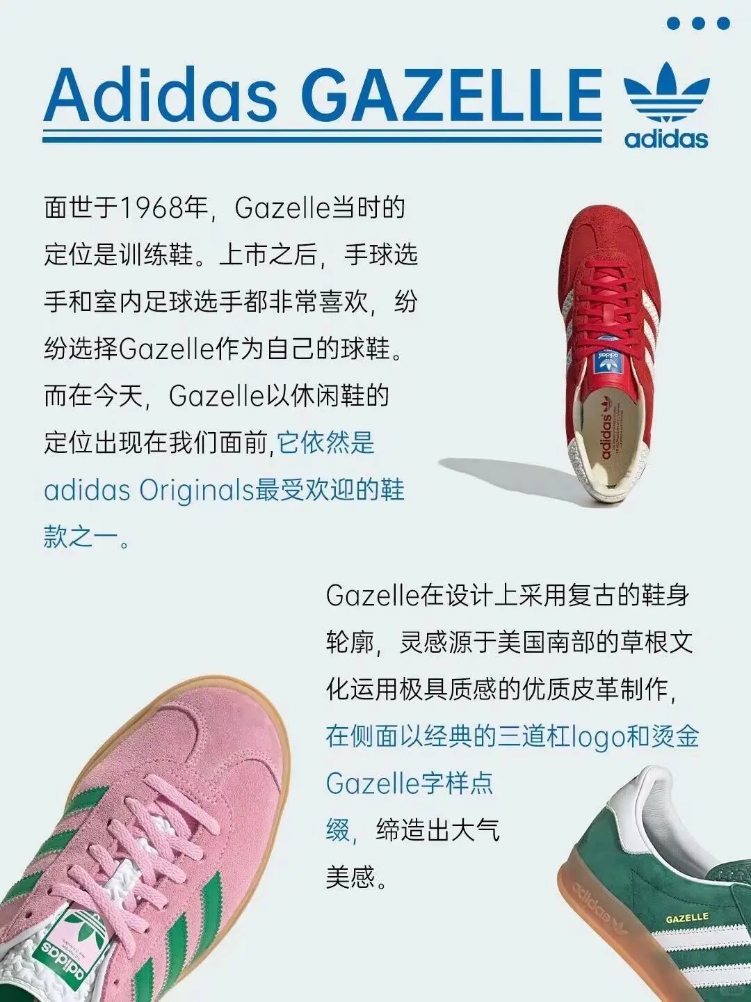 adidas经典款式汇总 从火爆全网的红蓝配色NMD系列,到深受潮流圈追捧YEEZY,到现如今引领板鞋潮流的Gazelle、SPEZIAL、SAMBA… 什么系列才是阿迪达斯经久不衰的款式呢?🤔🤔🤔 今天我们就来一起盘点一下那些热门又经典的阿迪达斯常青款鞋履。 #阿迪达斯休闲鞋#三叶草板鞋