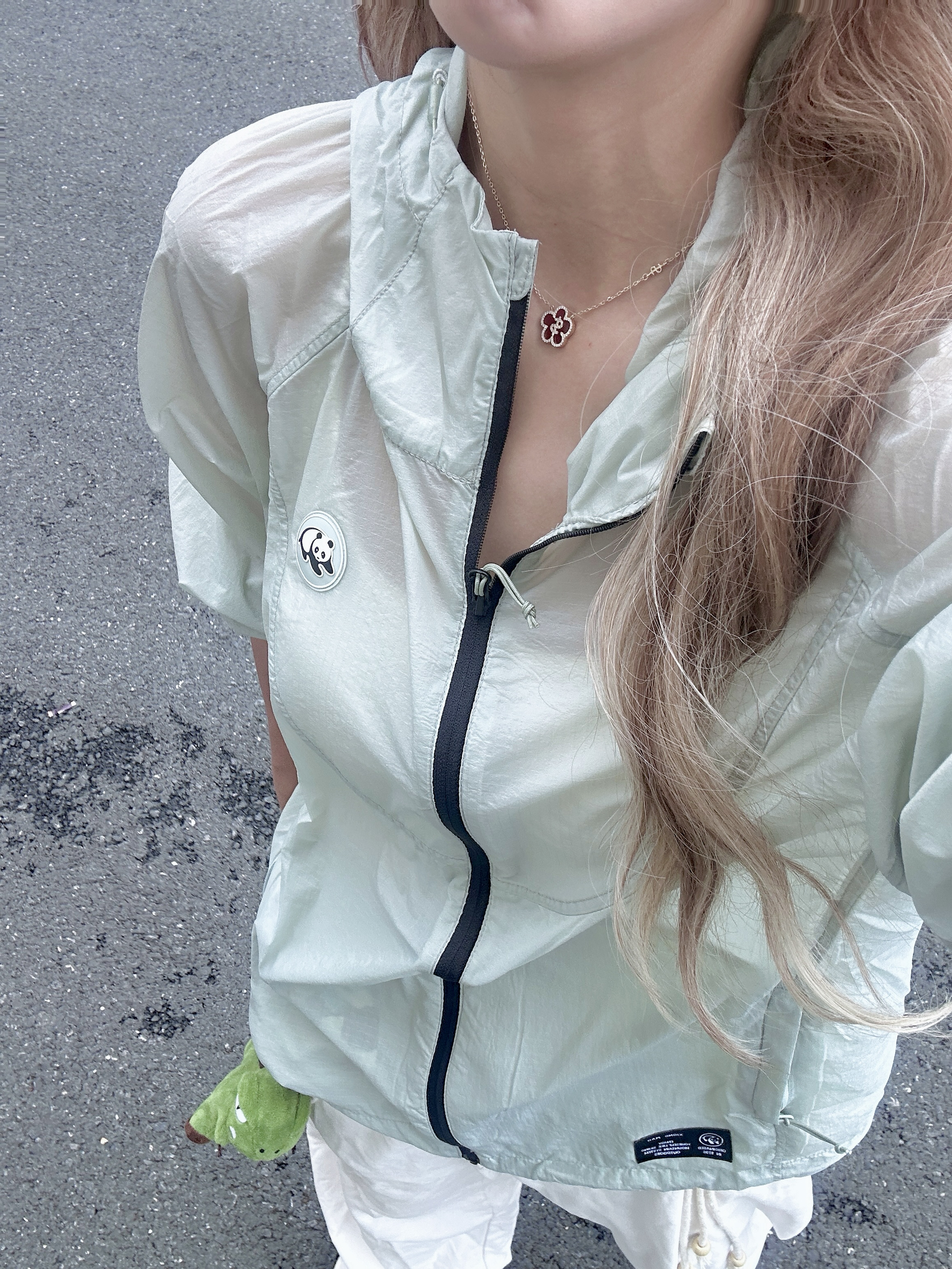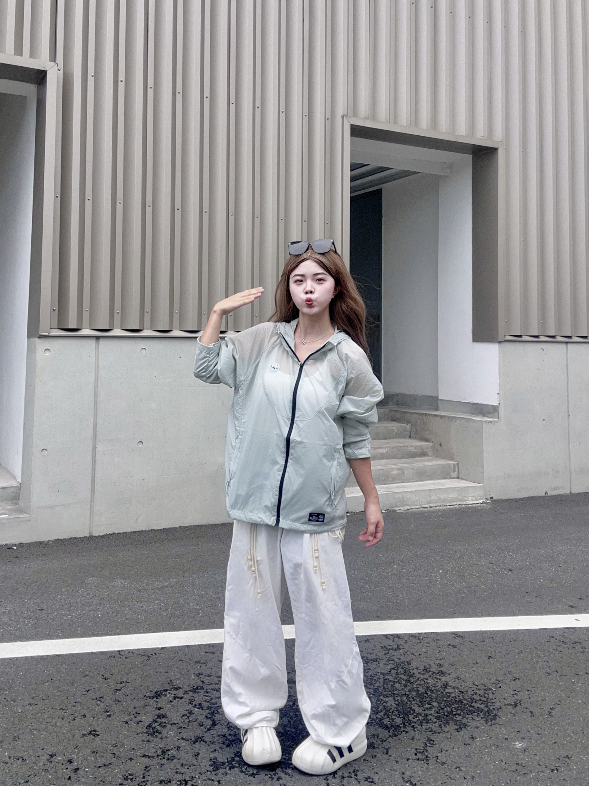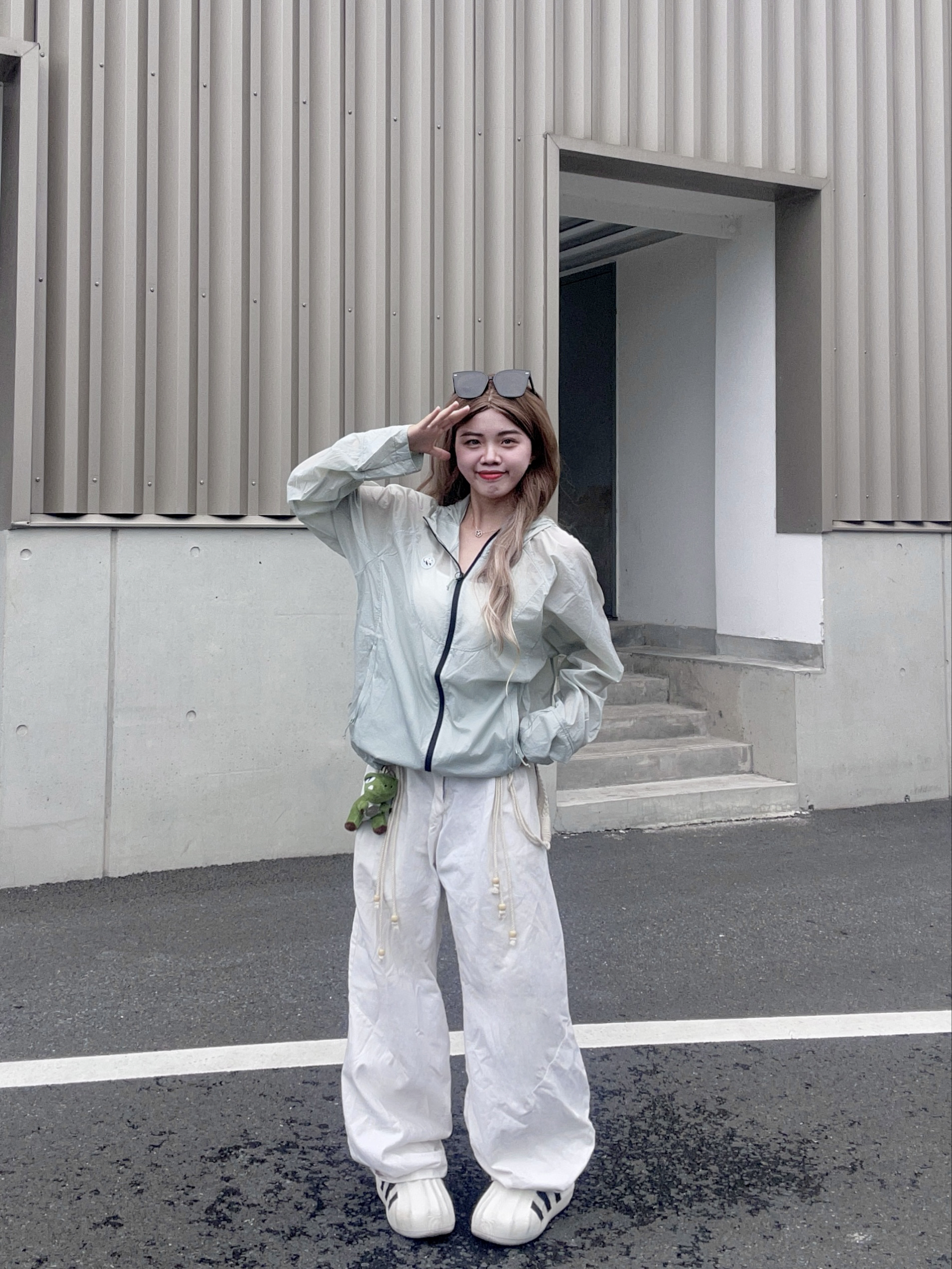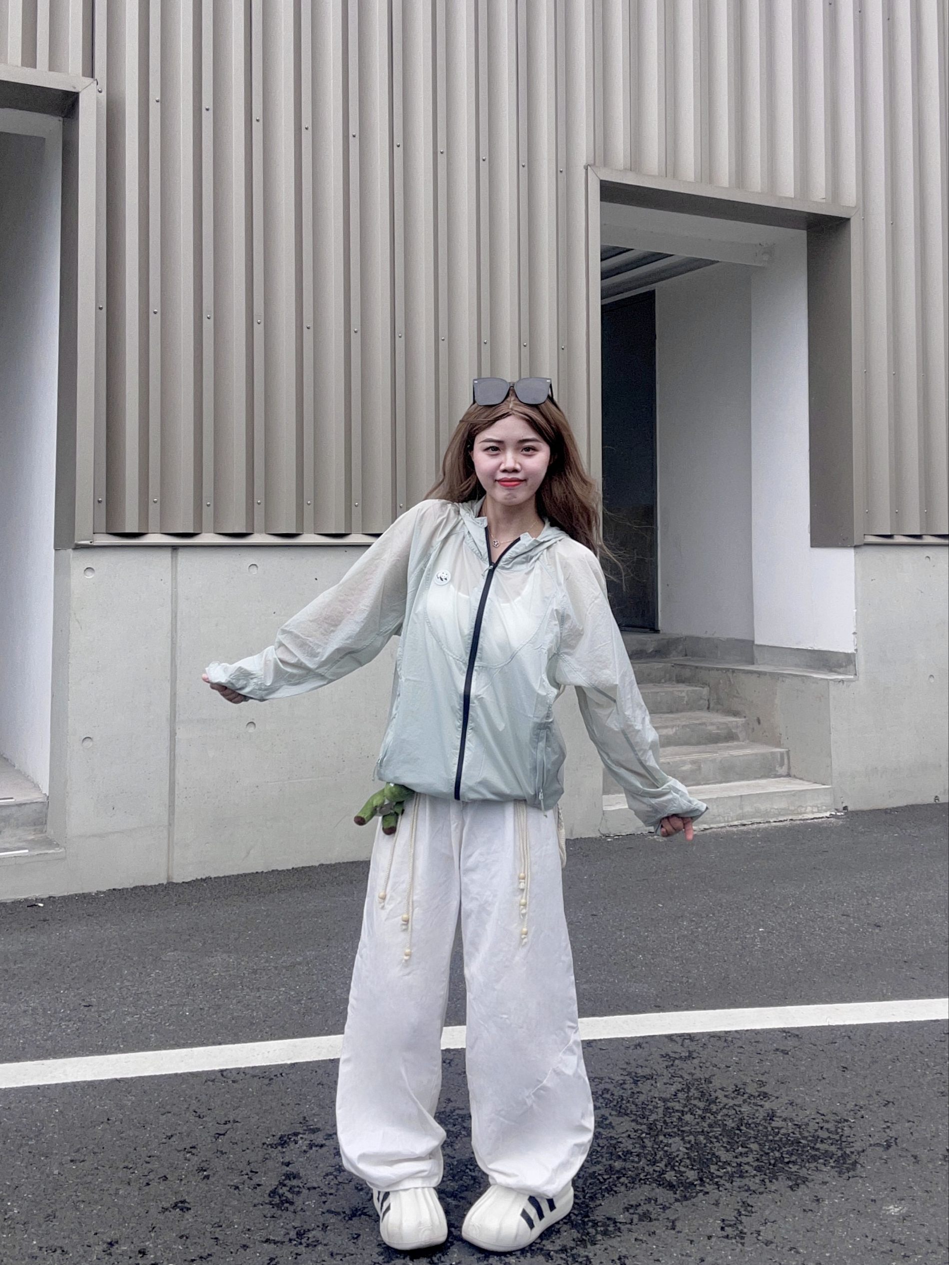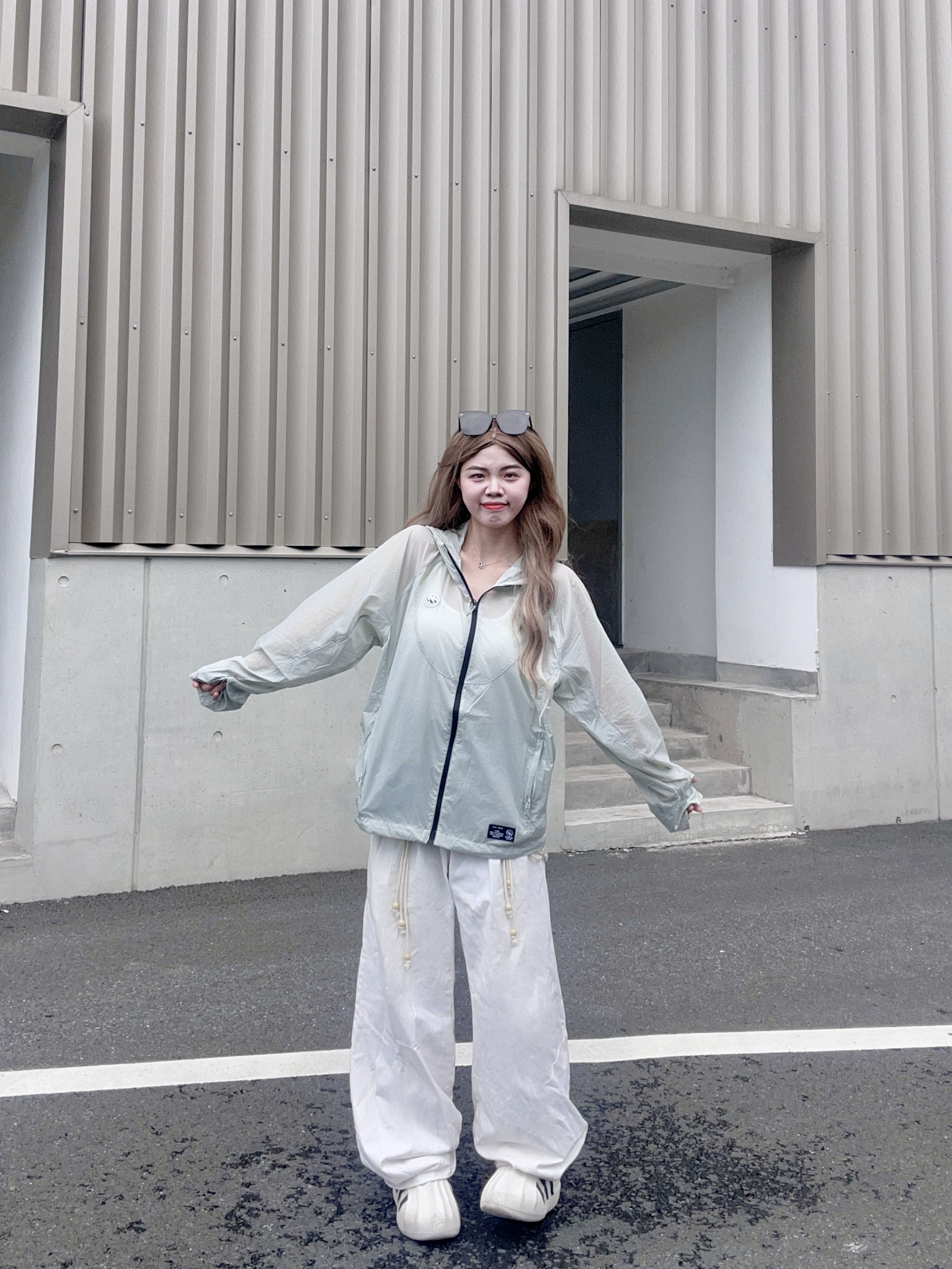 OOTD: 🎽:白色吊带背心 👚:轻薄连帽防晒衣 👖:白色宽松T恤 👟:休闲鞋 - 今天是夏季清爽感穿搭! 👚衣服今天穿的是一件夏季必备的防晒衣🌬️夏天真的很需要这种薄薄的衣服,今天穿的这件就是超薄冰感🧊的防晒衣,不夸张,下水晾晒不到半个小时就能干透!很薄很透气!而且薄荷绿这个颜色也有视觉降温的效果耶 👖休闲裤运动裤都可以搭配,我搭配的是一条白色的休闲牛仔裤,白绿很搭哦