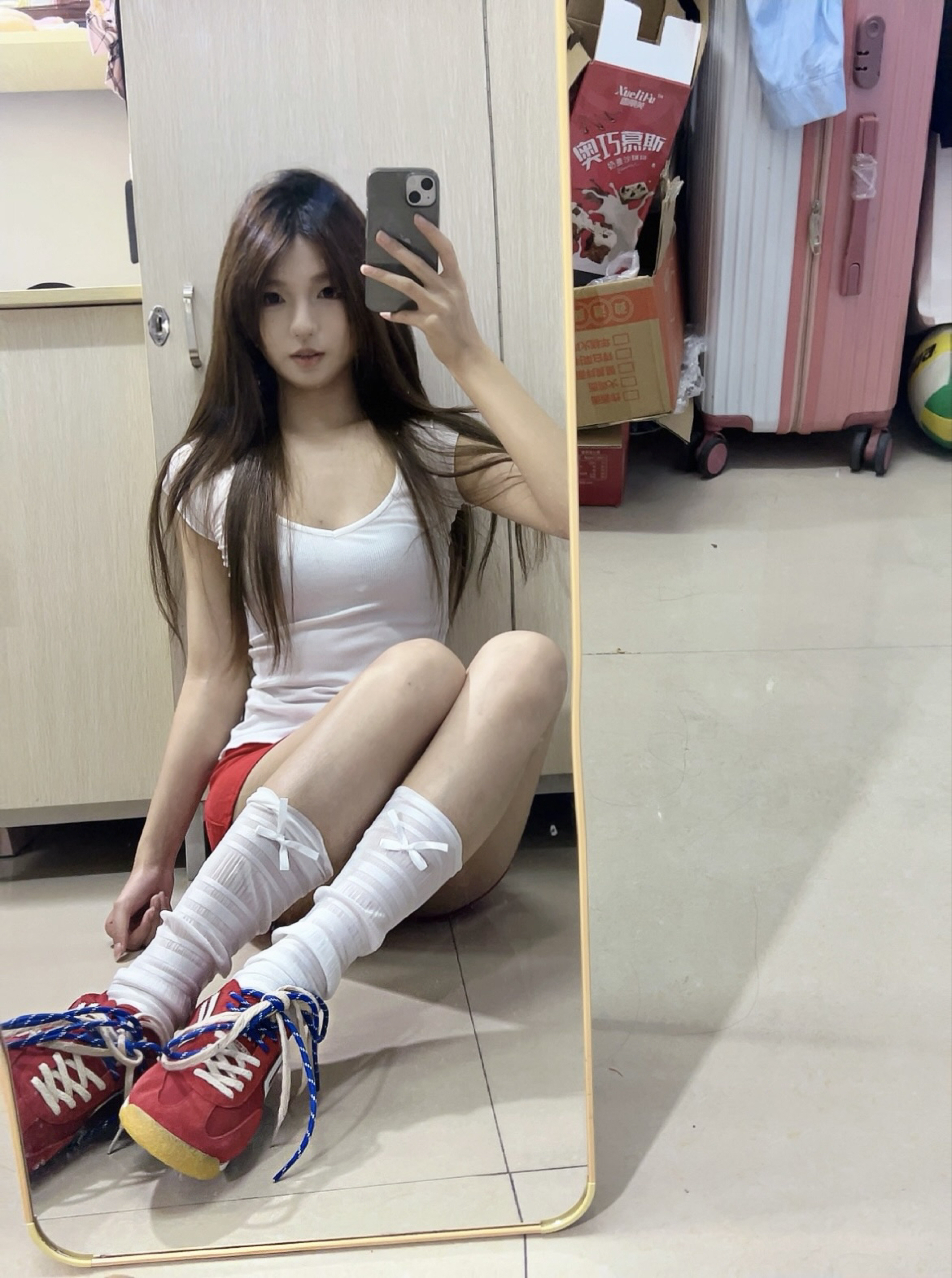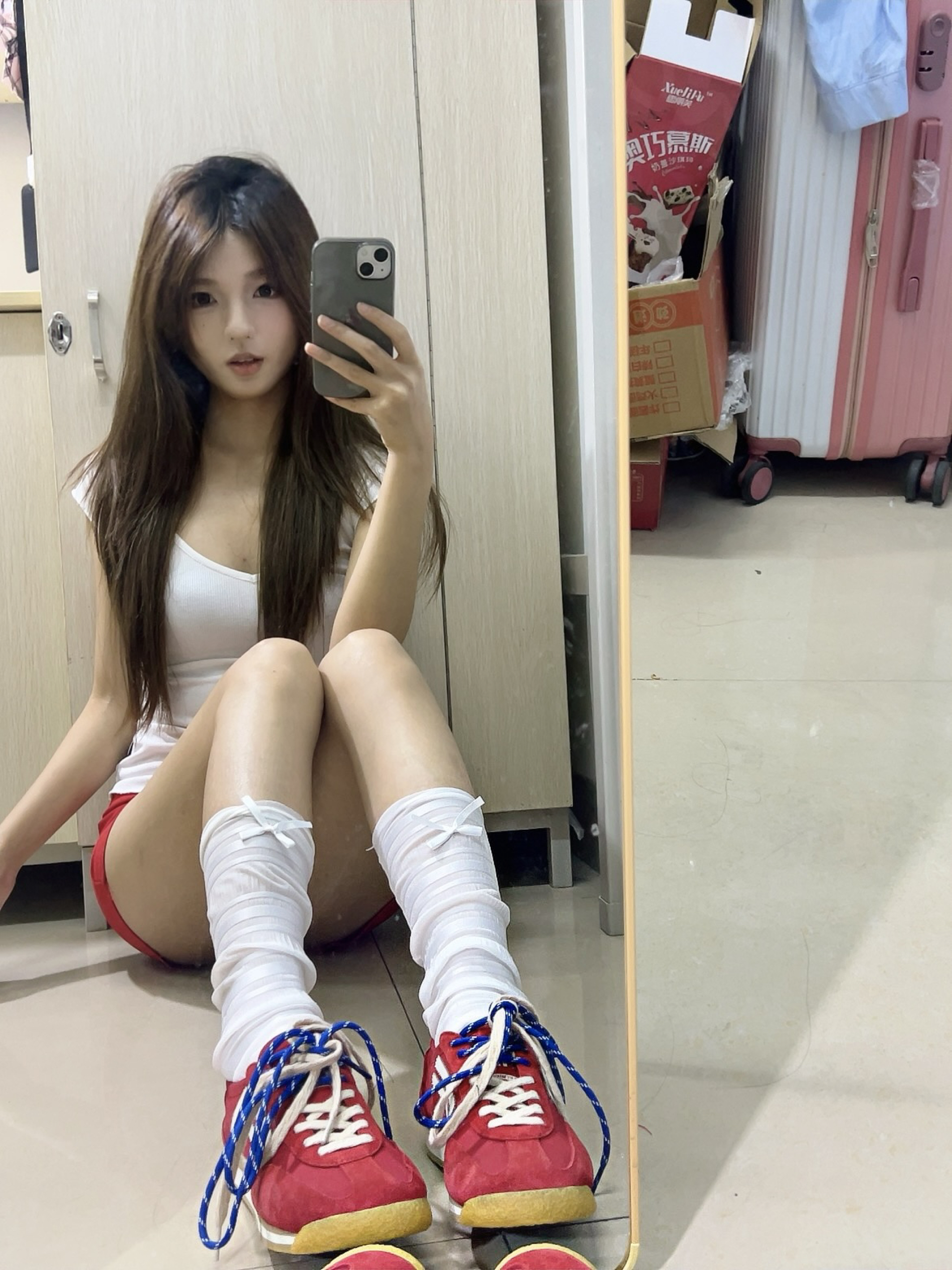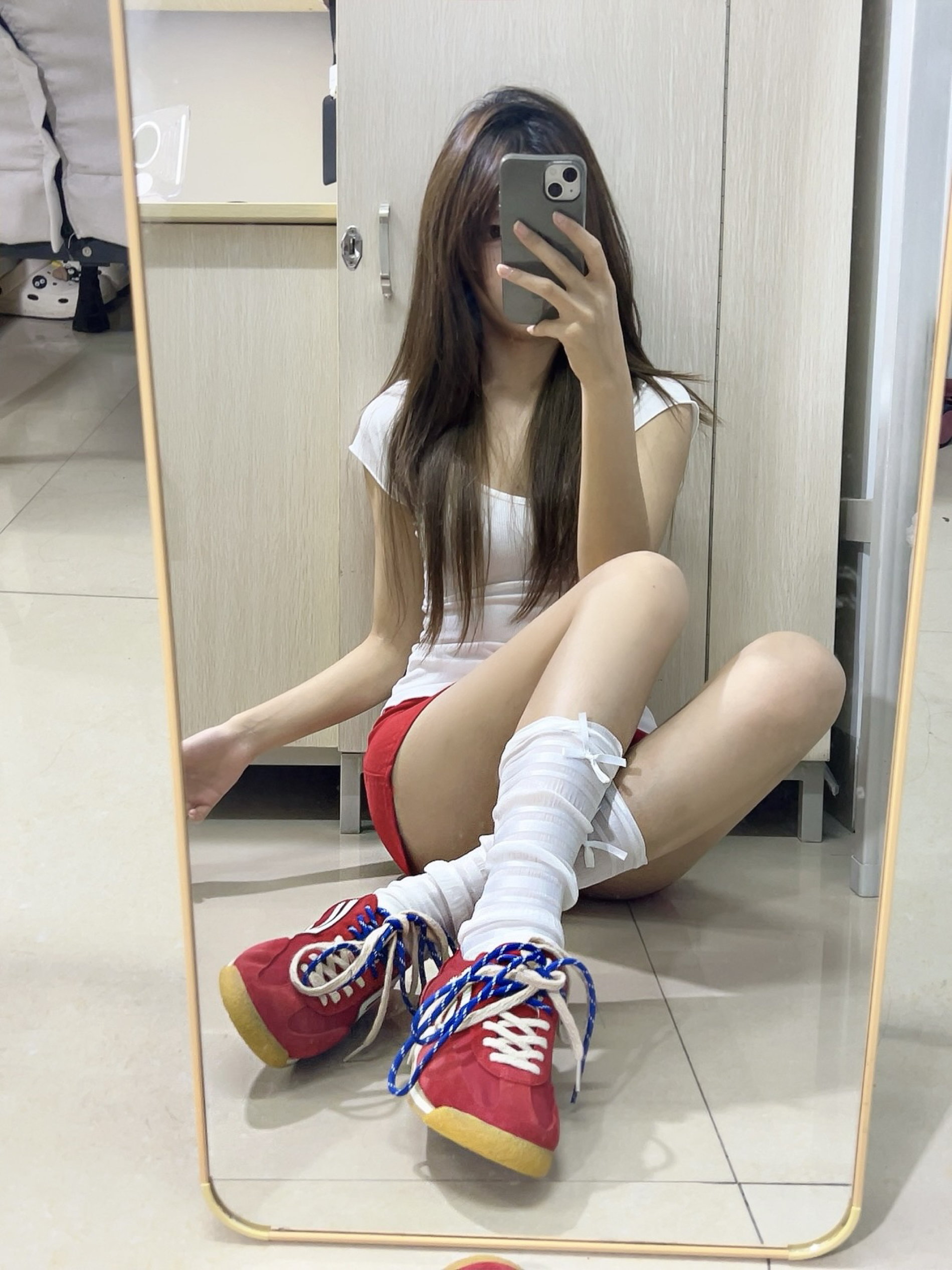 红色系穿搭活力感满满!红色跟夏天最适配啦!好喜欢今天的一身搭配,白色修身上衣搭配红色短裙,再来一双红色的德训鞋简直就是点睛之笔!🥰🥰,而且鞋子本身不重很轻,上脚无负担!