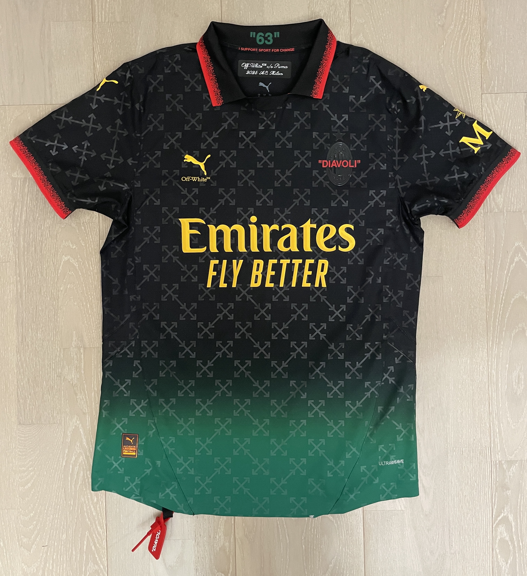 选了一件特别版印号的“63 DIAVOLI”,另一件选了当场助攻的菜奥,感觉还是特别版印号更漂亮一些,号码还有“off-white” 字样,可惜米兰官网今年不提供后摆广告,印制联赛版小有遗憾。 此番球衣系列的核心理念是“梦境(DREAMLAND)” ,承载着丰富的价值观与象征意义。球衣领口内侧印有的数字 “63”,是代表梦想的精神图腾:既代表了 AC米兰俱乐部1963年首夺欧洲冠军杯的胜利之梦,也...