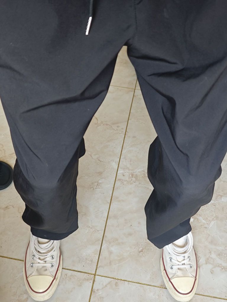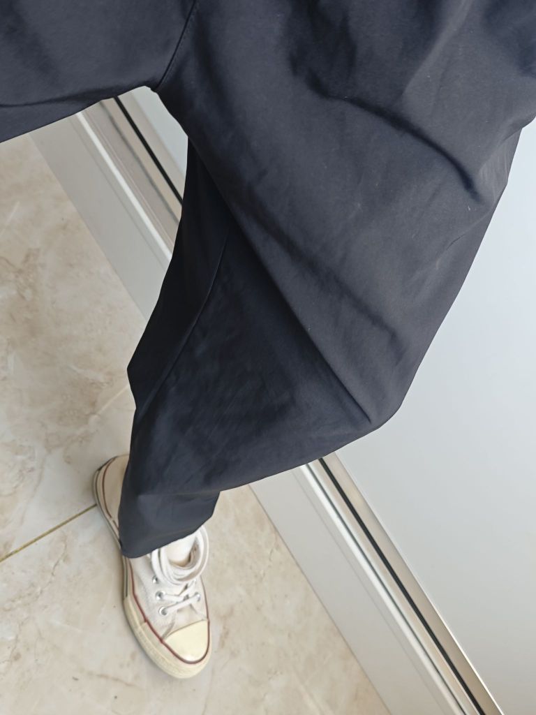 牛仔裤👖❓(三四十度太热) 工装裤❓(轻薄的面料没有工装的感觉) 短裤❓(蚊虫疯狂叮咬) 唯一真神还得是冰丝速干裤❗ 面料是那种沙沙的磨砂质感 透气性非常强❗ 不会闷的大腿全是汗💧 穿搭上还非常百搭 不挑上衣搭配 纯黑色冰丝裤很基础的一个单品