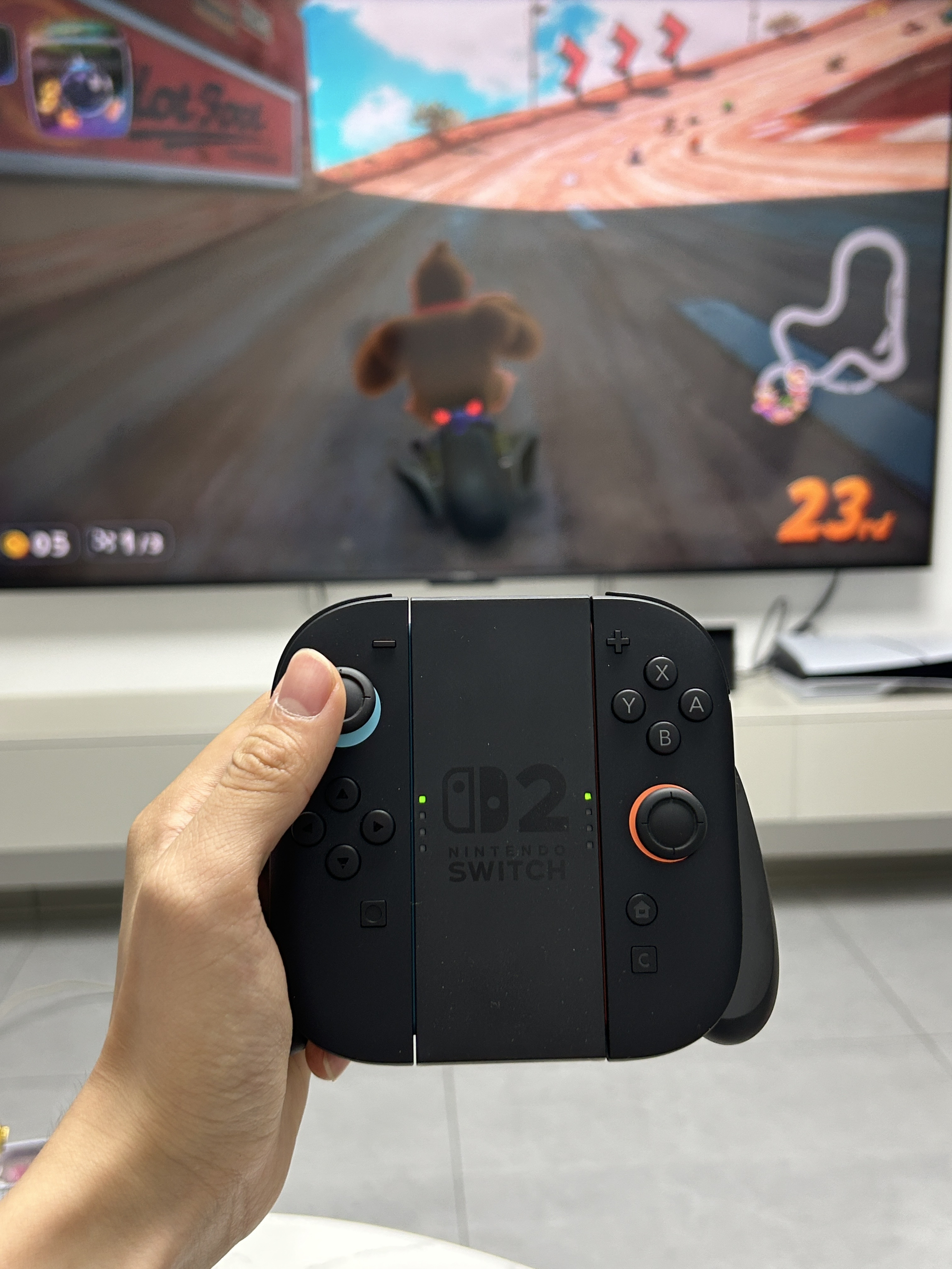 switch2入手后要体验的就是主机模式的4k 60hz 这个画质得到了明显的提升 像一些塞尔达系列 宝可梦系列 喷喷系列 还有新出的马车9 玩着体验感拉满 这次的手柄比一代握的更舒服一些了 整体体验感不错的 推荐入手