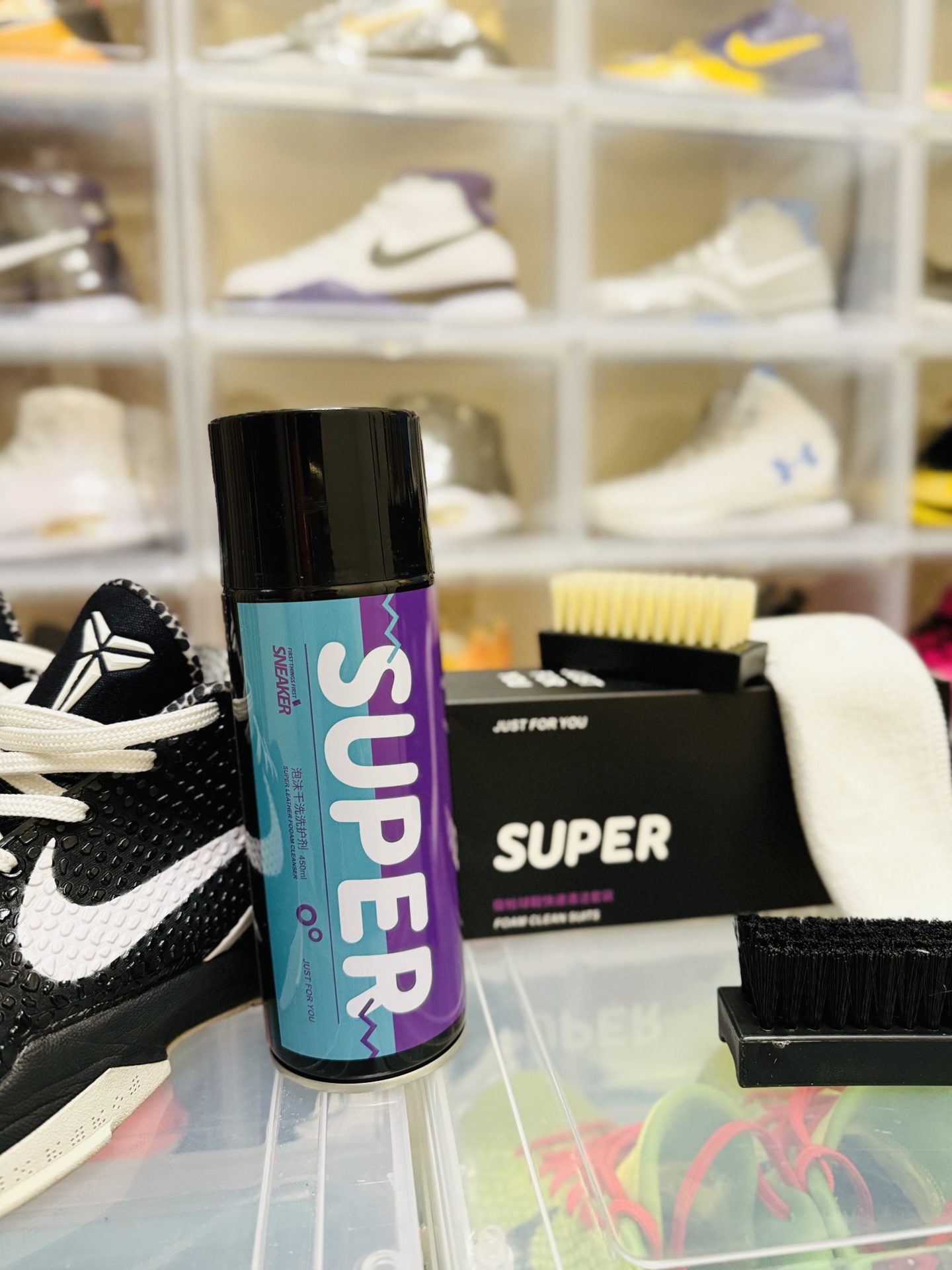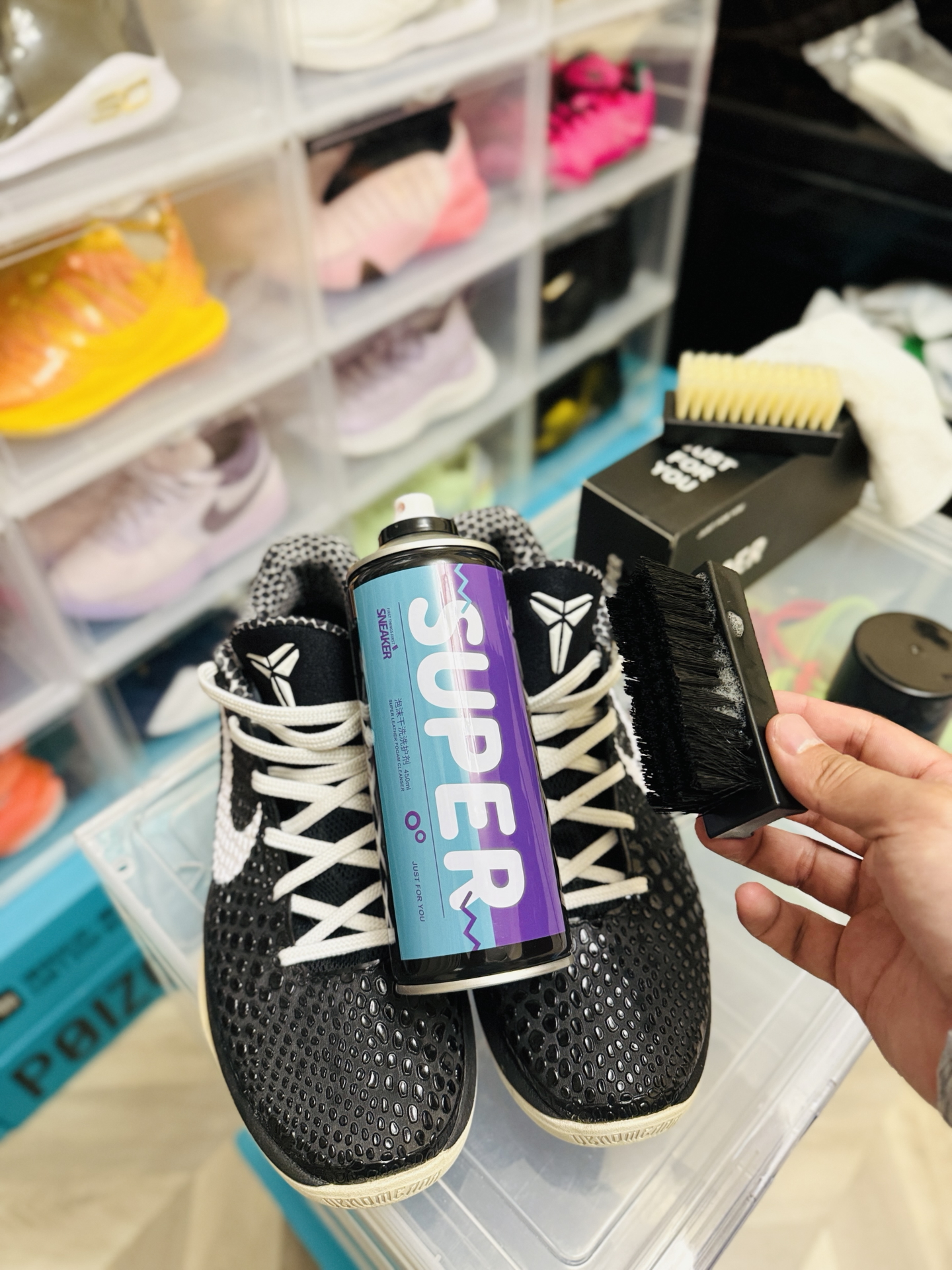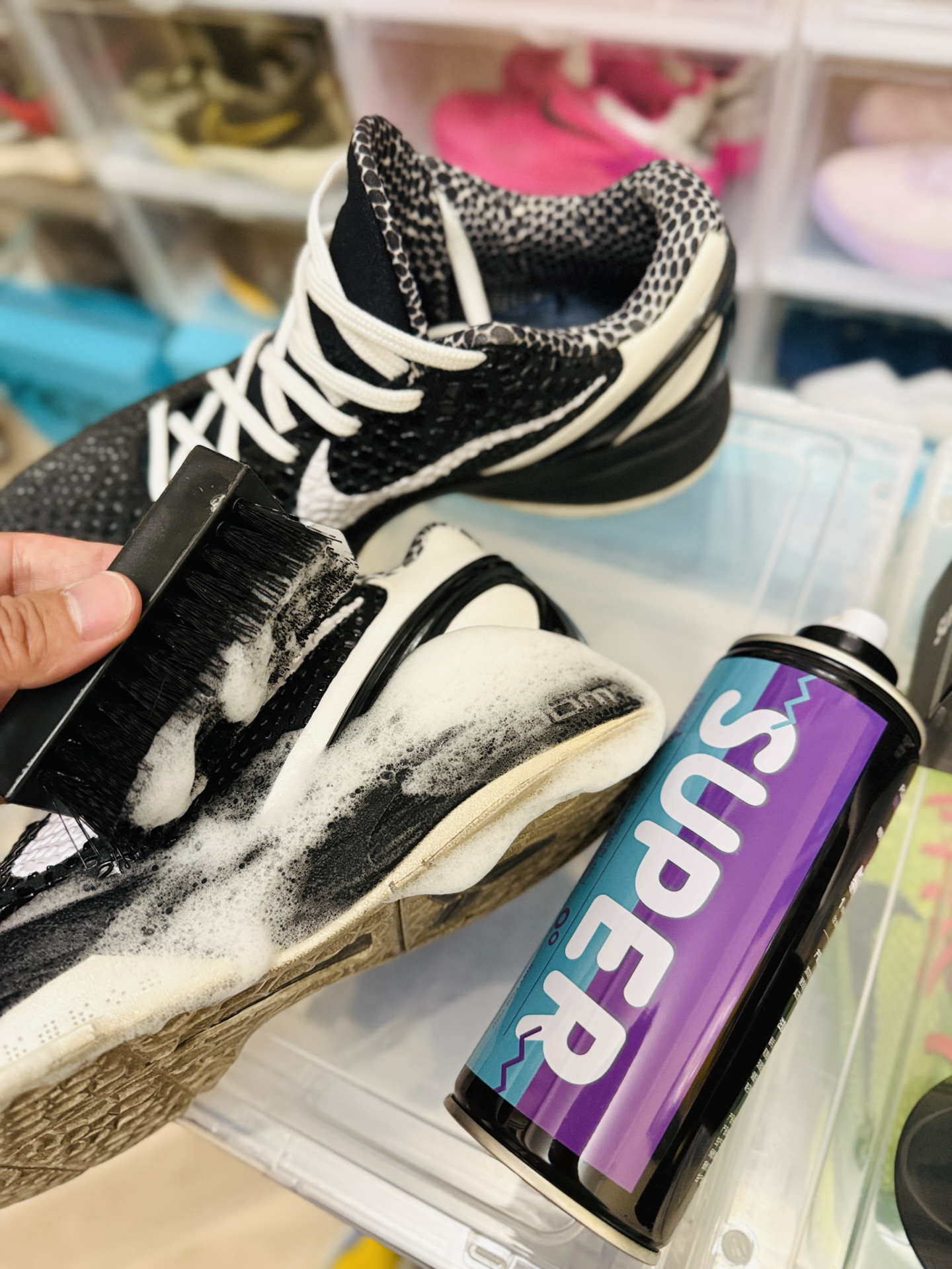 刚试了这款 #SUPER/宿帕 泡沫清洁剂,我的AJ终于重获新生!挤出来是绵密的溶污泡沫,PH7中性配方上手超温和,连最难搞的鞋边氧化发黄,打圈刷1分钟就干净了。最惊艳的是含天然海洋护理成分,擦完的鞋面居然有保养过的光泽感,不像用肥皂洗完那种干巴巴的惨白。 我现在每天出门前都给我的球鞋来个快速SPA:涂泡沫→转圈刷→擦干,全程不用一滴水,咖啡渍泥点子秒消失,擦完直接穿走不耽误事。再也不用担心洗...