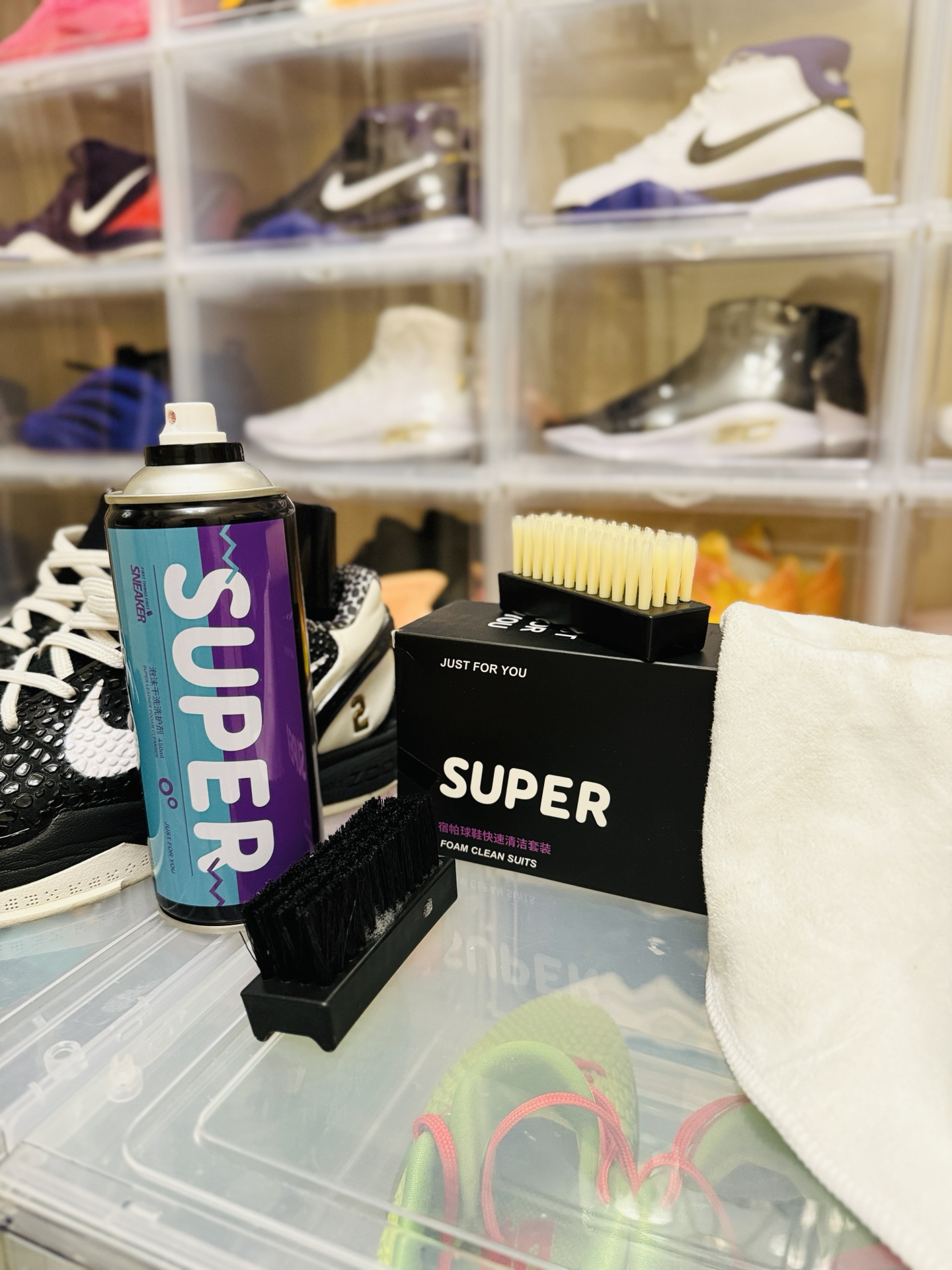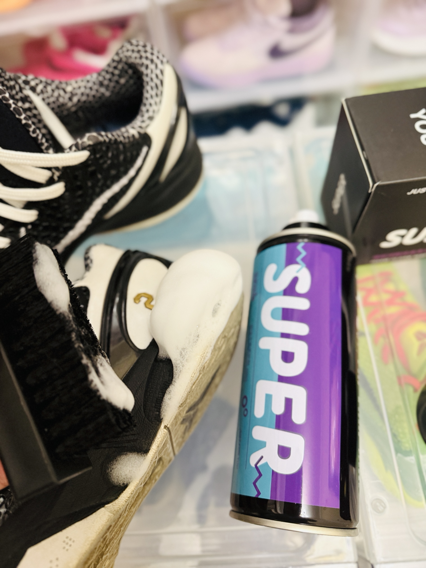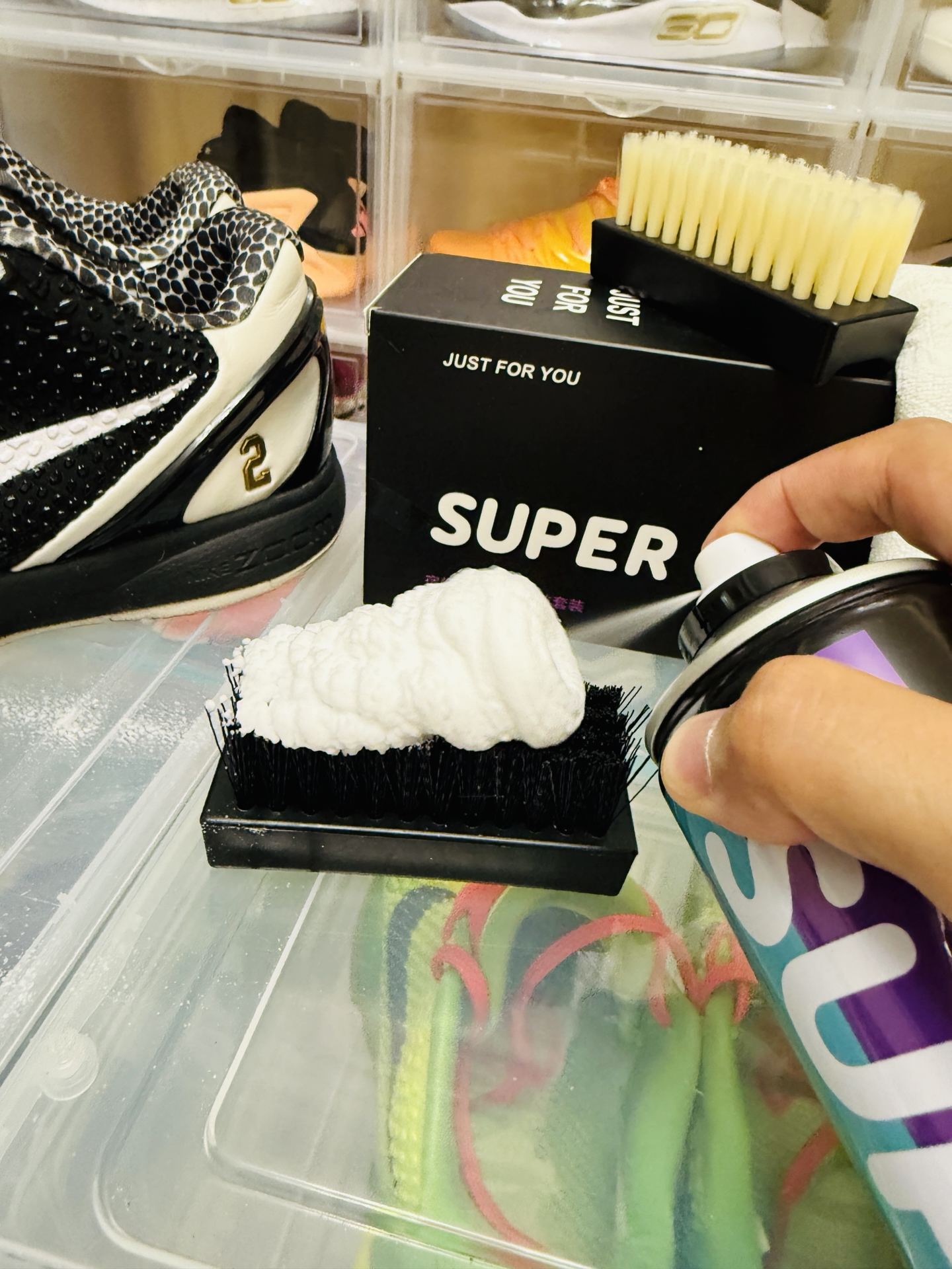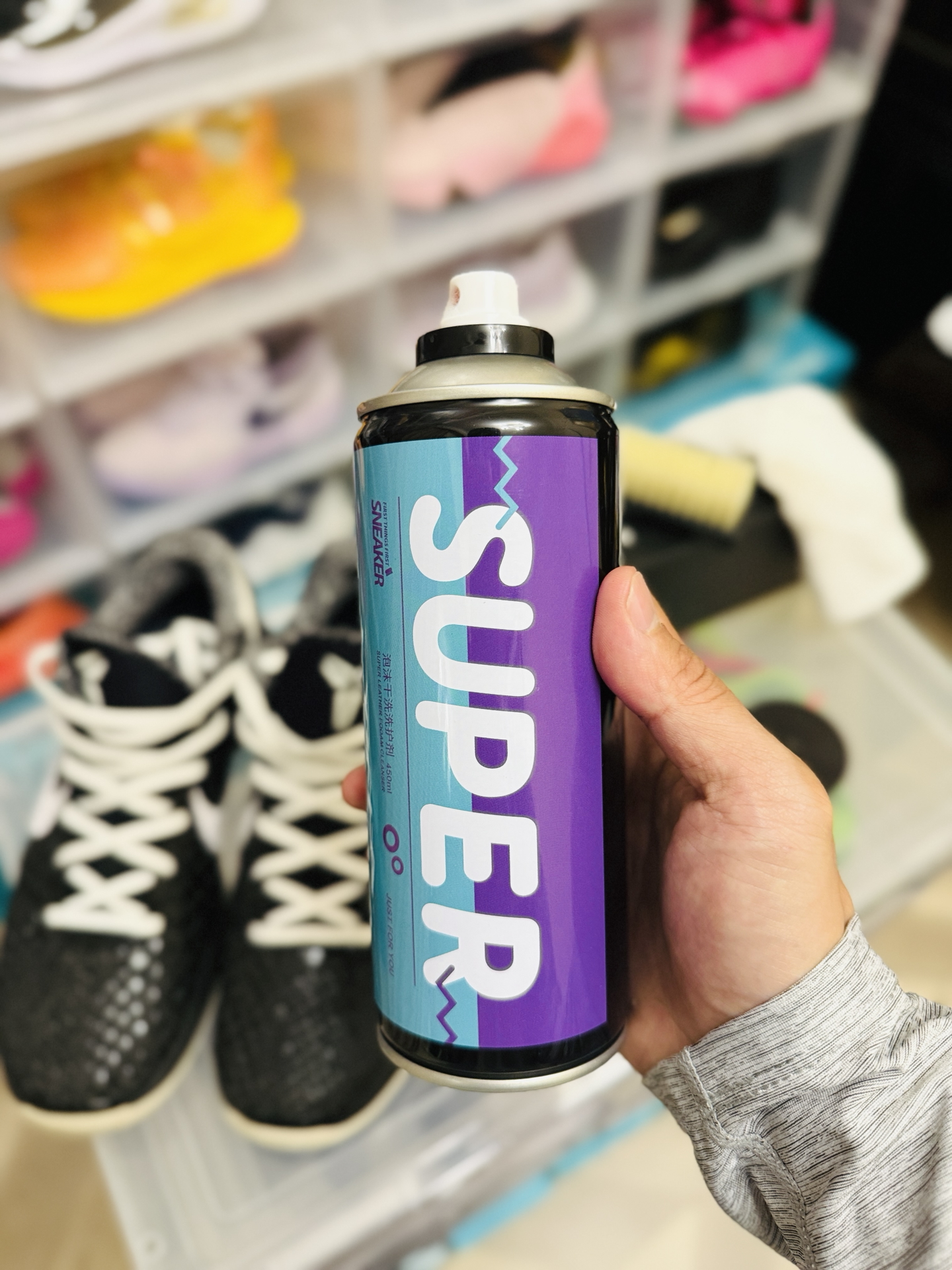 刚试了这款 #SUPER/宿帕 泡沫清洁剂,我的AJ终于重获新生!挤出来是绵密的溶污泡沫,PH7中性配方上手超温和,连最难搞的鞋边氧化发黄,打圈刷1分钟就干净了。最惊艳的是含天然海洋护理成分,擦完的鞋面居然有保养过的光泽感,不像用肥皂洗完那种干巴巴的惨白。 我现在每天出门前都给我的球鞋来个快速SPA:涂泡沫→转圈刷→擦干,全程不用一滴水,咖啡渍泥点子秒消失,擦完直接穿走不耽误事。再也不用担心洗...