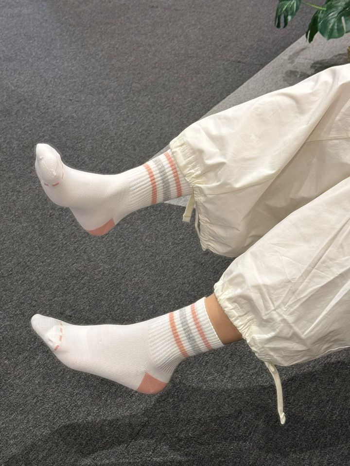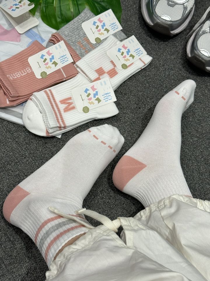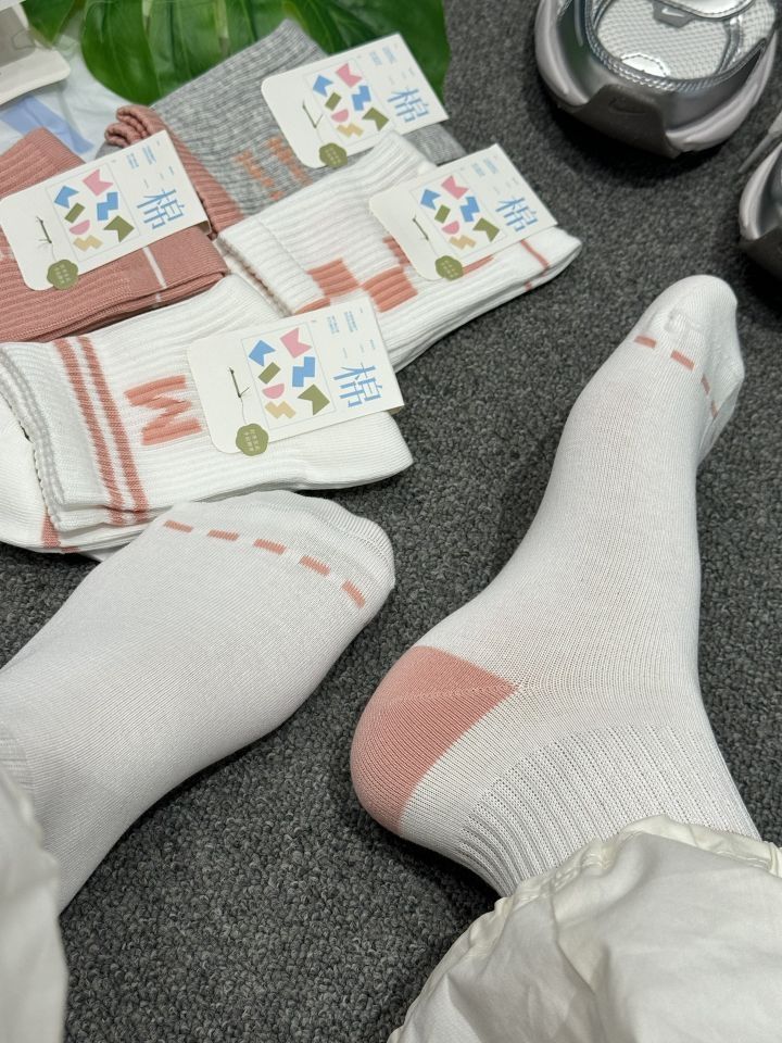 芜湖!!!上脚真的超舒服哒棉竹屋这款中筒上脚蛮舒服哒 上脚长度刚好卡在脚踝最细的位置 显得脚踝处纤细好看 棉质的透气性真的不错 像现在炎热夏天穿居然完全不闷汗 五双装,颜色干净清爽 搭配我的复古老爹鞋都好看