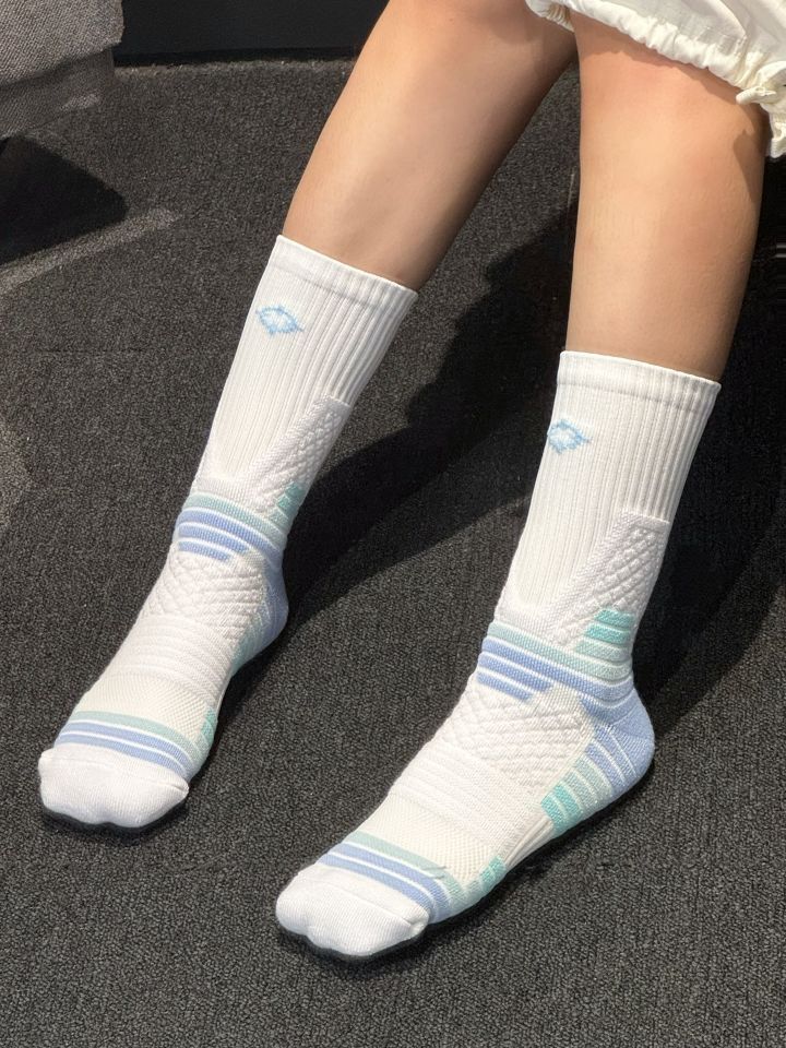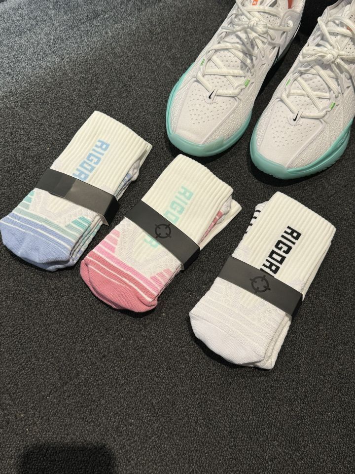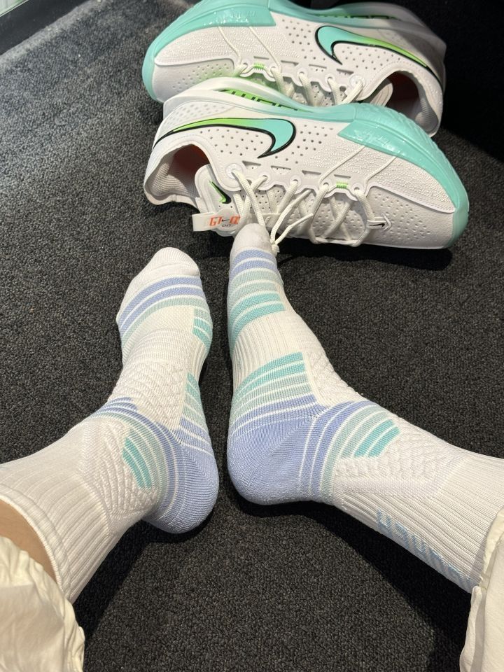 夏天打球必须安排上❗️准者这款篮球祙上脚真的蛮不错哒 全掌加厚毛巾底,脚感软糯 除了颜值和透气,它的包裹性也赞 袜子紧密贴合脚部, 从脚跟到脚趾都能得到蛮好的支撑 性价比也蛮香的