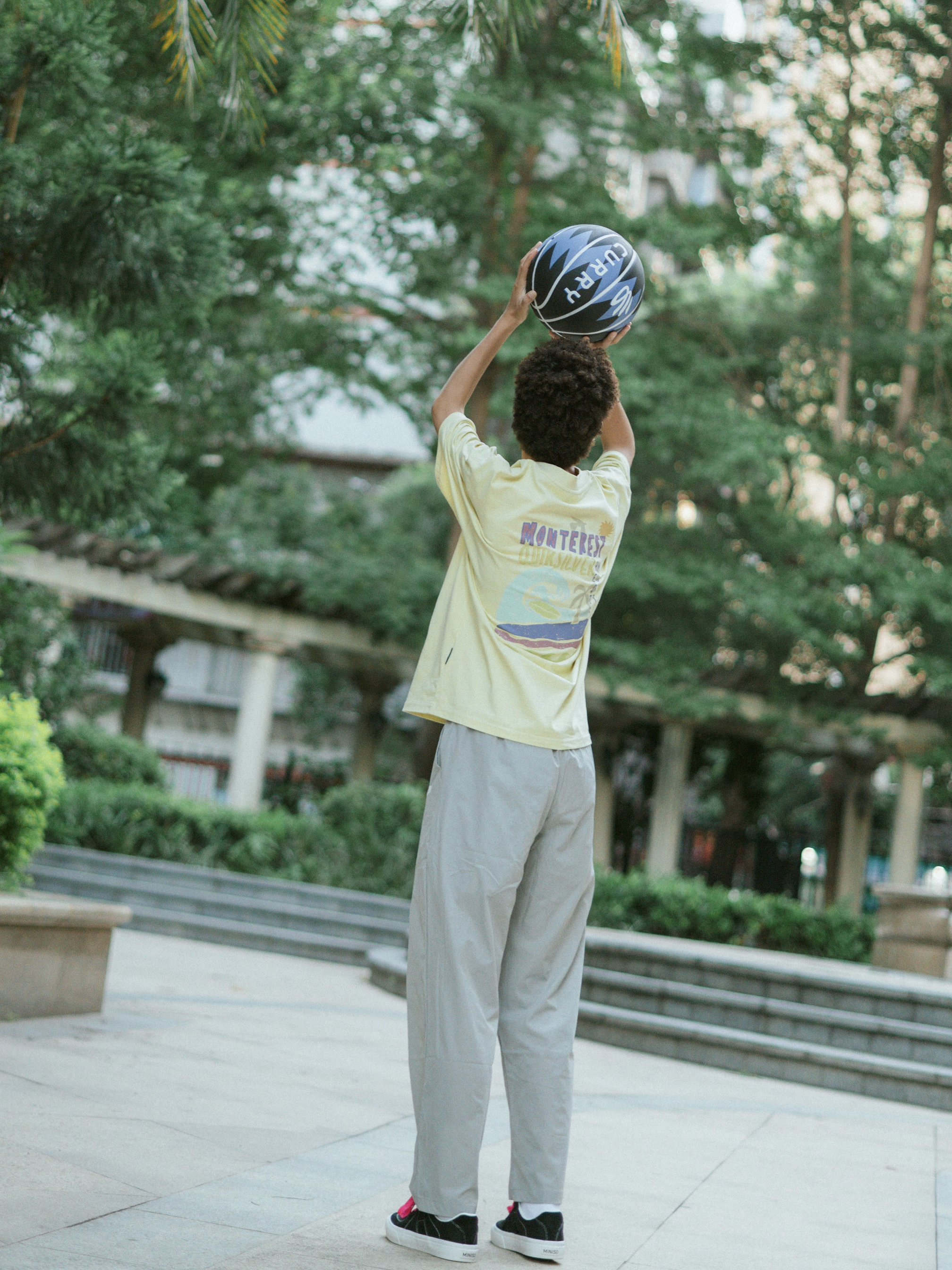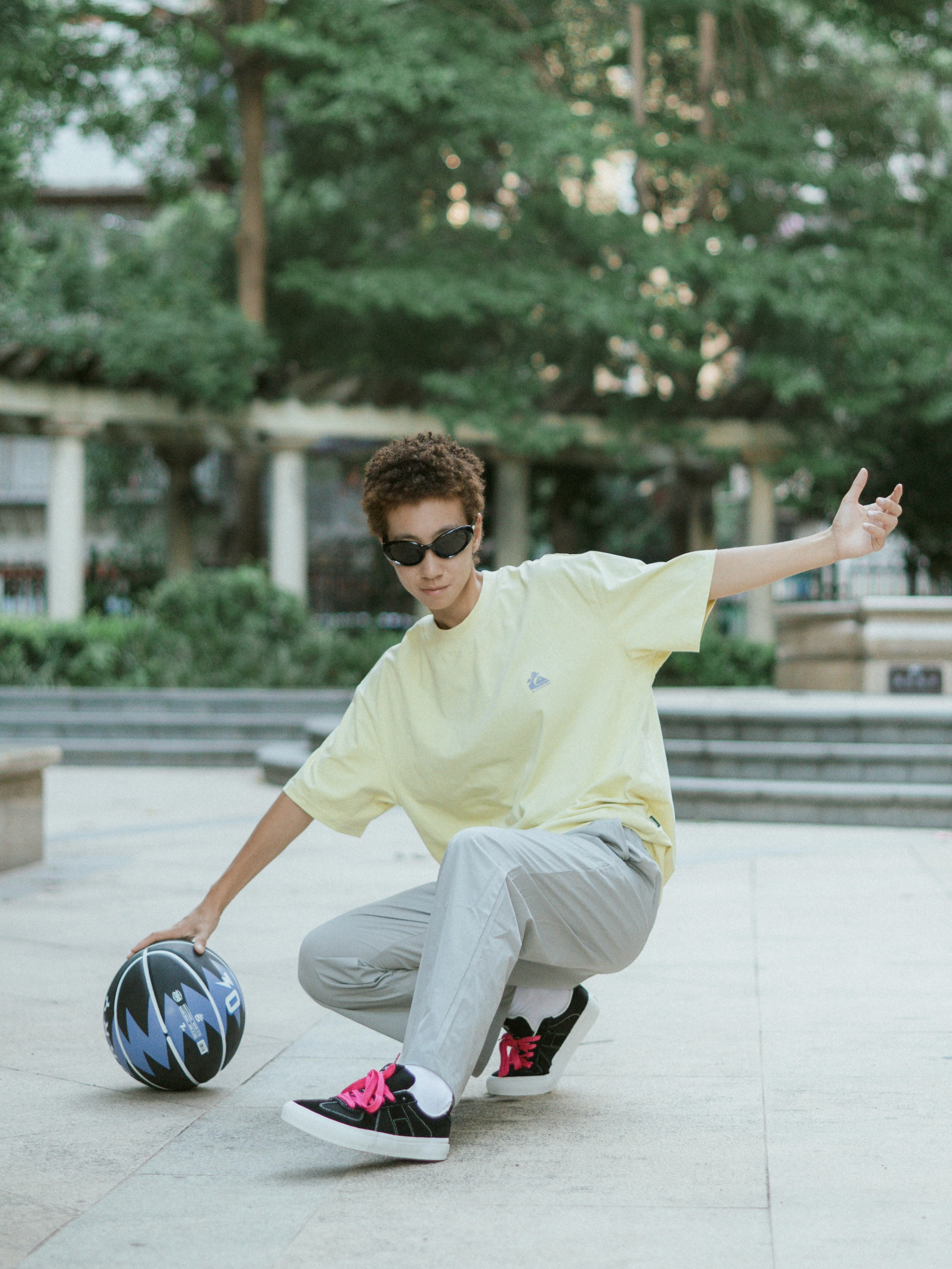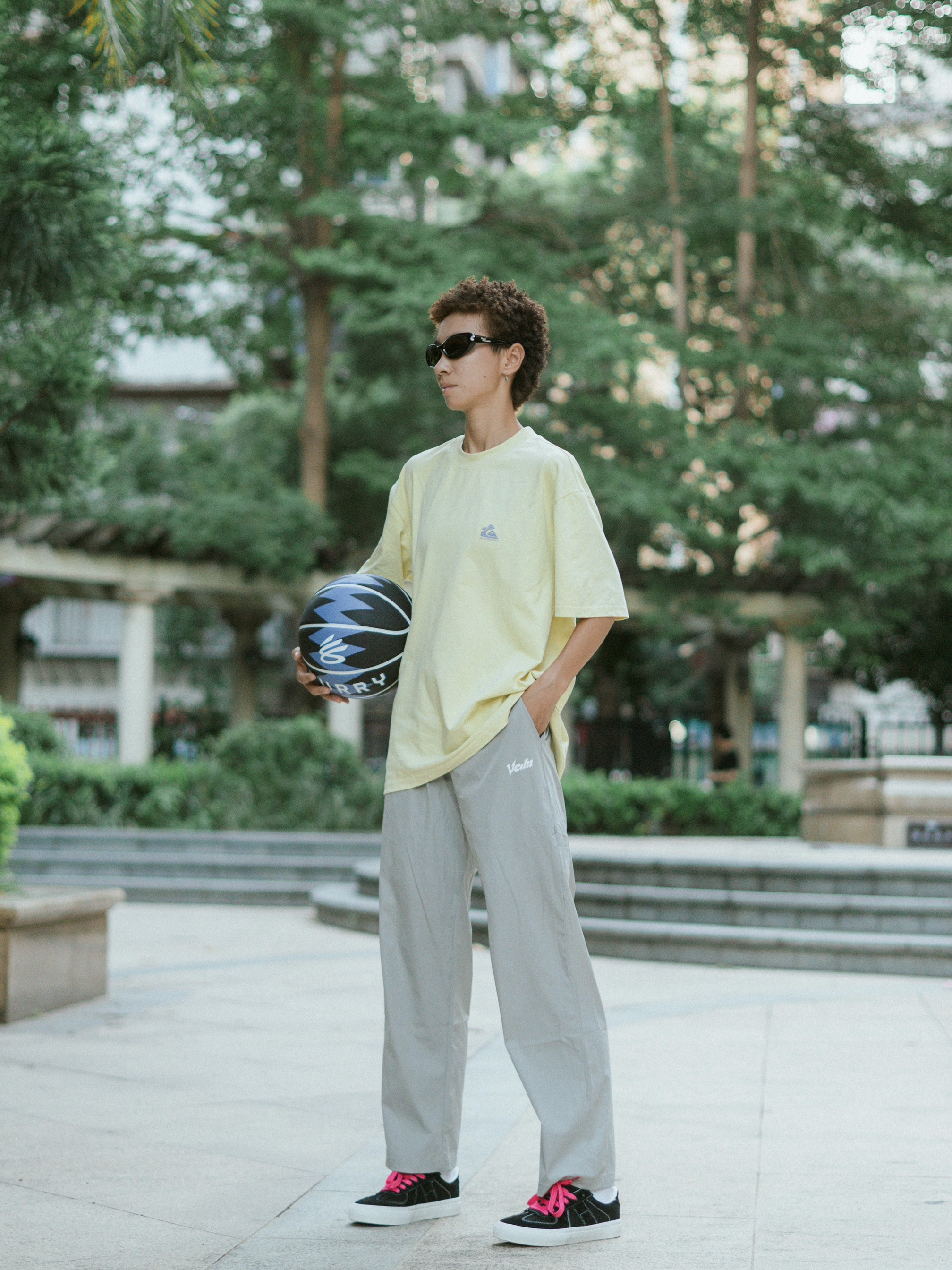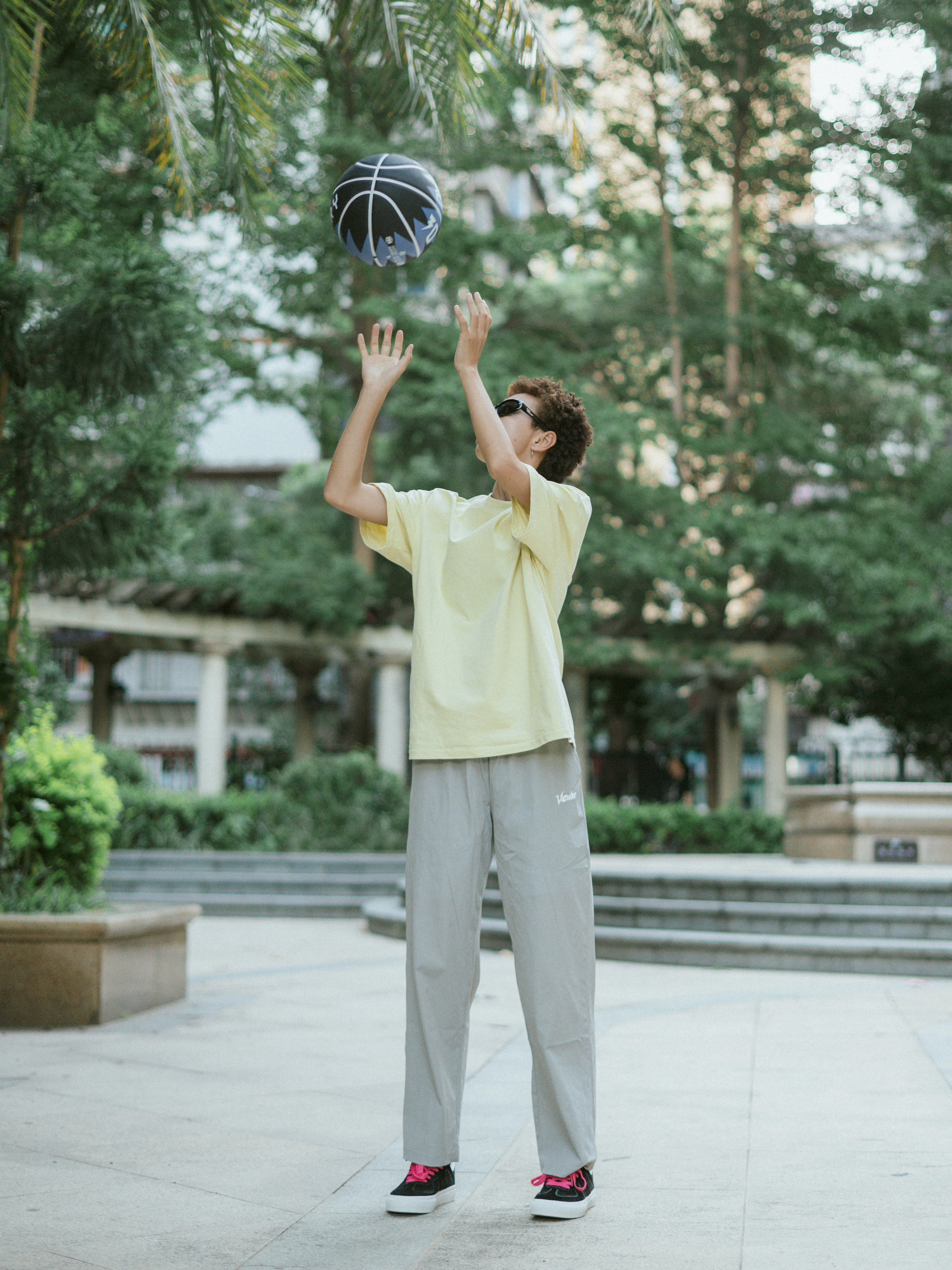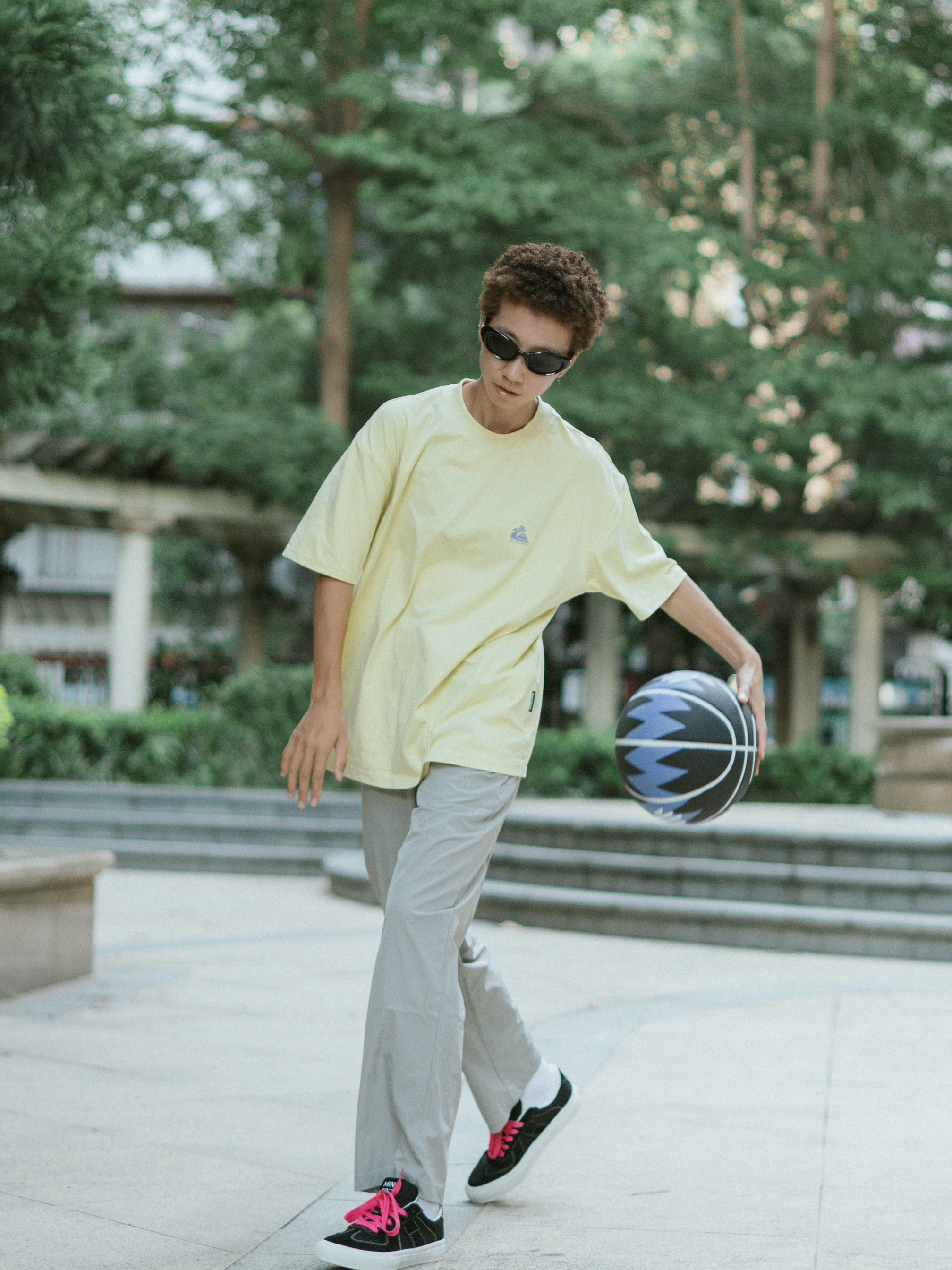 嘿,这是哇圆哇圆哒的穿搭频道🔥 168CM|55KG 👔:M 👖:m 👟:39码 嘟嘟嘟 出门打篮球咯! Gogogo 上身黄色系短袖 是夏天的颜色啦 下半身穿维动灰色系运动裤 穿上板鞋 Gogogo带上篮球 出发