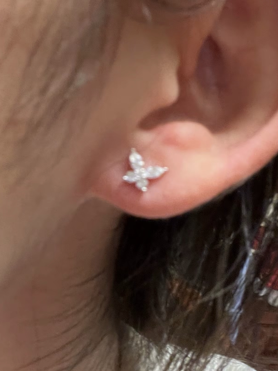 这个小蝴蝶耳钉闪闪的,戴在耳朵上精致又秀气,适合日常佩戴和通勤,因为耳朵正面看存在感不强,以前更喜欢存在感强的耳环,现在突然觉得这种小巧的耳钉更加百搭耐看