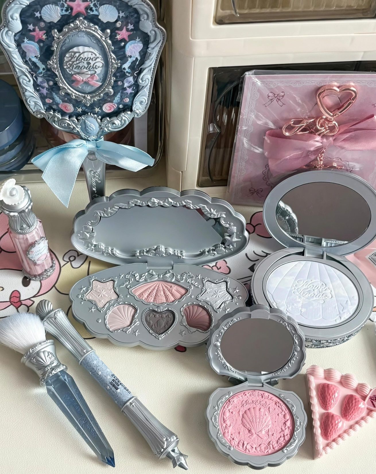 谁懂啊!花知晓的这些彩妆像把童话搬进现实💫 镜子精致得像魔法道具,眼影腮红配色温柔又梦幻,摆在桌上光看着就超幸福,化妆都变成浪漫仪式啦✨