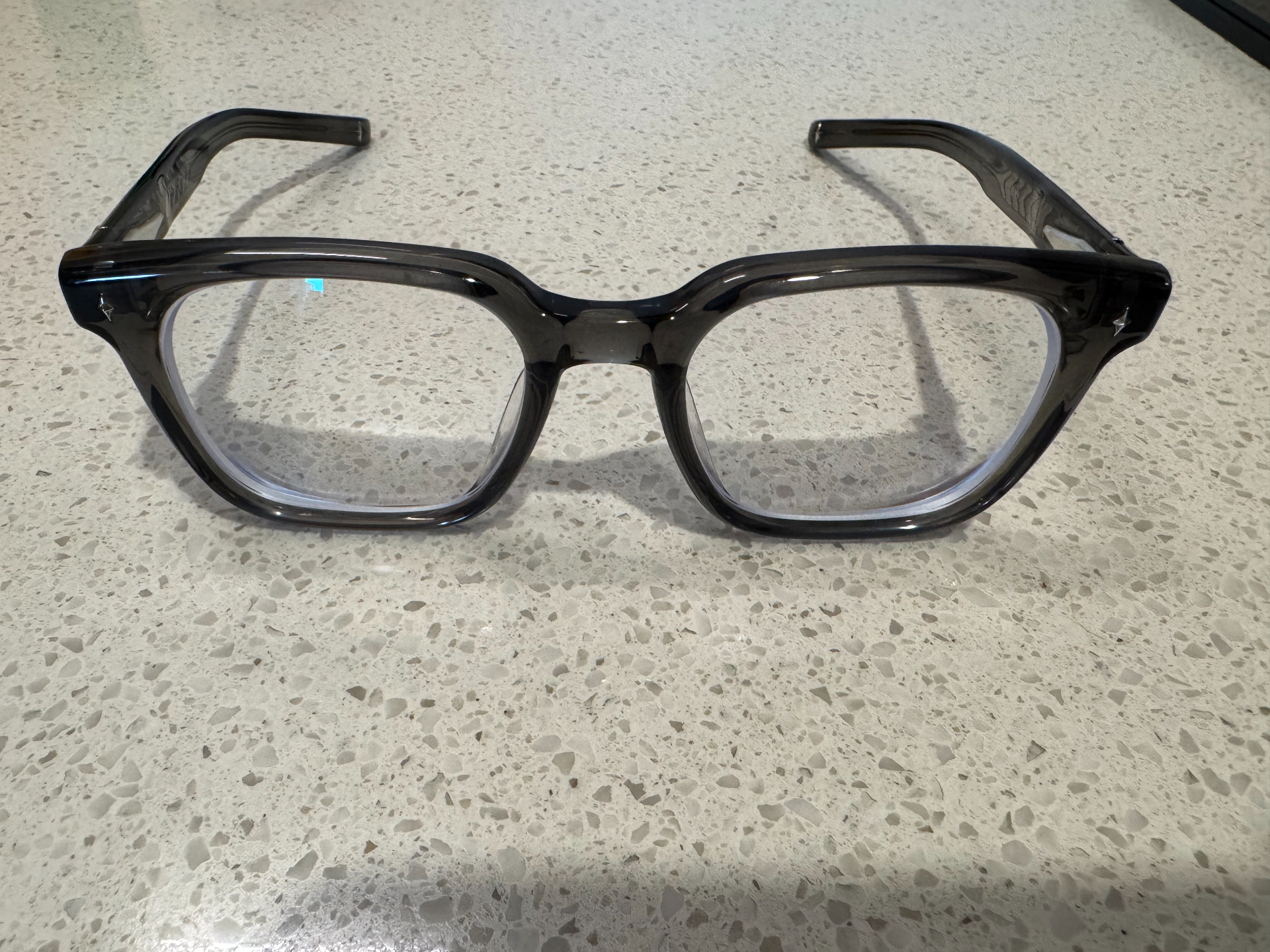 之前在店里逛的时候这款镜框一下子就吸引我了,因为它的颜色很特别,是那种通透的灰色。当我拿起来试的时候,店里的售货员马上就说很好看哈哈哈。后面我又试了几款其他的镜框,包括其他款这个颜色的,售货员还是说这款好看。 我仔细比较了几款这个颜色的镜框,我觉得这款眼镜的形状特别之处在于它够宽却不会很高。如果是又高又长的镜框,除了重以外,我带起来会显得很呆。而这款因为镜框高度不会很高,而且颜色不是死板的黑色,...