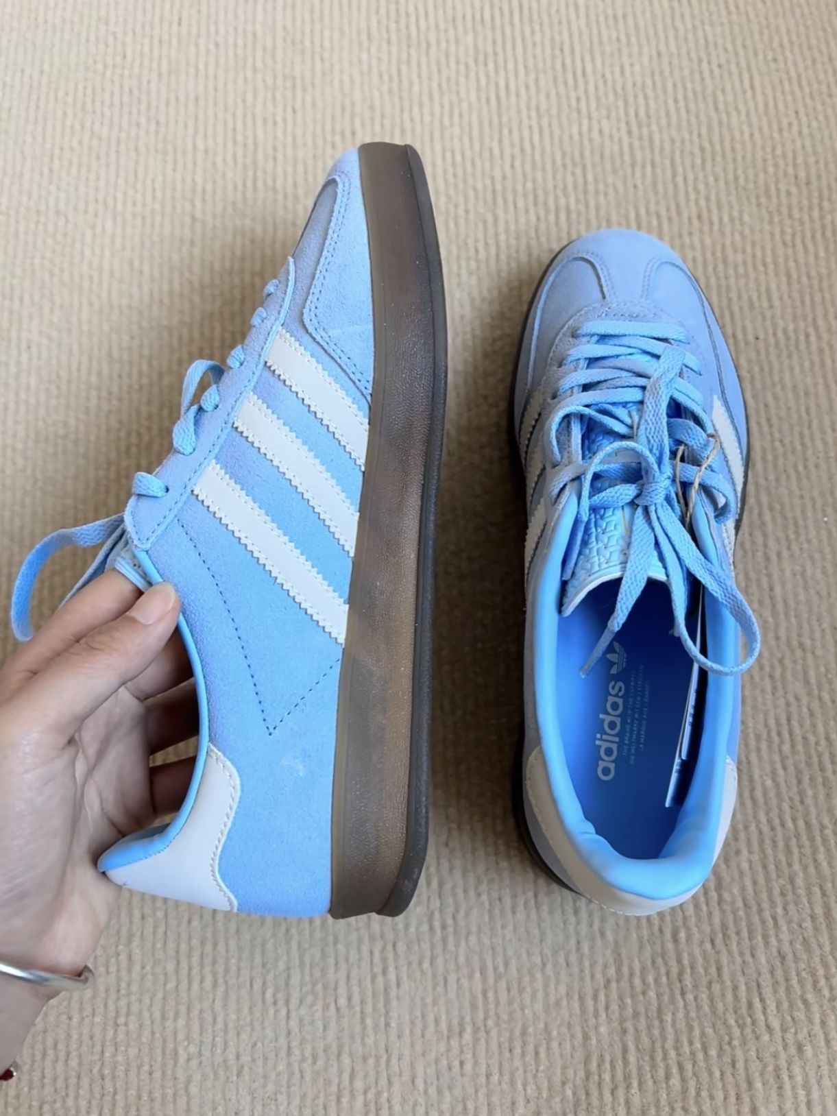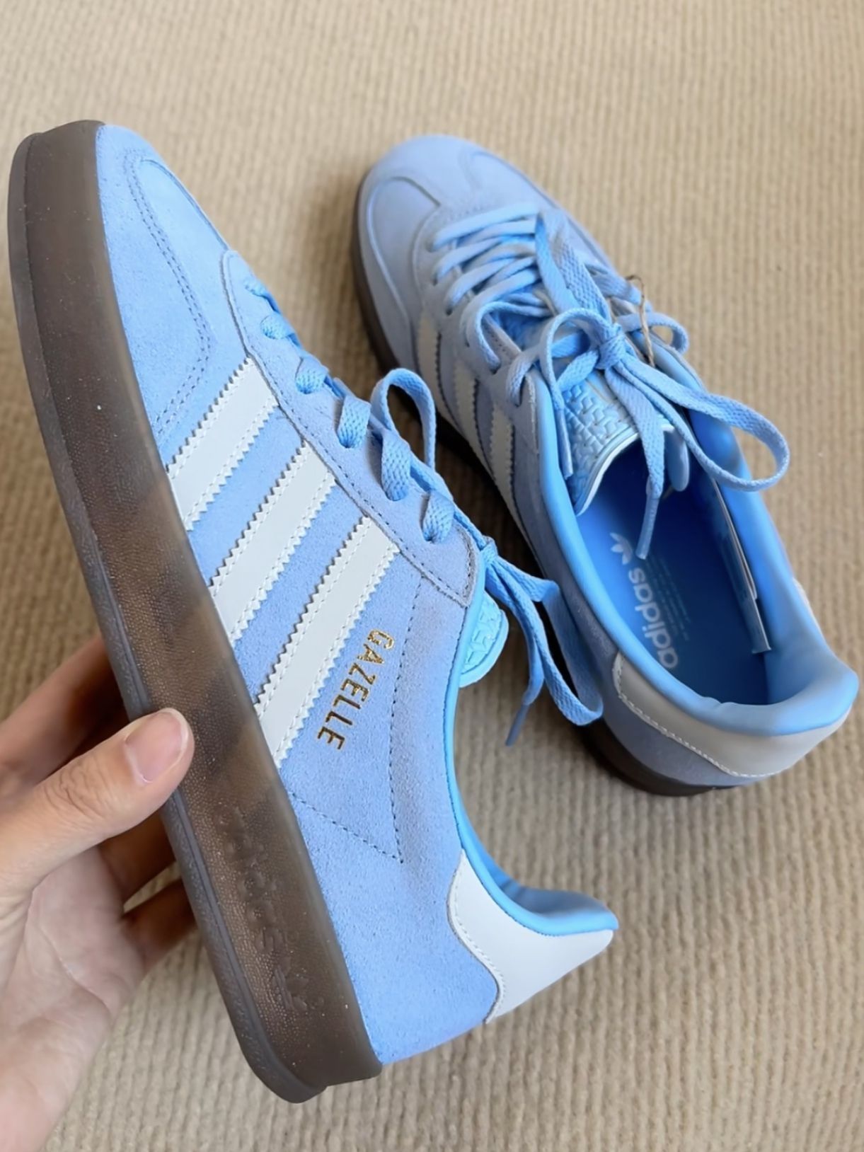 低饱和的baby蓝+奶白+金标 ,完美配色 ,自带夏日氛围感 。夏天配白袜简直绝配,淡淡的baby蓝超级显白,穿上它走路都带着海风的气息。 鞋垫足弓部分有支撑 ,走路不累脚且防滑。 鞋底鞋型比samba系列高和宽,适合肉脚。 #阿迪三叶草 #spezia #阿迪baby蓝 #阿迪达斯三叶草 #adidas三叶草 #三叶草 #蓝色系穿搭