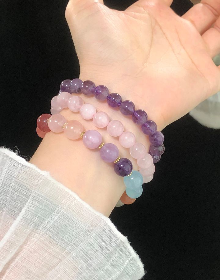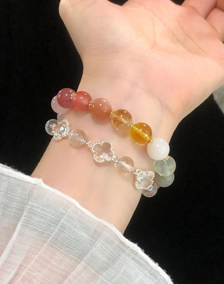 夏天女孩子的手腕上戴水晶好看又舒服 冰凉凉的肤感让人感觉身心愉悦 这些手串和手链都是我近期zui爱❤️ 五彩缤纷的好多巴胺 显白又显嫩 日常戴很出片的 我会单戴或叠戴 每天换着戴好开心 尤其手串和手链叠戴更有层次感 水晶的寓意好 戴着我心里安心 有证书和礼盒 我觉得拿去送人也合适滴~