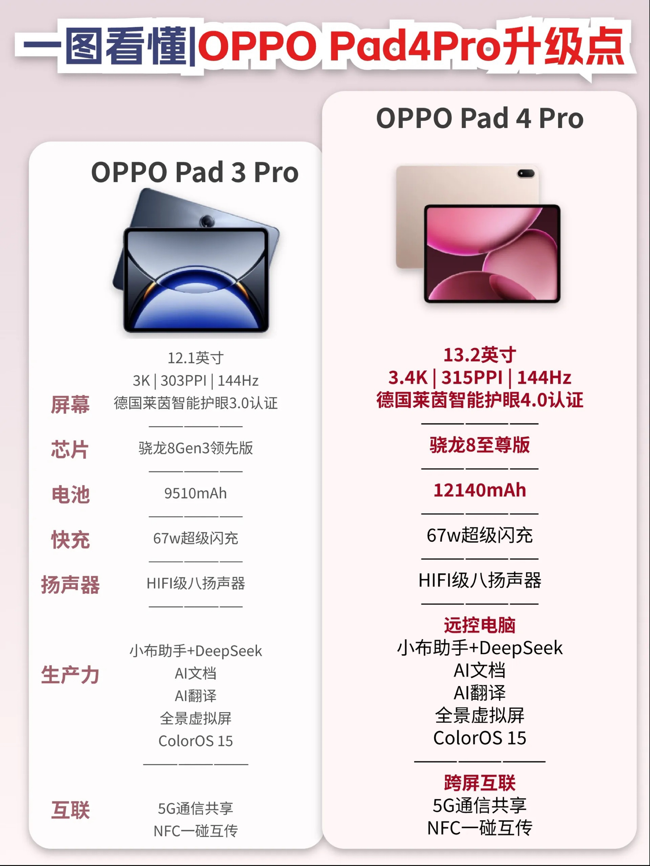 本篇笔记关联了OPPO Pad 3 Pro 骁龙版 2024款 12.1英寸 平板电脑 大屏 3K超清原彩屏 智能触控 旗舰芯片 影音娱乐 学习 网课 追剧 绘画 夜幕蓝、OPPO Pad 4 Pro 2025款 13.2英寸 平板电脑 3.4K超清原彩屏 骁龙8至尊版芯片 高刷大屏 学习 追剧 晨曦微光等商品,为用户提供真实的使用体验和购买参考。