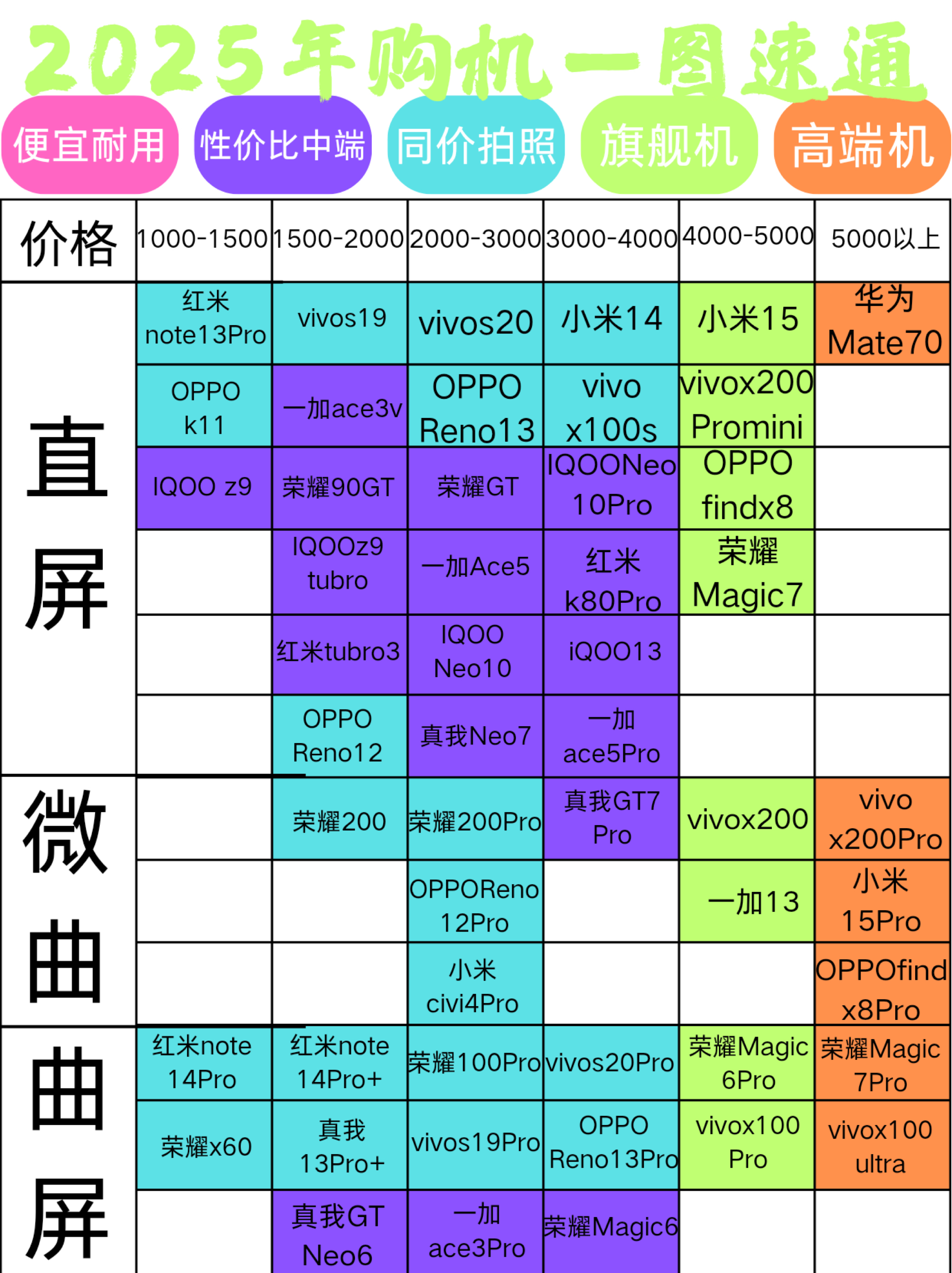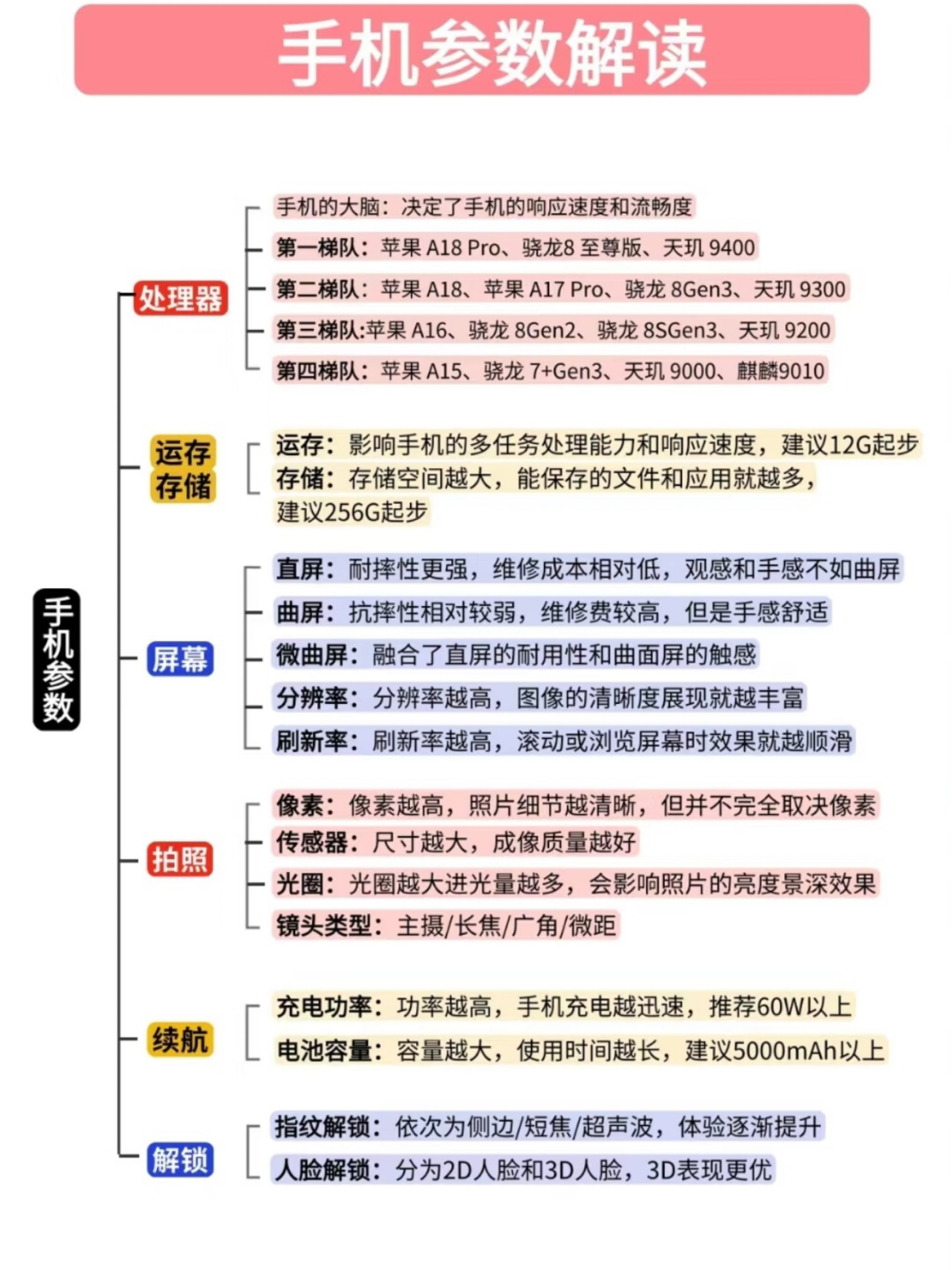 ✅全价位手机推荐❗️一张图看懂怎么选❗️ ✅ 国补来临,又逢新年佳节,有很多准备换机的朋友让我推荐一款适合自己的手机,今天这一篇就给大家分享全价位手机选购指南❗️ ✅ 首图可以满足不同价位段、不同使用需求(性能、拍照、续航等)、喜欢不同屏幕类型的各年龄段的朋友,每一款都可放心选购❗️【详见图1】 ✅ 手机参数怎么看?【详见图2】 ✅ 处理器排行榜【详见图2】 ❤️ 今天的内容就到这...