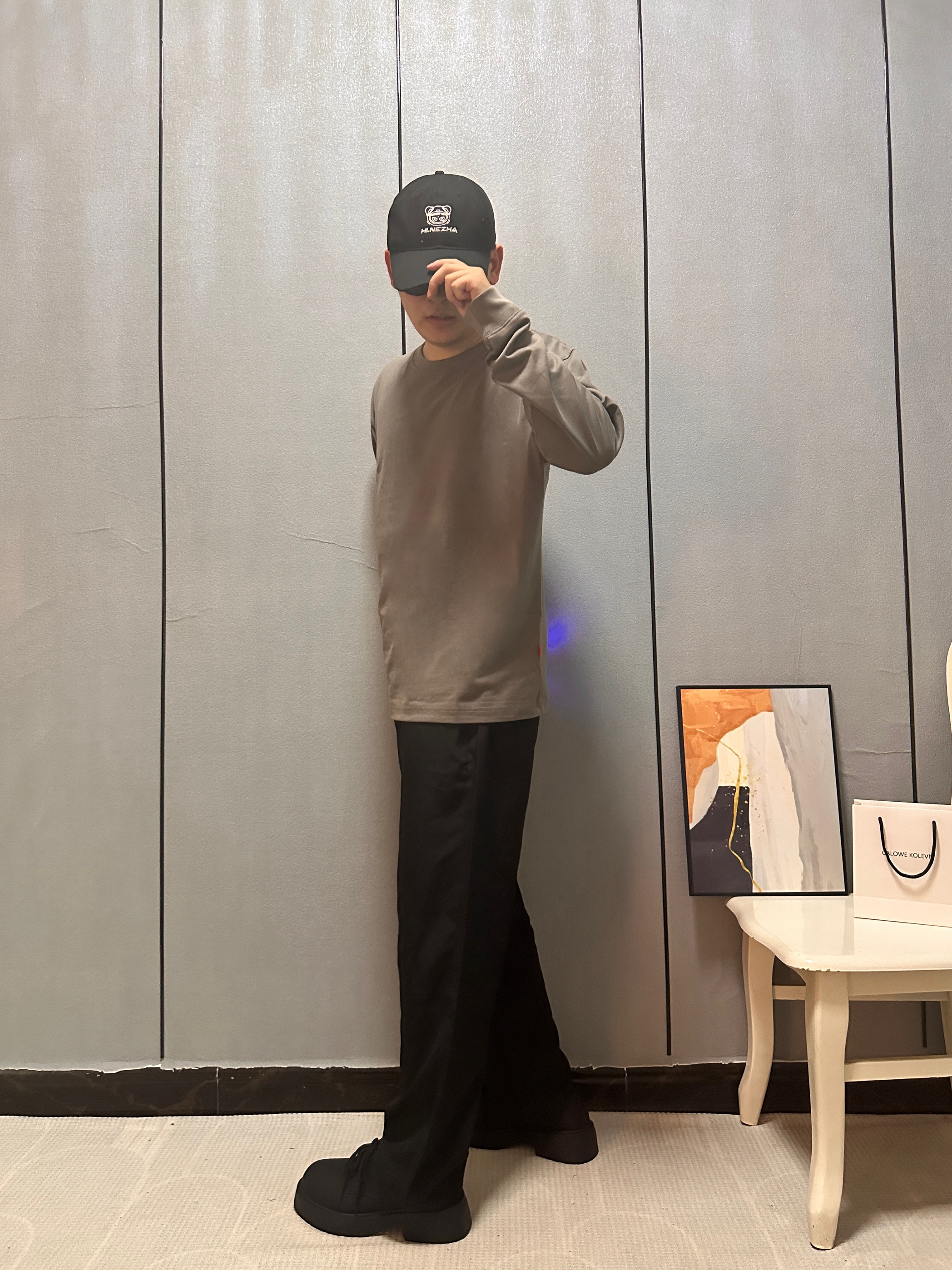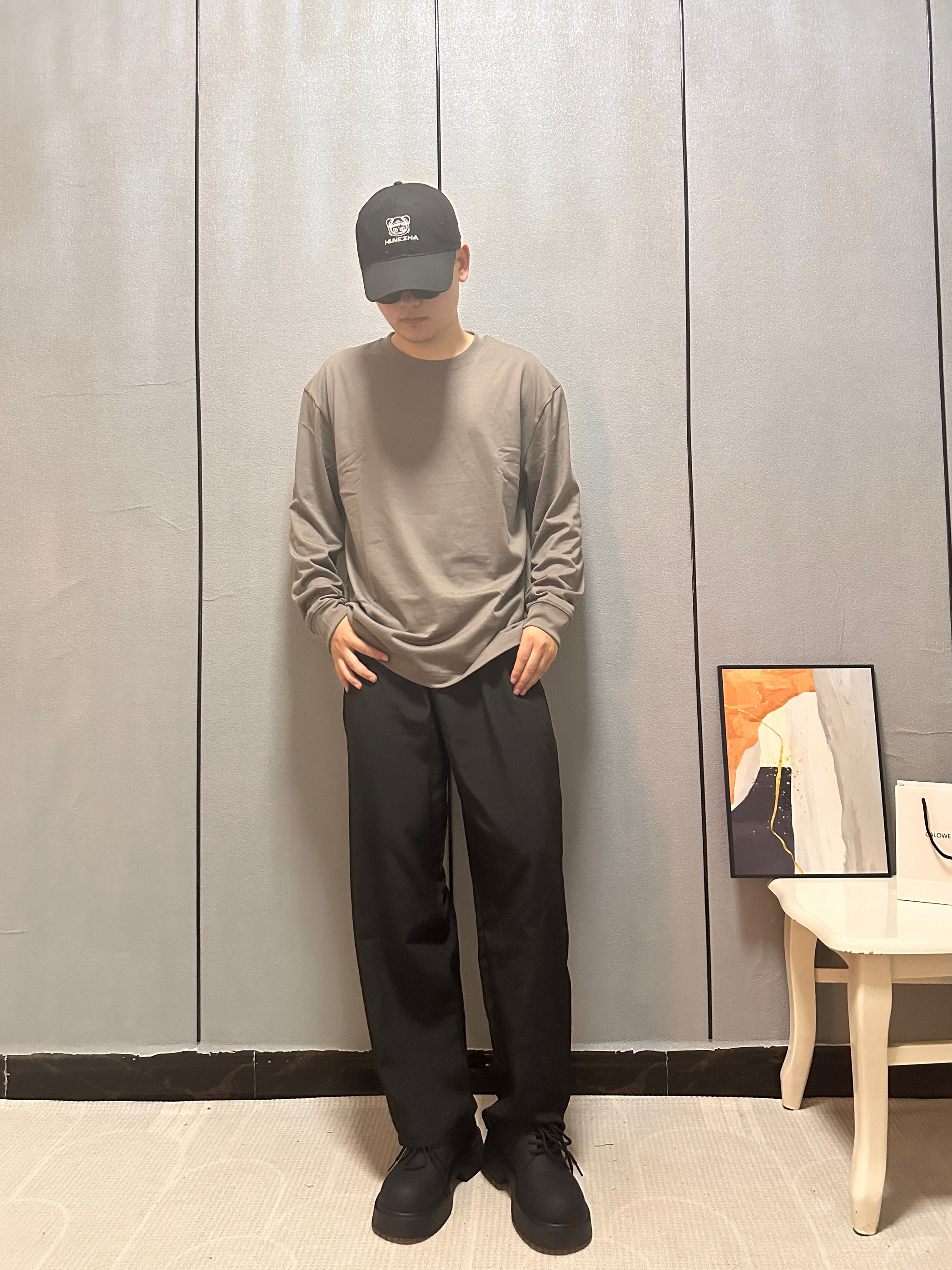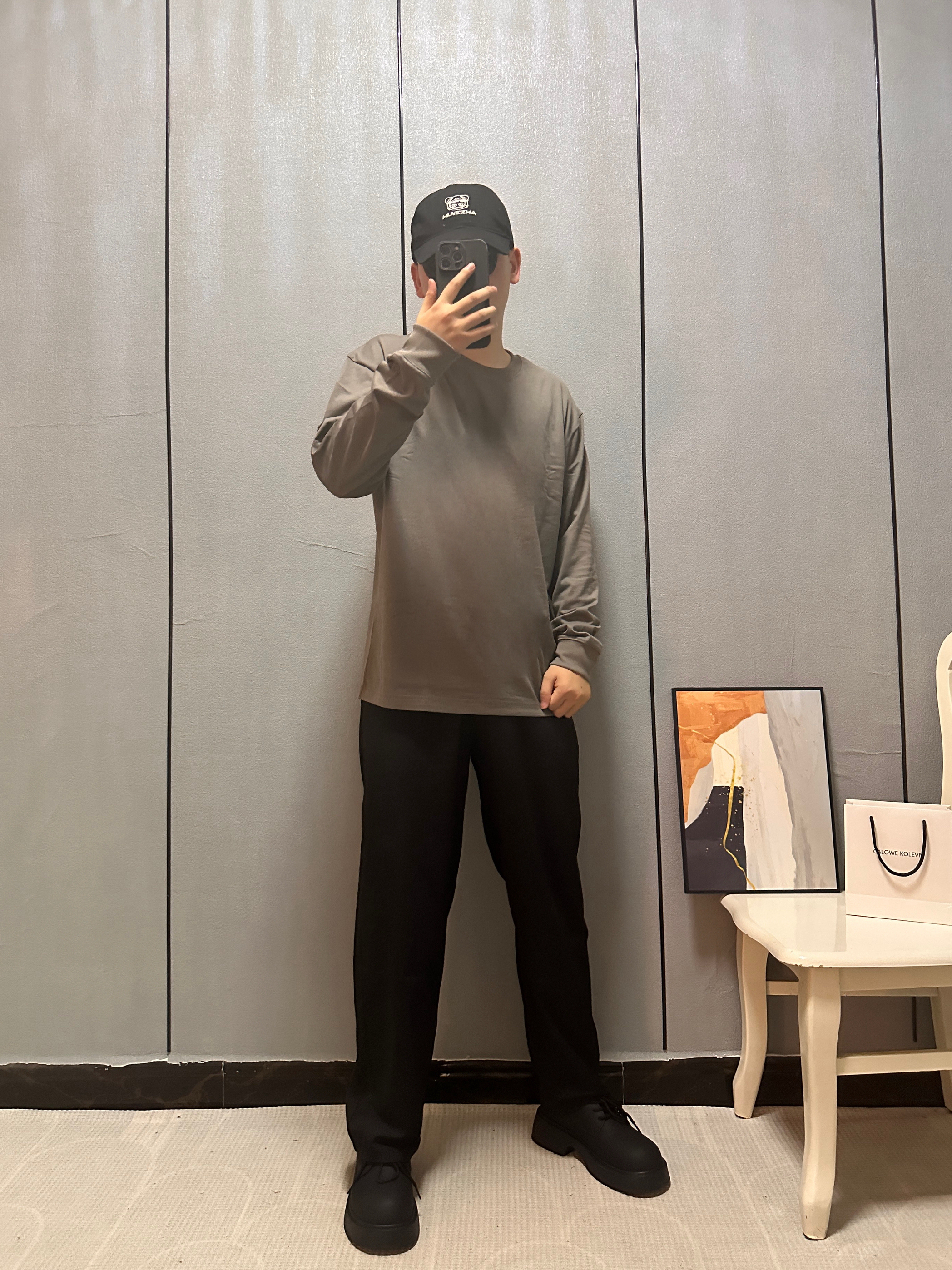 今早凉风一吹🧥 立马翻出这件深灰长袖T 软糯宽松的版型是懂换季的! 单穿不闷,套外套也不臃肿~ 搭条旧黑裤👖,松紧腰一勒,就能溜出门 爱它随意一裹的慵懒感 卷起袖口露手腕更利落💫 简单舒服,悄悄融进秋天里 👦🏻:178/69 👔XL码
