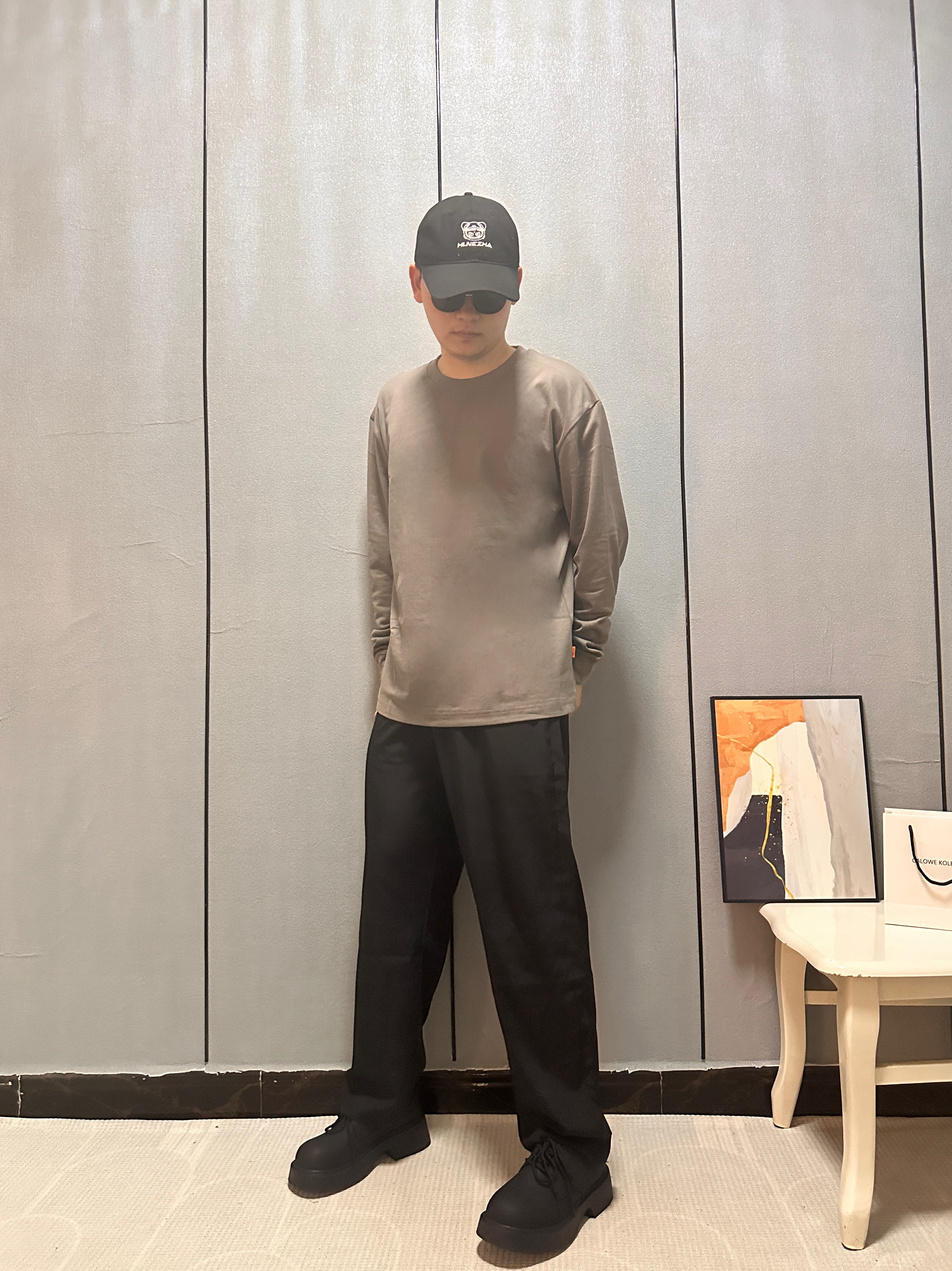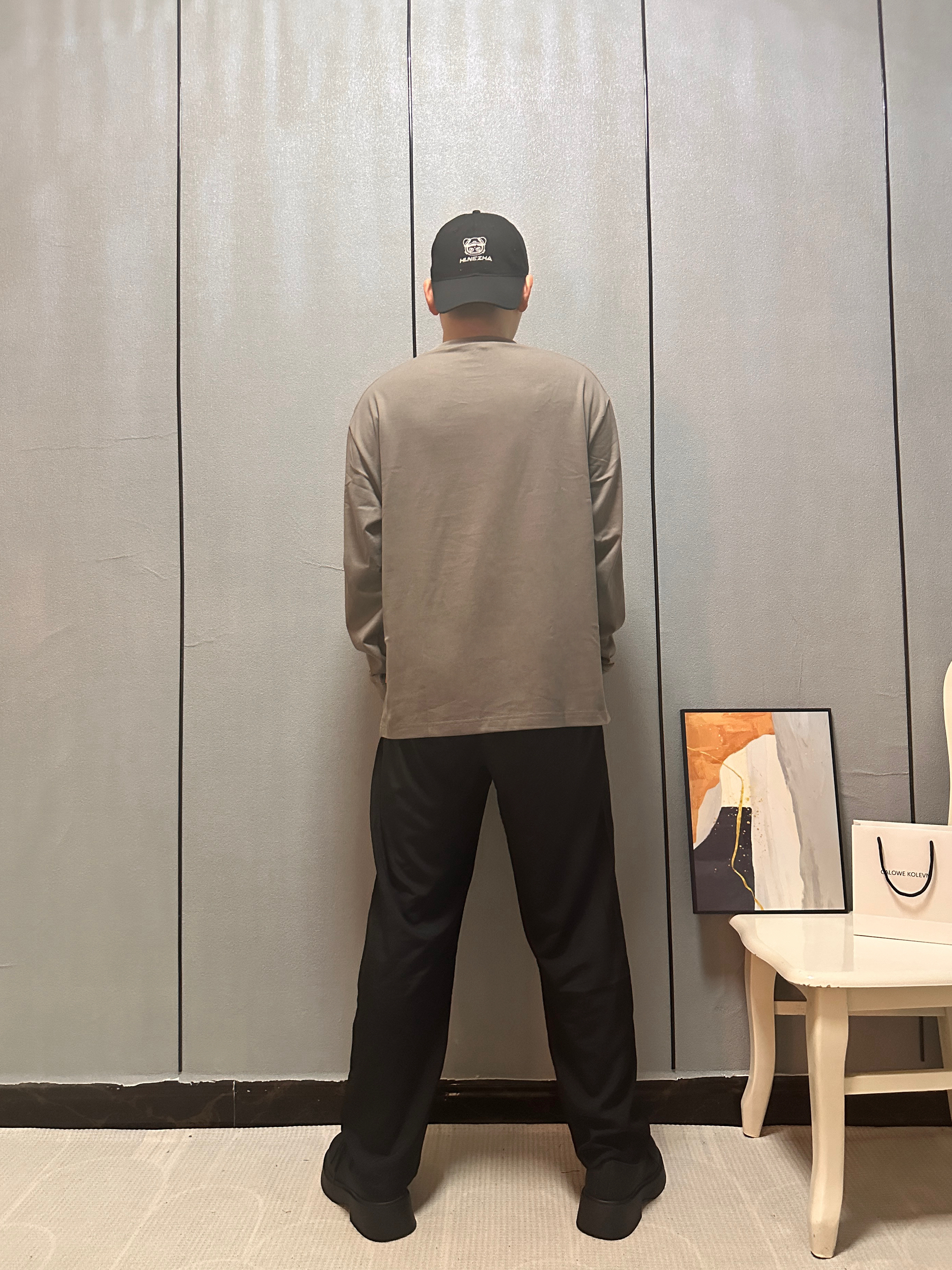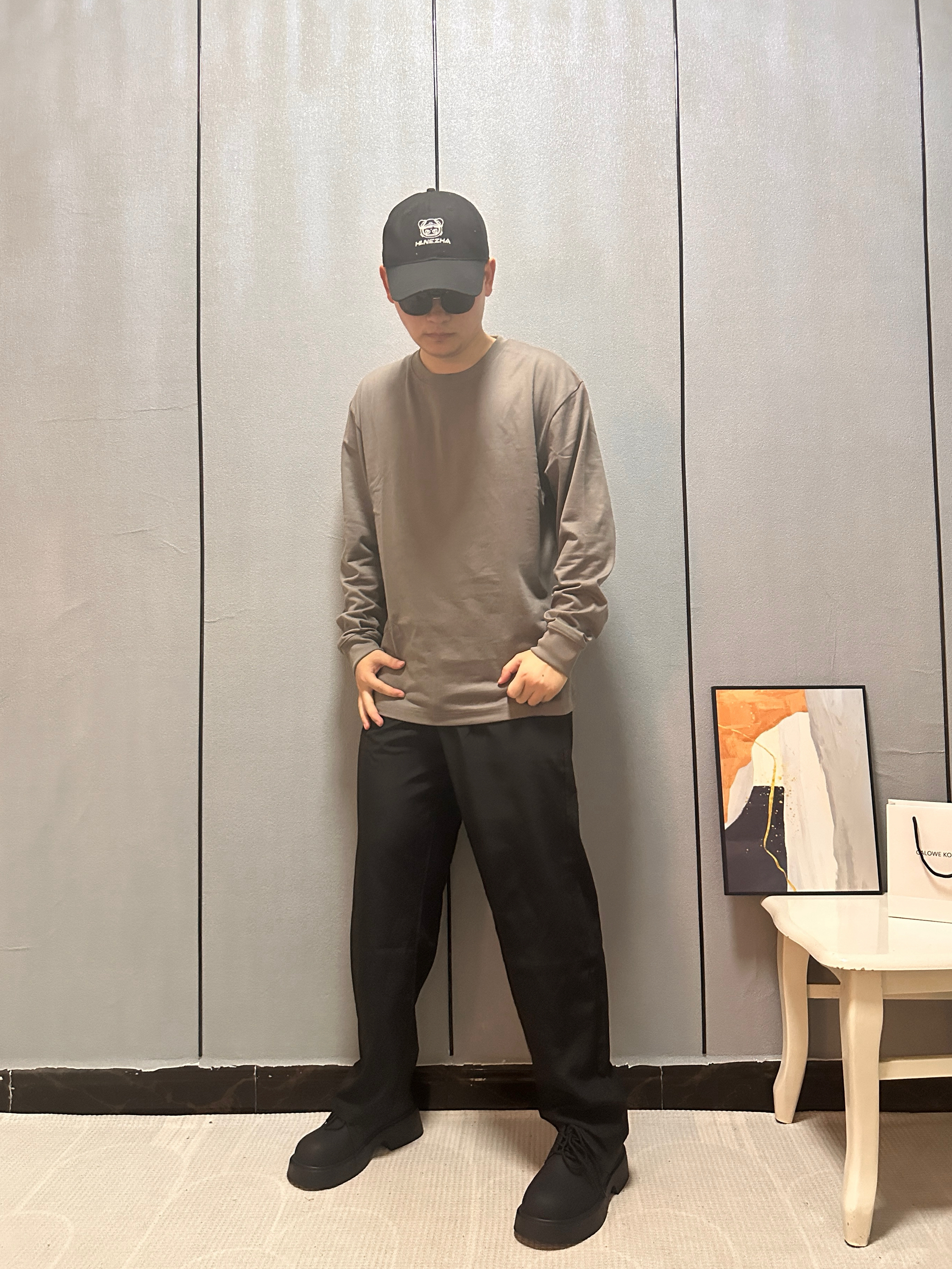 今早凉风一吹🧥 立马翻出这件深灰长袖T 软糯宽松的版型是懂换季的! 单穿不闷,套外套也不臃肿~ 搭条旧黑裤👖,松紧腰一勒,就能溜出门 爱它随意一裹的慵懒感 卷起袖口露手腕更利落💫 简单舒服,悄悄融进秋天里 👦🏻:178/69 👔XL码