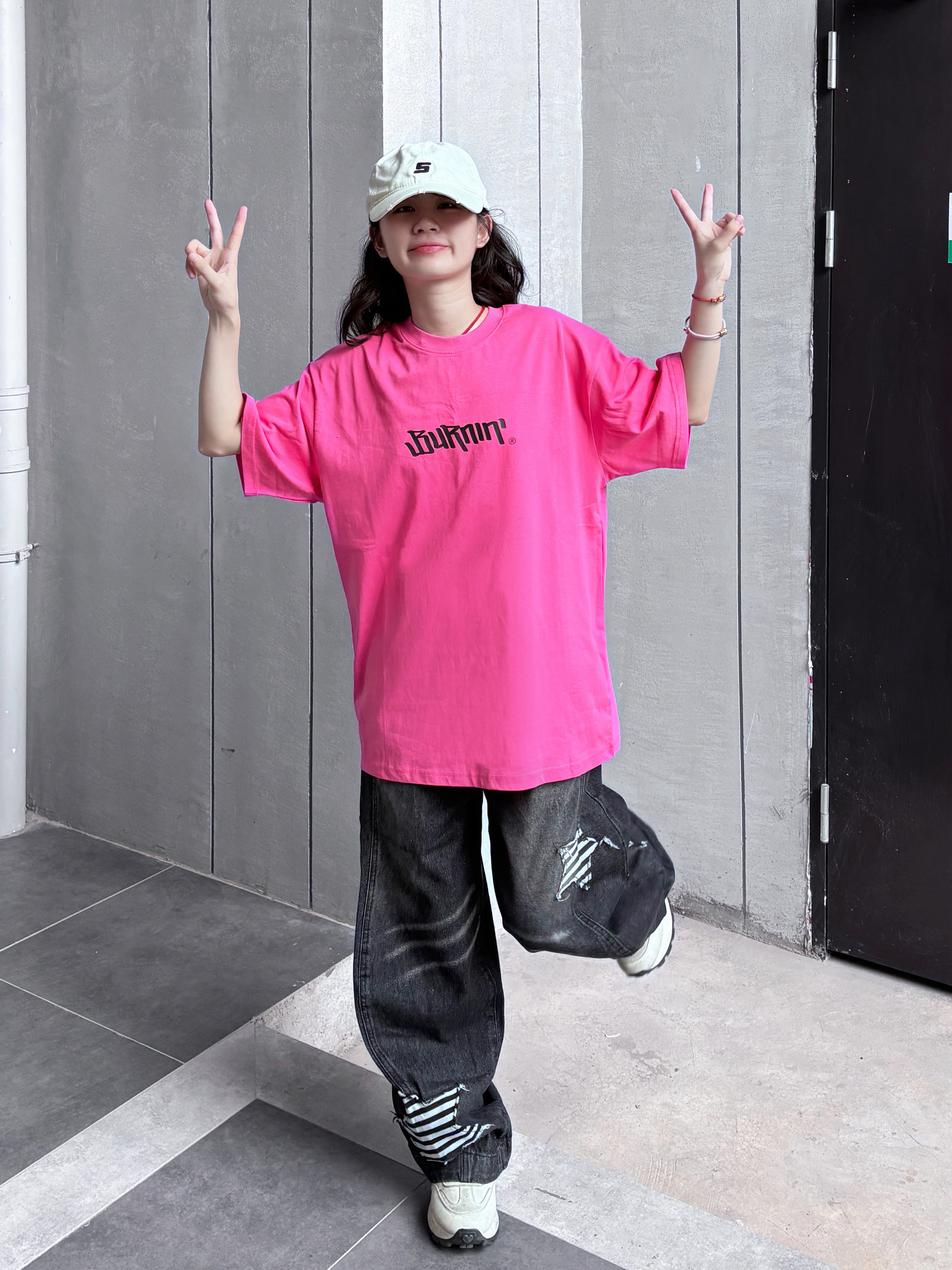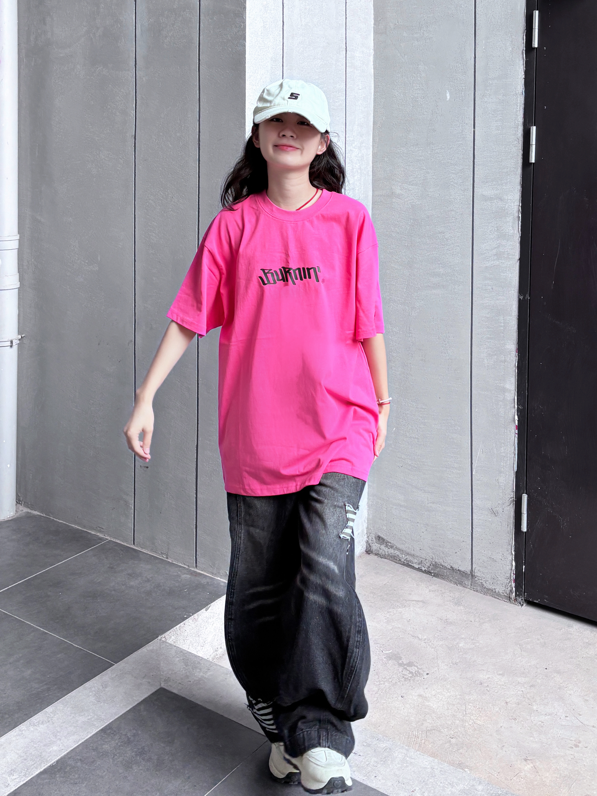 今天分享超爱的一套!这件火龙果色短袖是我的心头好,亮眼又显白,宽松版型藏肉又随性,胸前字母印花很有街头感~搭配做旧牛仔裤和复古小白鞋,松弛感拉满,日常出街舒适又吸睛,超适合夏天 🌞颜色也好百搭呀耶耶耶