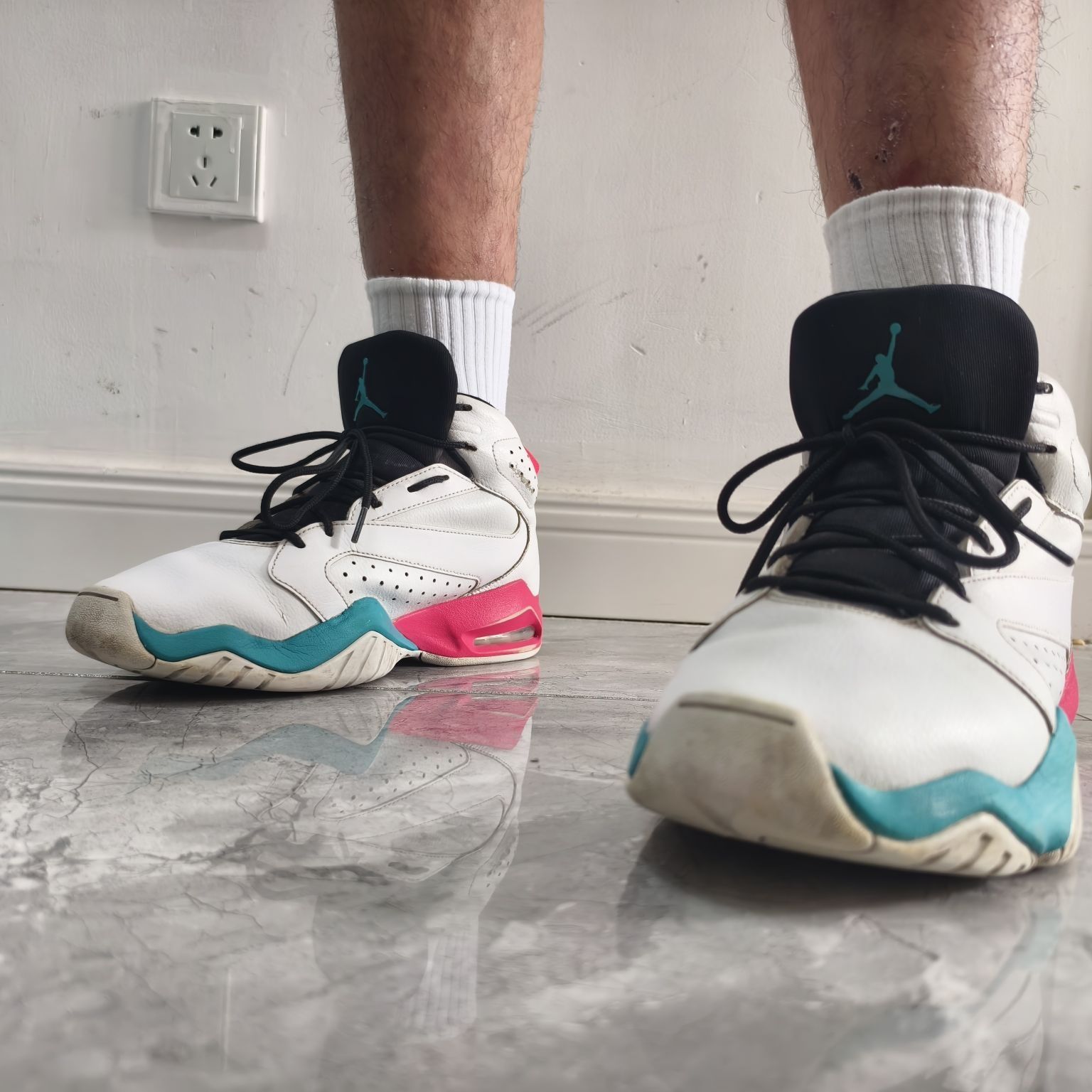 朋友们!这双 **Jordan Lift Off 白蓝粉**,我承认一开始是冲着粉蓝鞋底盲狙的 🤔。实物到手:嚯!这高帮,这线条,复古味拉满! ✨ 颜值在线,意外好搭 ! 粉+蓝打底超清爽🍃,重点那粉! 配我的浅色卫衣、牛仔裤甚至工装短裤都毫无压力👌!朋友见了都说:“这粉,居然有点帅?” (窃喜😎) 🦶 脚感:复古鞋里的“踩云侠”! 以为会硬?大错特错!后跟缓震巨明显,走路像踩在微弹的橡胶垫上...
