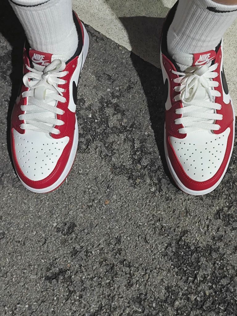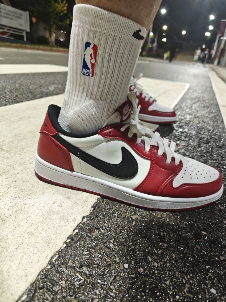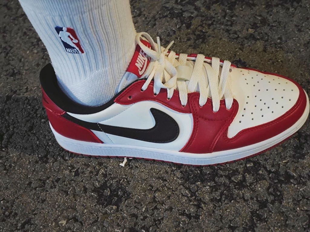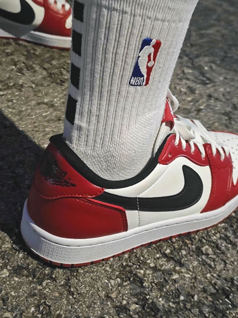 经典的黑白红配色设计 Air Jordan 1 低帮芝加哥配色,随便搭配白色篮球袜都非常帅🤩 据说今年这双 AJ1 Chicago low 在 10 月份会迎来复刻