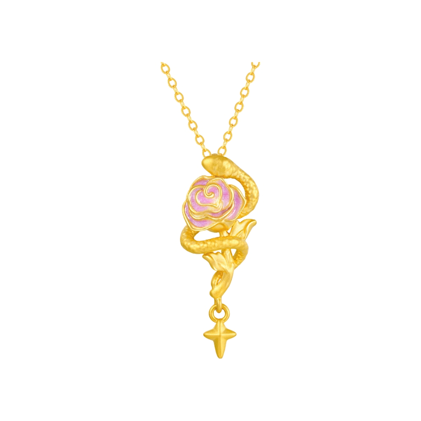 🛒好物名称:周大生黄金吊坠-蛇与玫瑰 🤔推荐理由:这朵金玫瑰吊坠美炸啦,金色超有质感,荧光法琅彩的工艺,粉玫瑰精致又灵动,荧光灯下更漂亮,小星星坠子添了份俏皮~实物比照片还好看,戴上超显气质,精美莫奈礼盒包装,妥妥的宝藏饰品!
