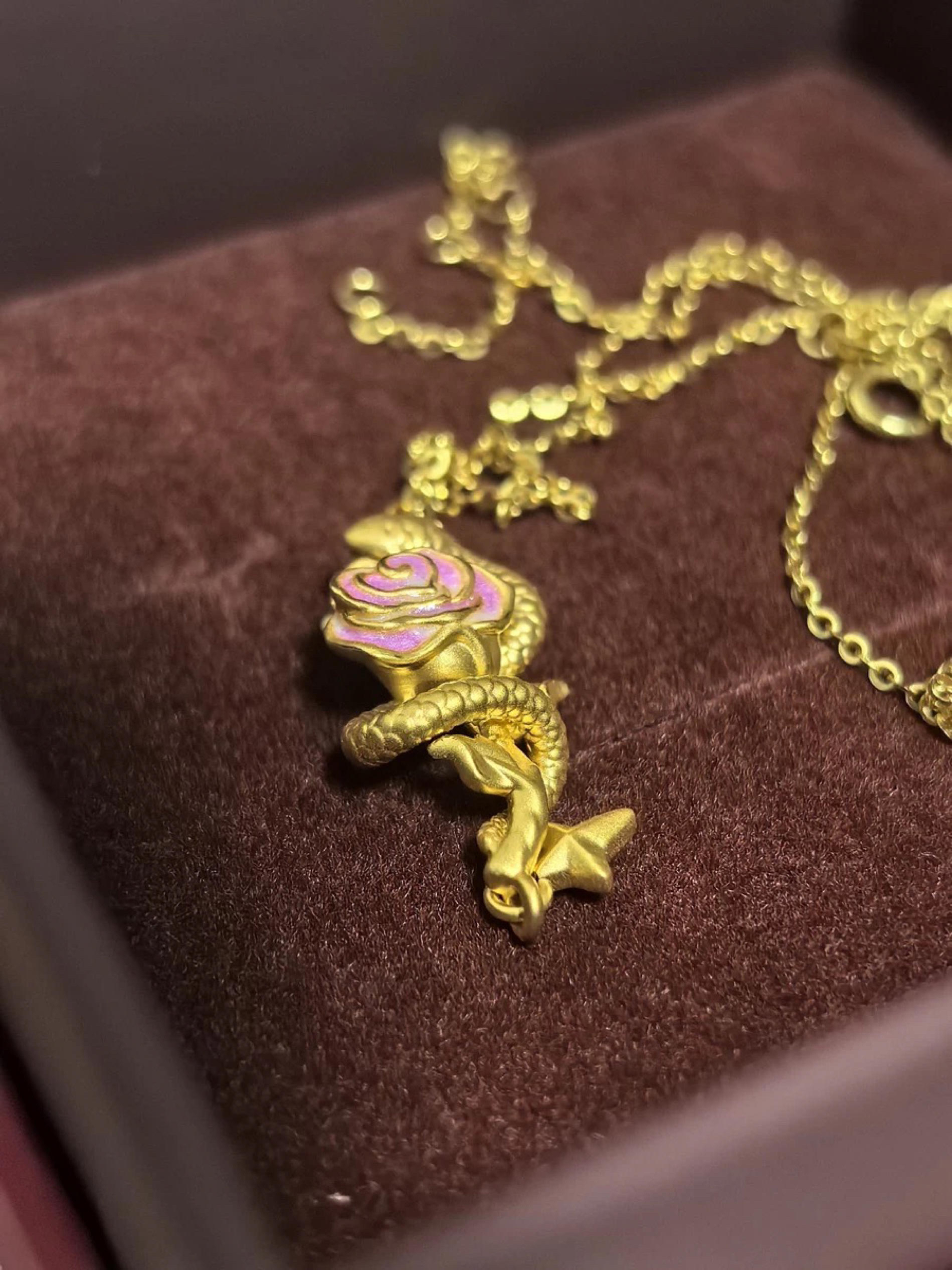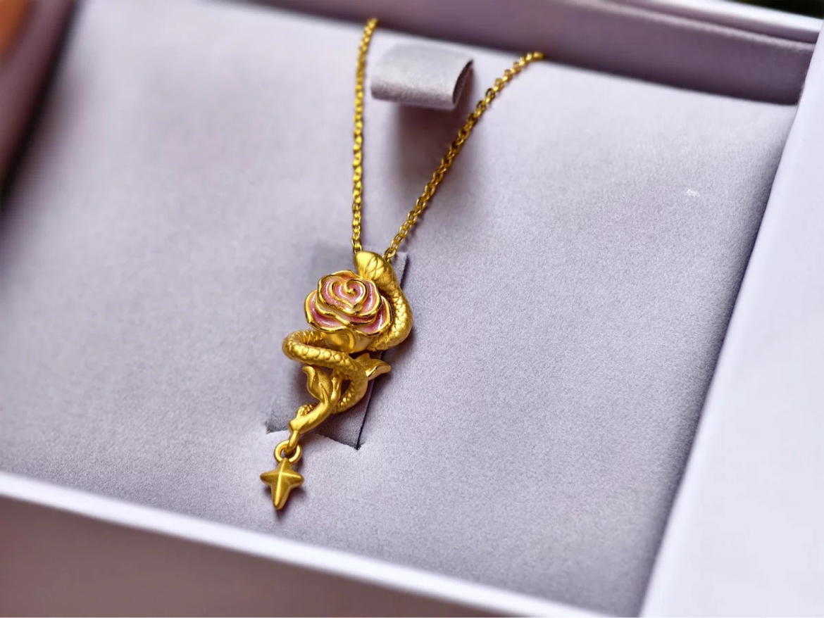 【周大生黄金吊坠足金蛇与玫瑰生肖蛇硬金荧光珐琅送女朋友生日礼物】,由用户 麻鱼咸瓜 分享,来自广东。这是一篇来自识货社区的真实用户分享笔记。
