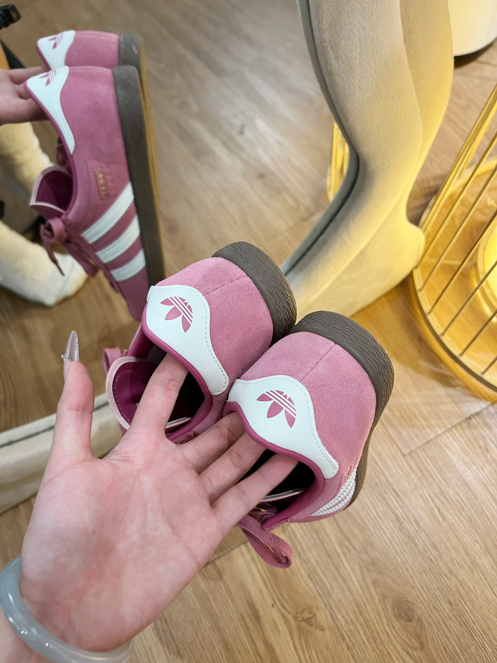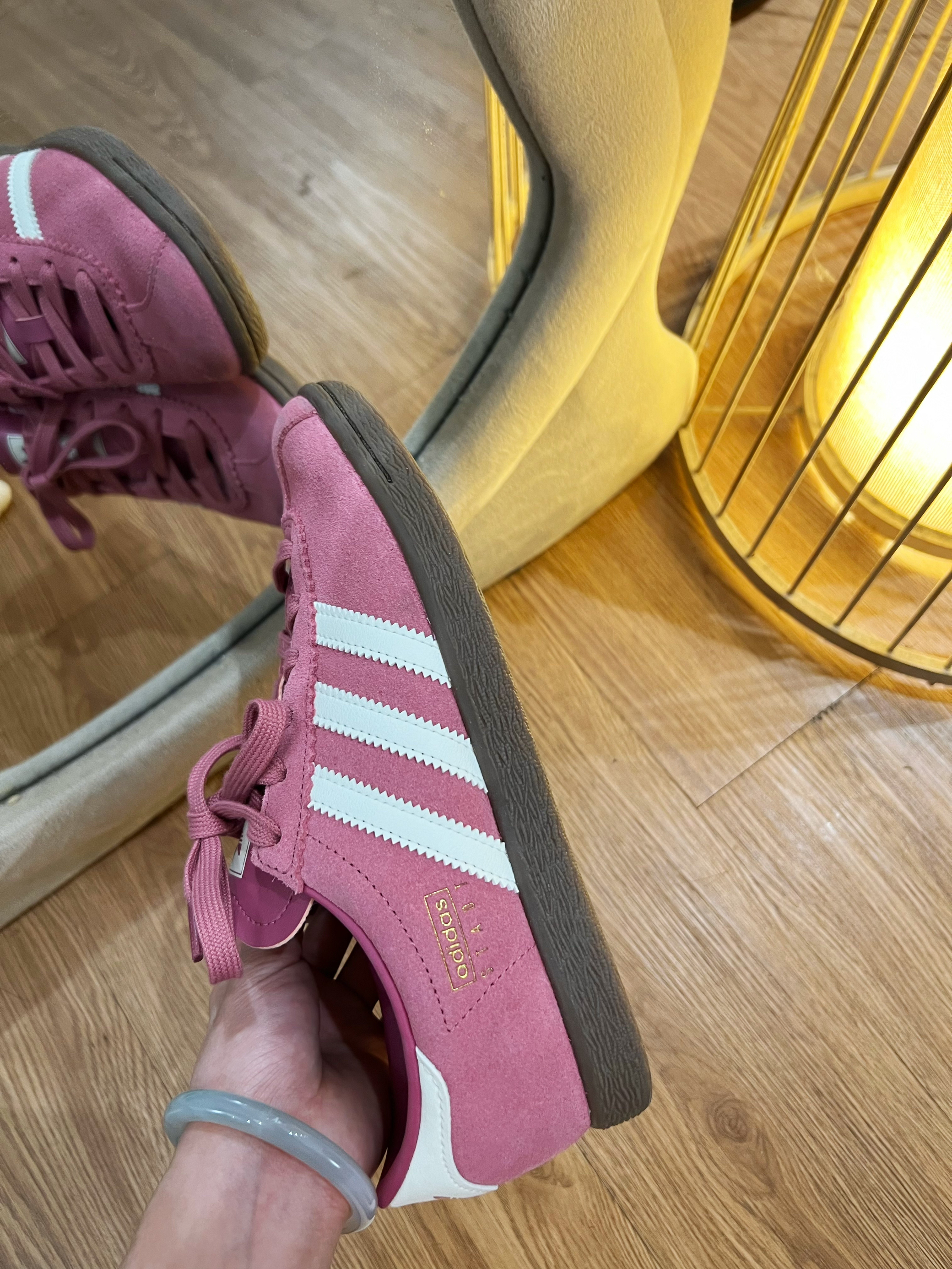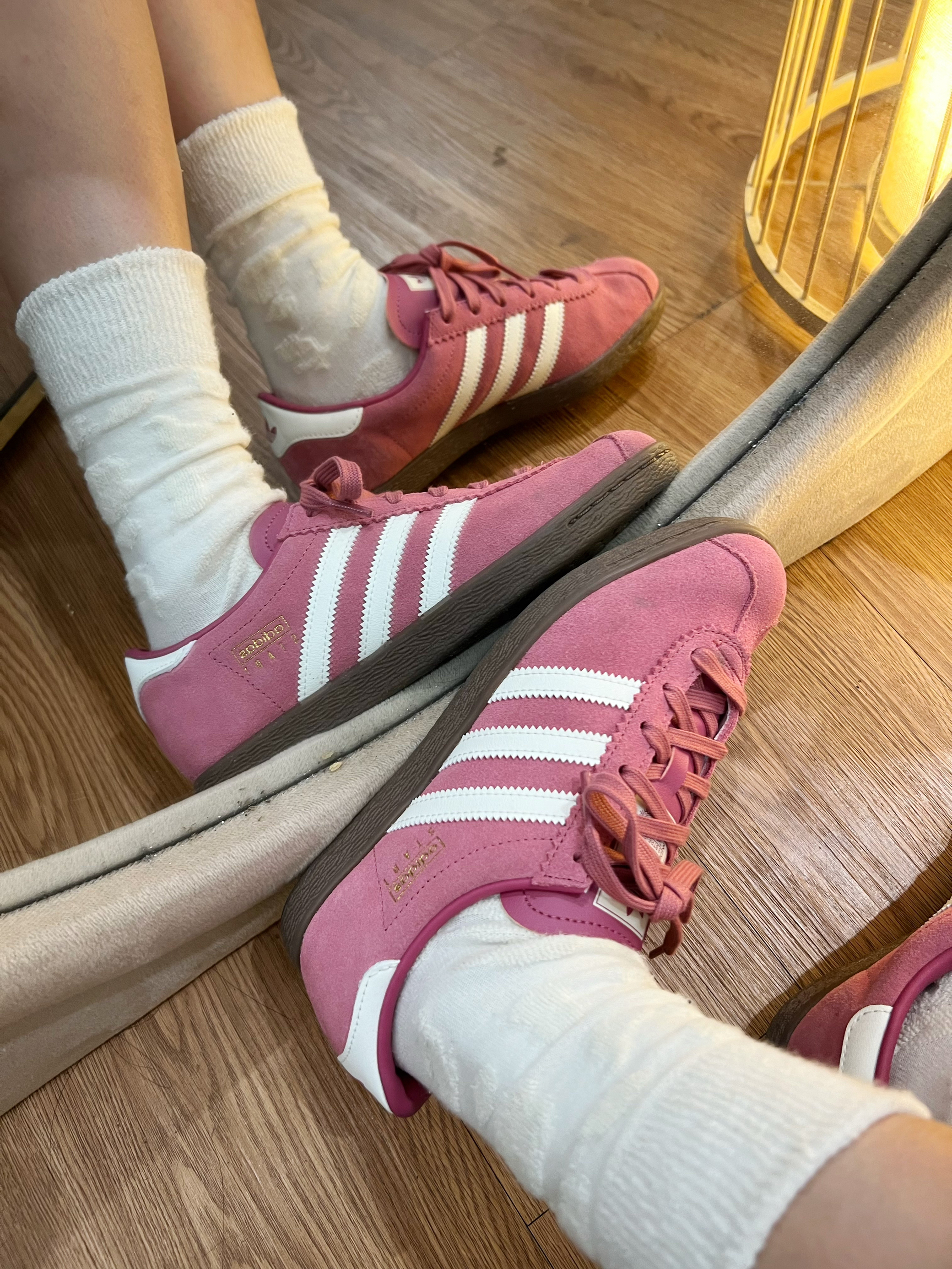 爱了!好喜欢我的粉色阿迪🎀~ 👟球鞋名称:粉色阿迪达斯德训鞋 🔍分享理由:好看百搭 🤔整体感受:上缴舒服不勒脚 版型也显腿瘦