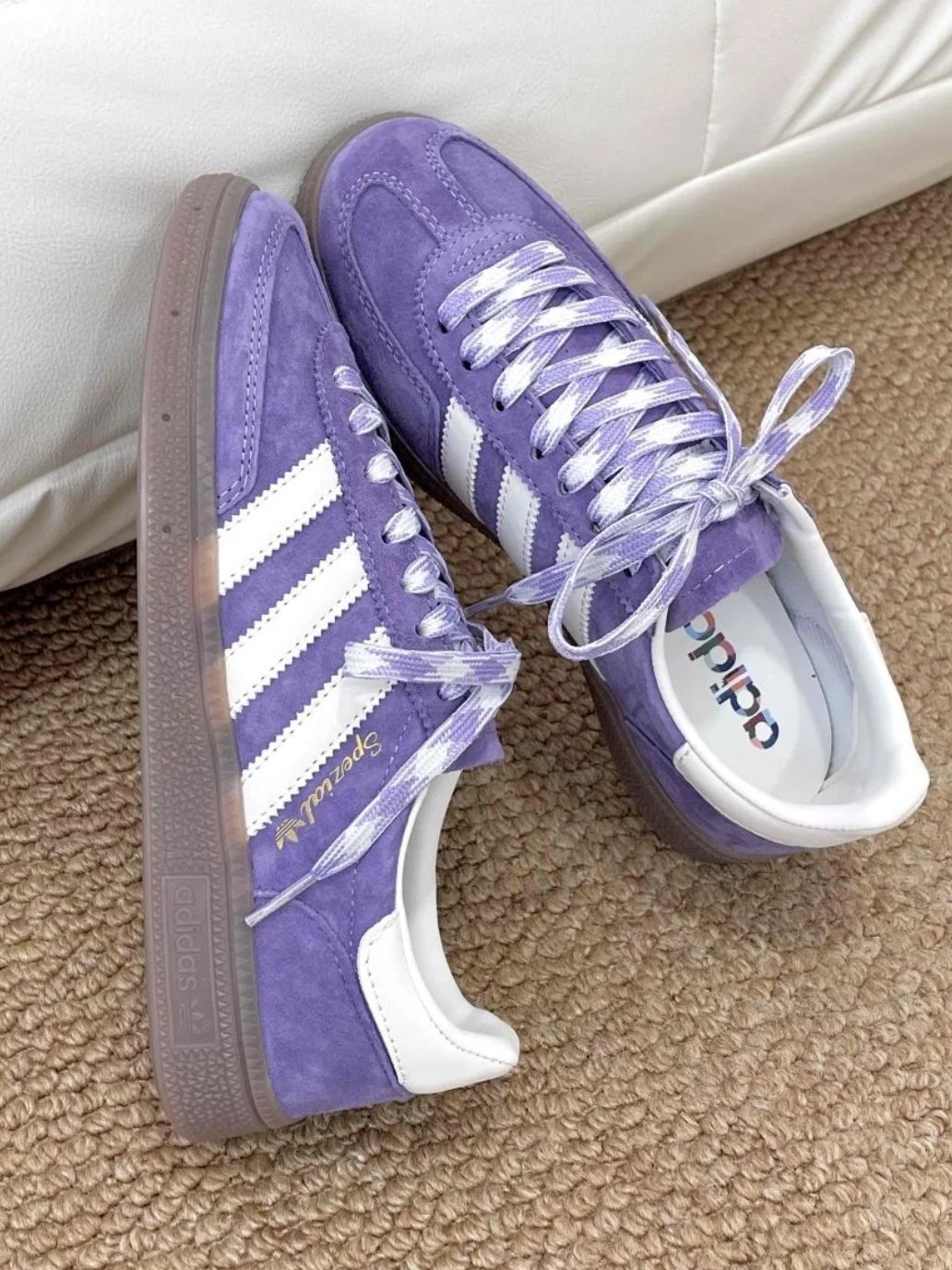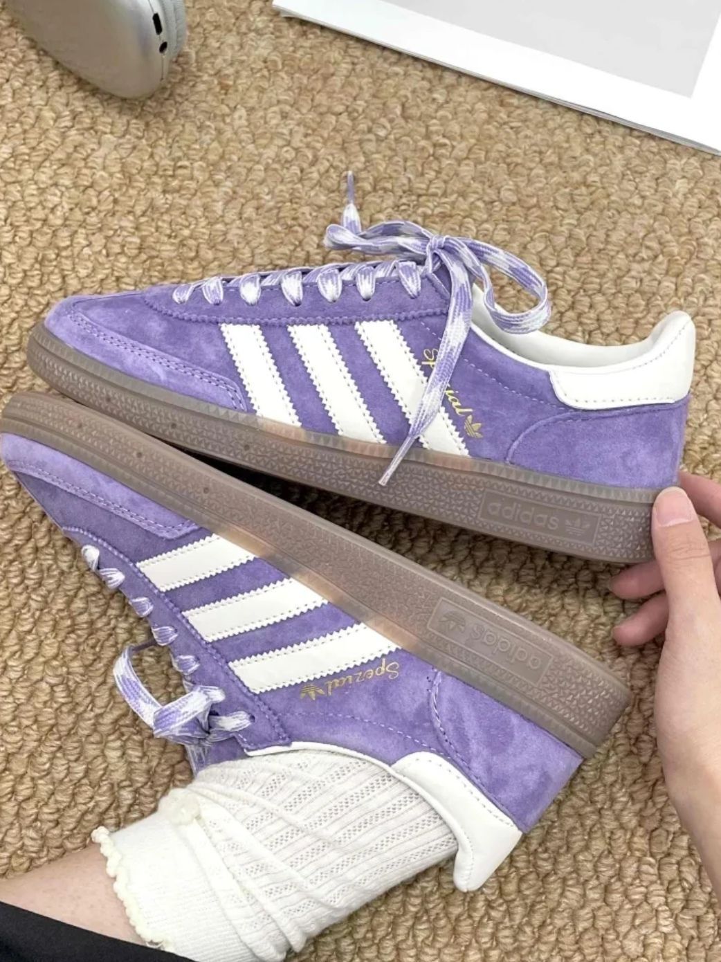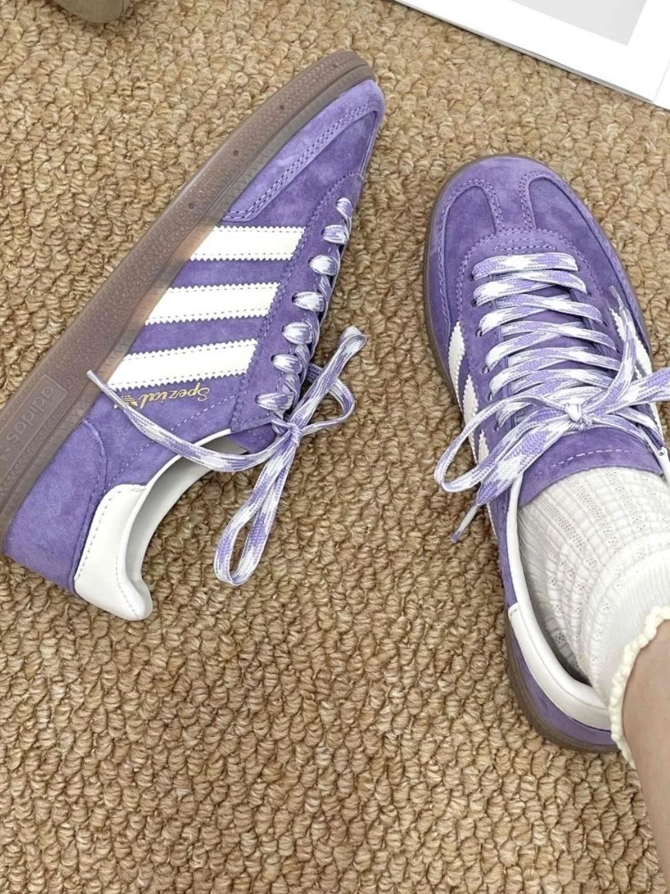 本篇笔记关联了【马思纯同款】 adidas Originals Handball Spezial 薄底鞋 T头鞋 德训鞋 板鞋 简约百搭复古轻便防滑耐磨贴合圆头耐穿 浅紫色/白色等商品,为用户提供真实的使用体验和购买参考。