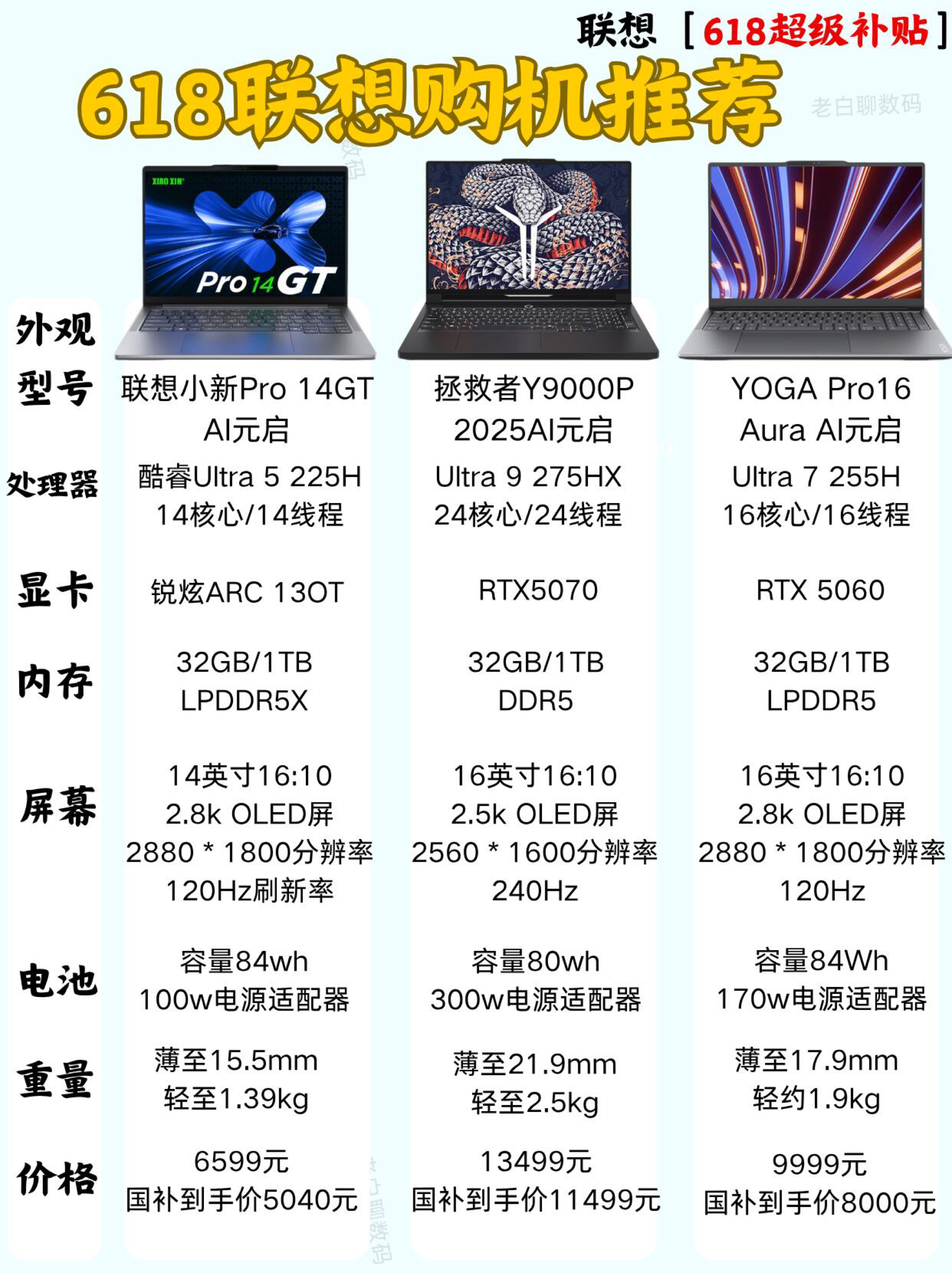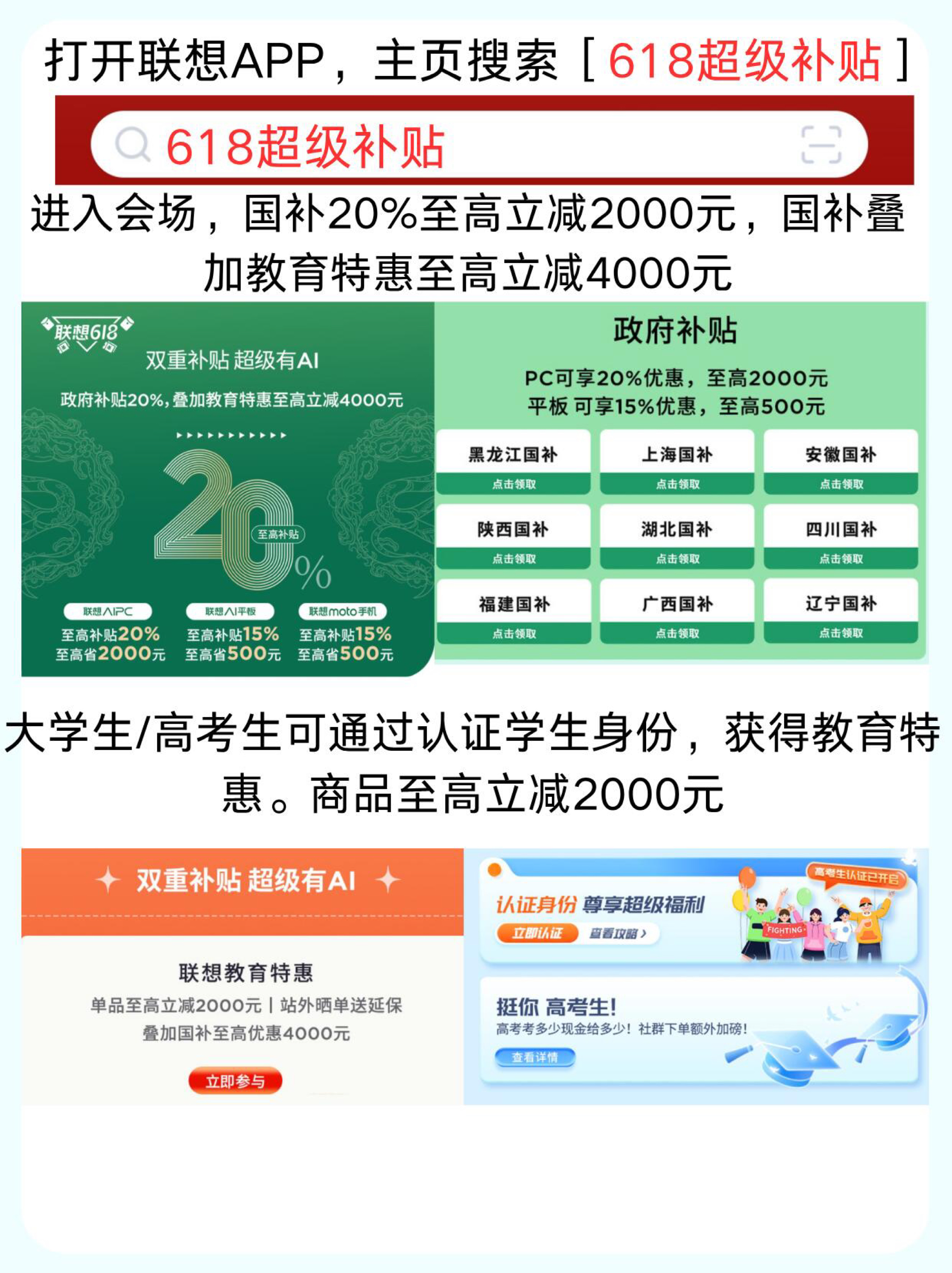 618联想拯救者高性能笔记本选购攻略! 联想近期又更新了几款笔记本,对于大学追求可以流畅用4年的小伙伴来说,选择一款适合的笔记本实在是太重要啦! 今天给大家对比一下这几款新品有什么不同,如何根据不同需求选择! 大家可以在联想官网/联想APP购买,价格补贴更多! ✅参与方式: 1️⃣联想APP首页🔍【618超级补贴】,进入活动会场; 2️⃣进入活动页面领取国补优惠及教育特惠; 3️⃣参与国补可降...