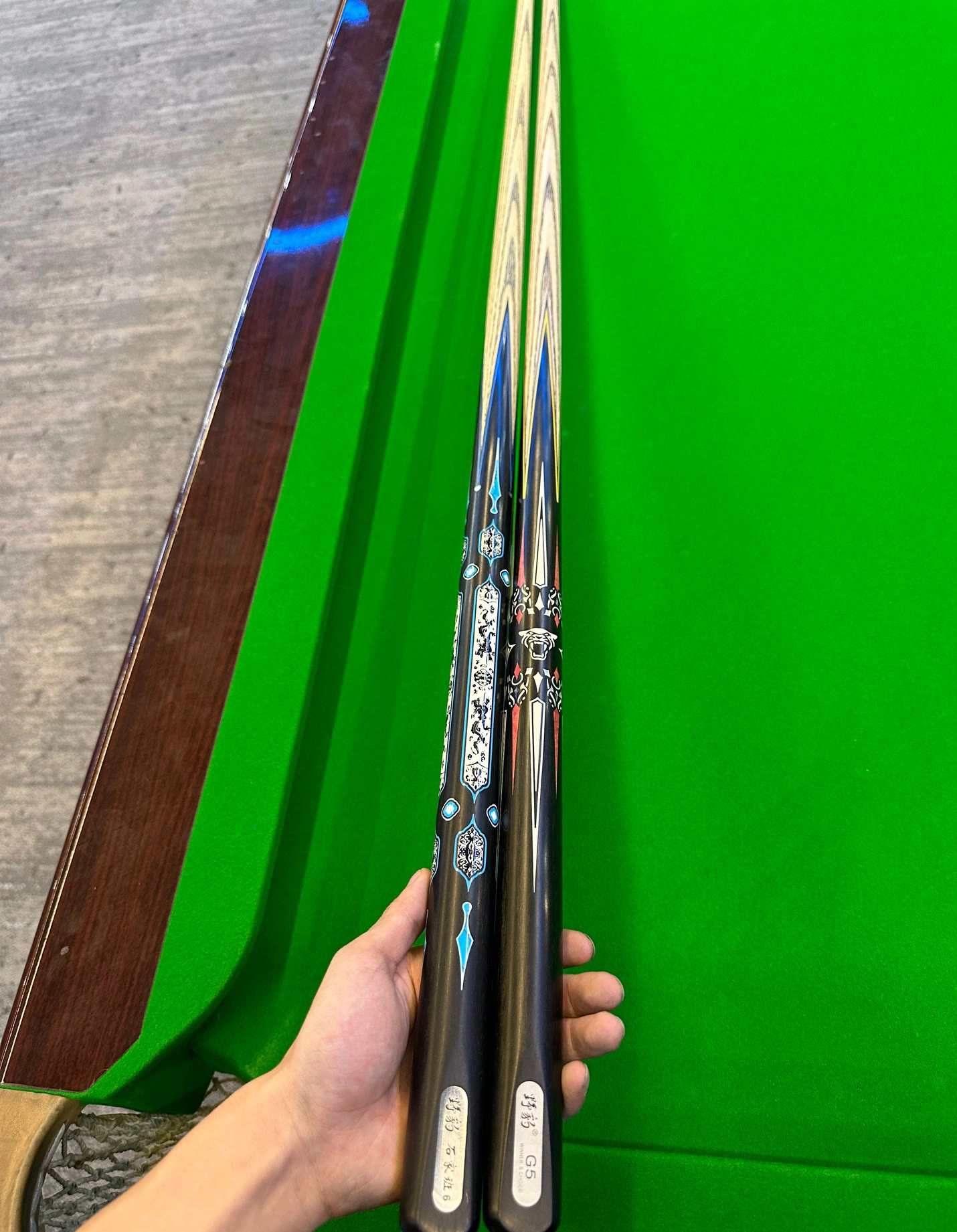 最近入了支台球杆。剑纹简直不要太好看,实战打着也顺手,准度方面能媲美大牌款。说是材质白蜡木,手感不错且耐用。百元价格在这性能和颜值下超香,作为新手进阶杆合适得很。唯一希望,杆尾配件能再精致一些就好啦~