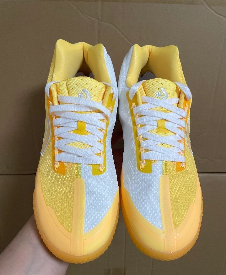 外观配色 整双鞋主打的颜色非常亮眼,白黄的配色很夏天很青春,毕竟是白敬亭主打的款,鞋垫上的青春路设计很有新意。 👟尺码脚感 鞋垫脚感很好,缓震小体重球员完全够用,我是看见赵睿也上脚了才买的。重心很低,天然防侧翻设计,场地感很好。