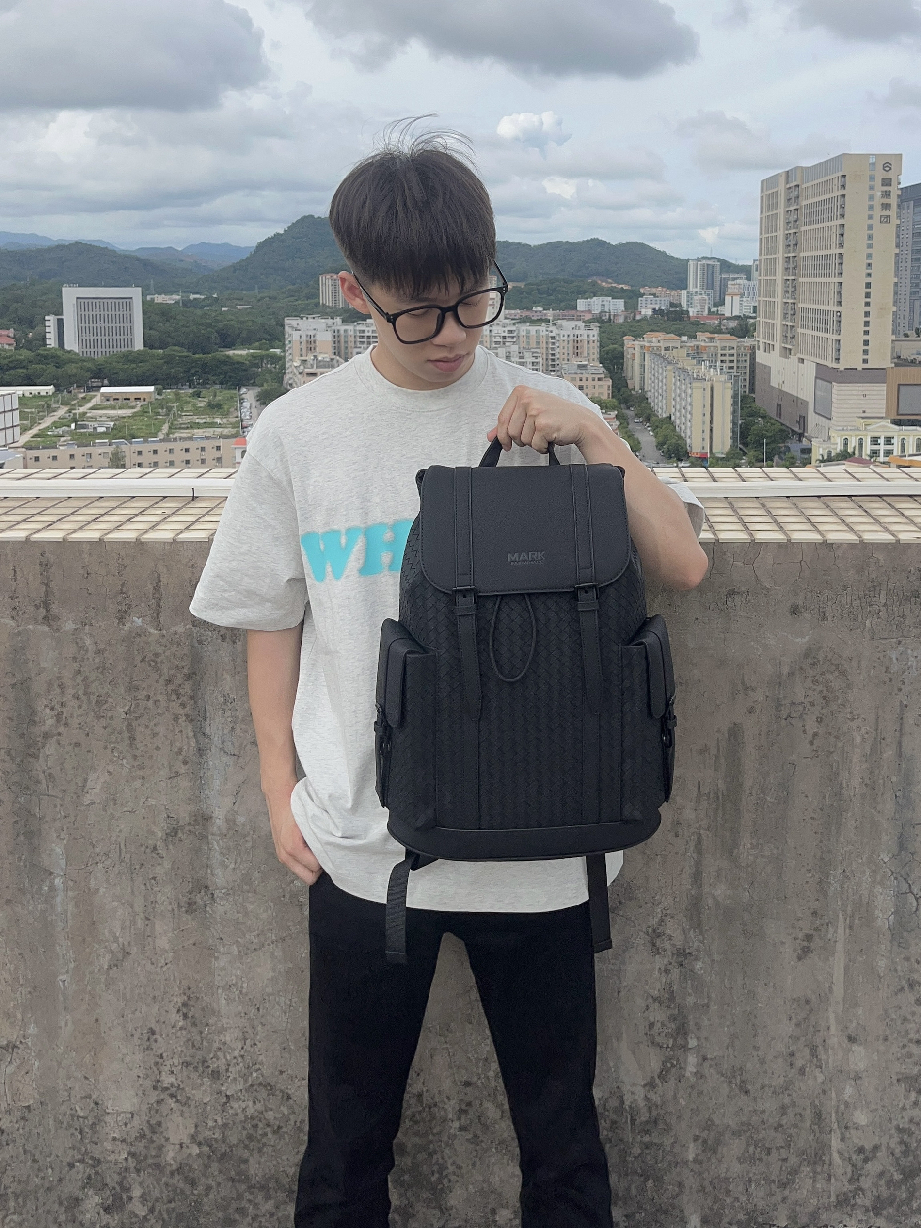 今天分享 马克华菲/FAIRWHALE 一款很适合通勤的双肩包🎒 编织外观复古时尚 PU皮面料质感满满 内部容量也很大 电脑书本都能装下🔥 再搭配上简约短袖👔和直筒牛仔裤👖 一套搭配下来 无论是日常通勤 还是户外出行都没有问题🙌
