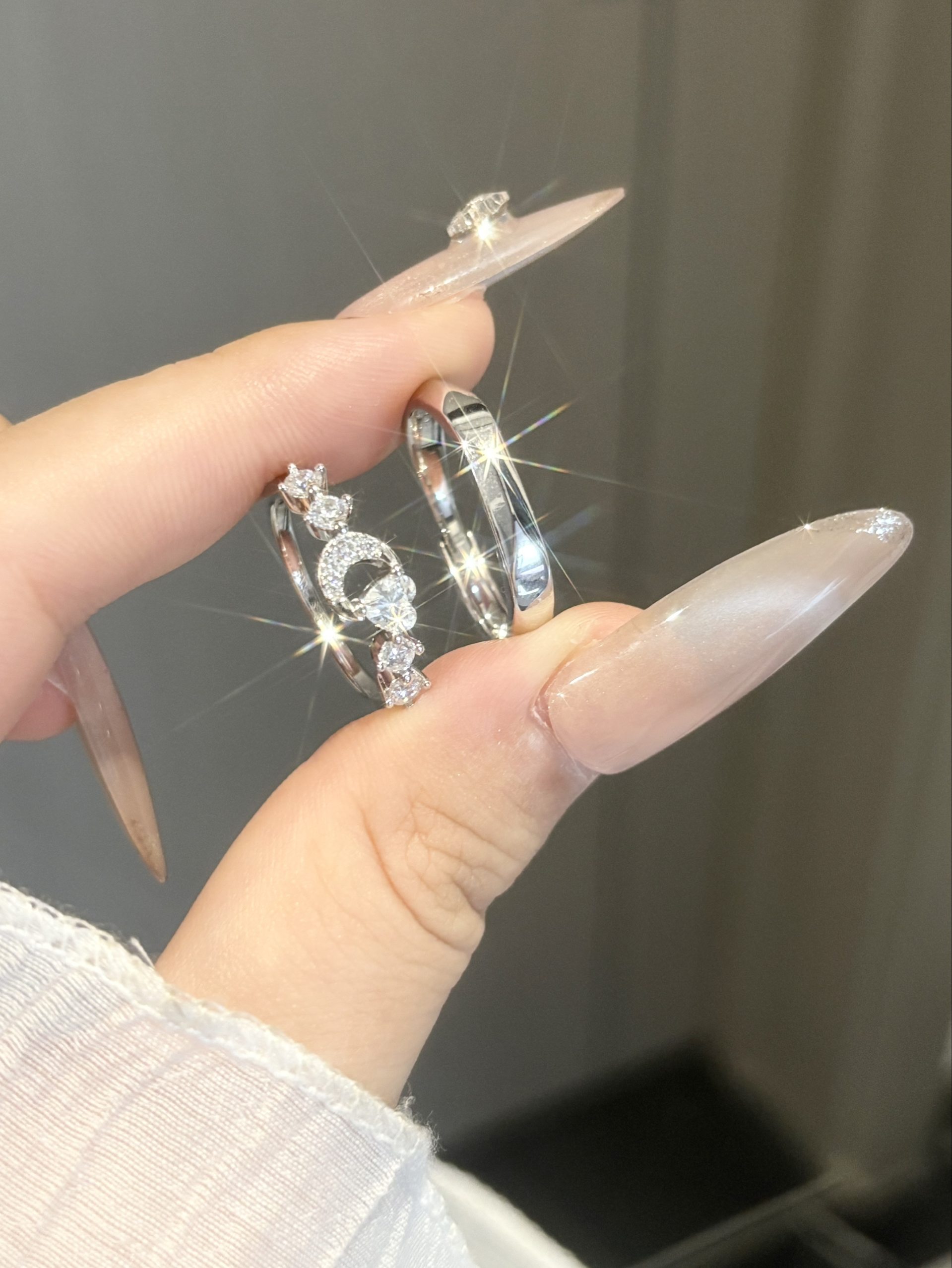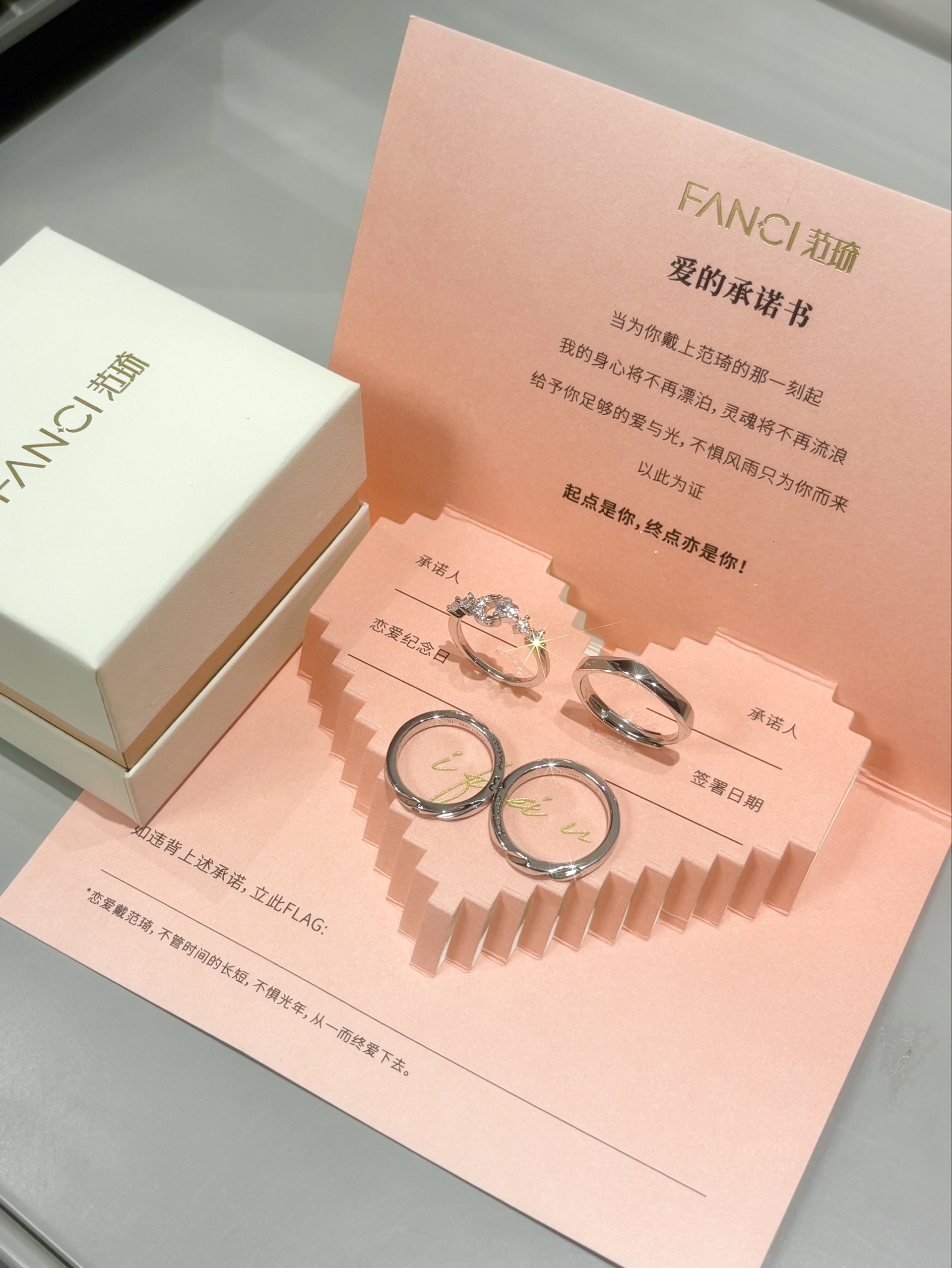 当然是因为浪漫的寓意啊 “i fanci u”🩷 我这两对戒指都是范琦的 相爱同频是吸磁的还阔以贴贴哦 心月相伴满足了我的少女心哎 我日常戴着舒适又有气质 平时和对象一起戴也敲有CP感啦~