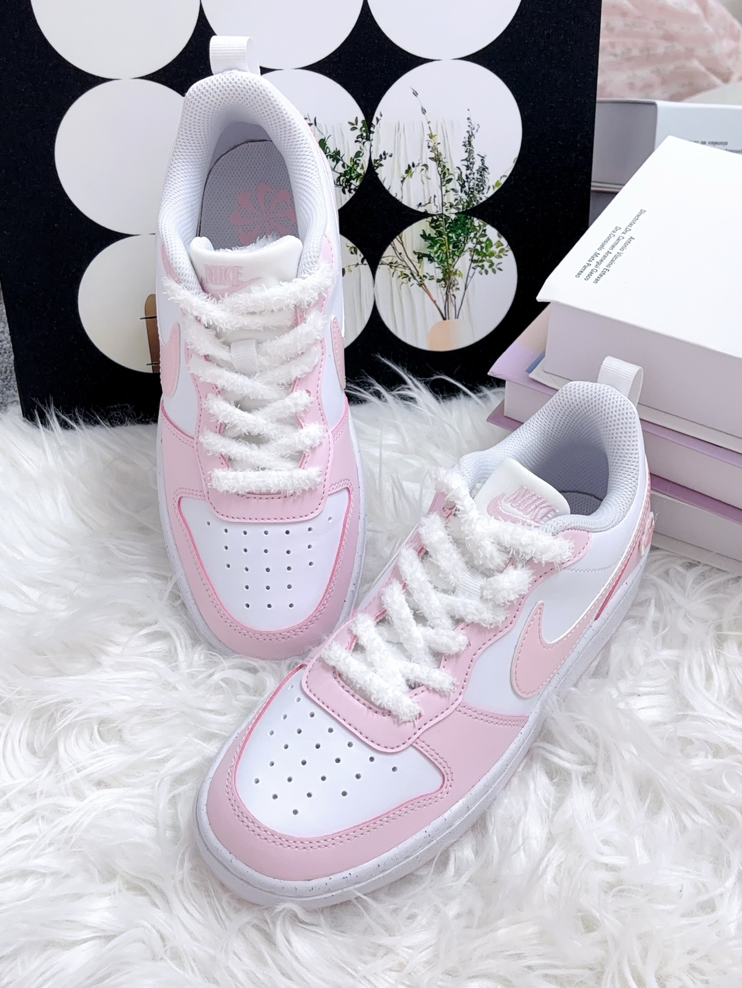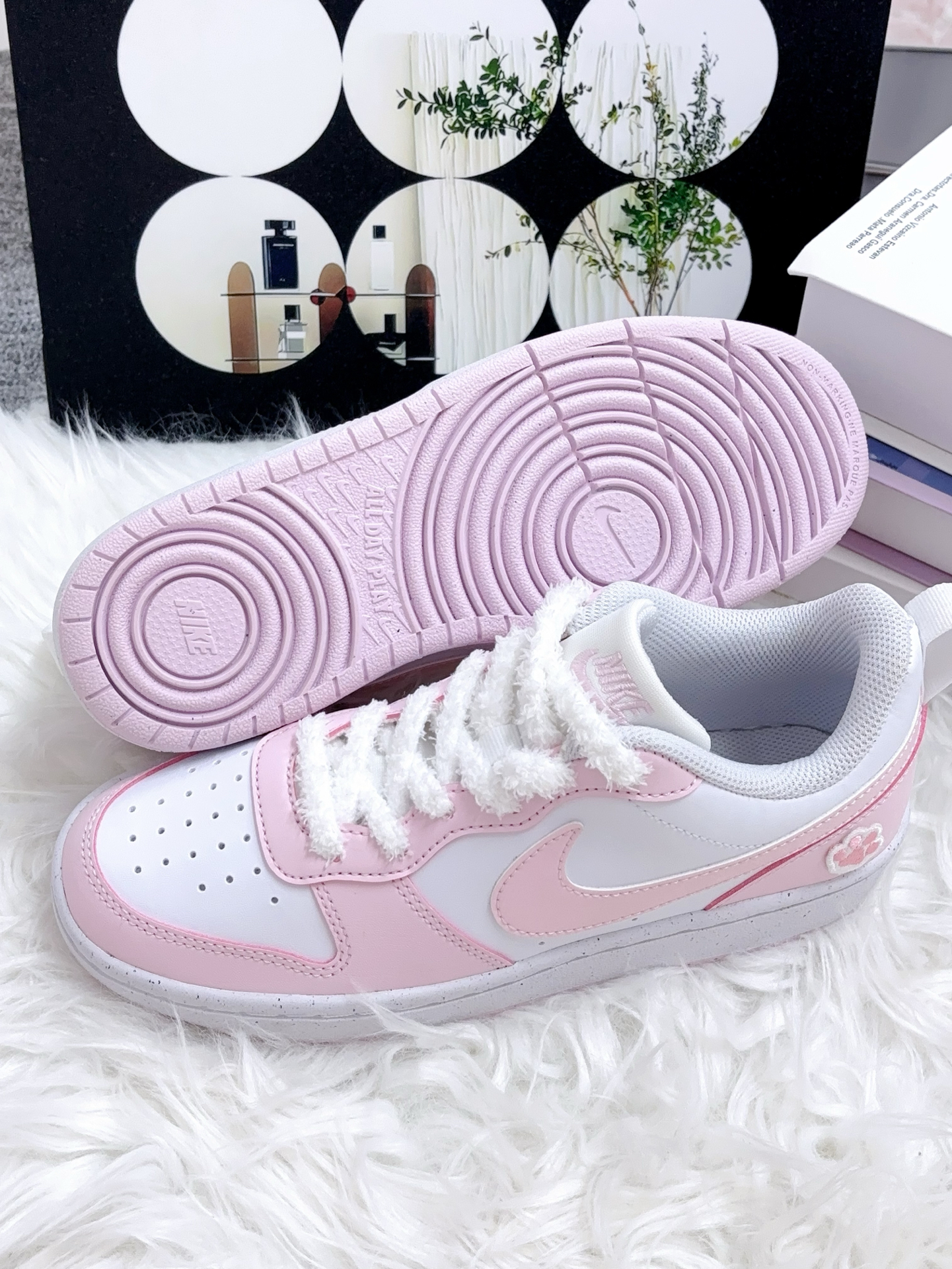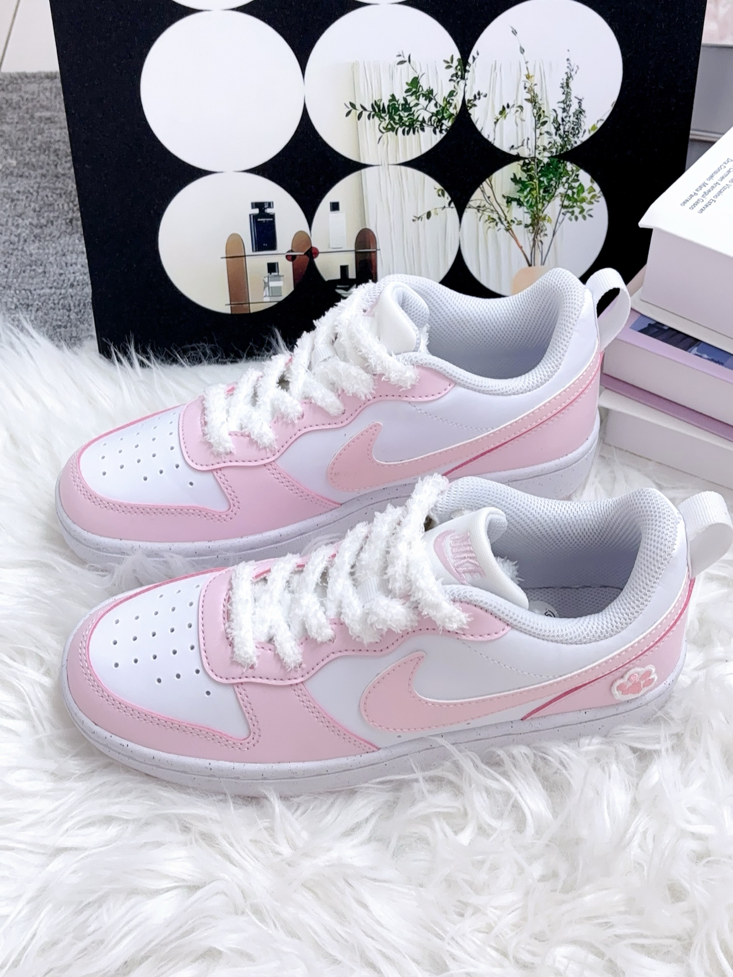 一款Court Borough的定制款,在原有基础上做了些装饰 我是这样看的,后跟带有猫爪图案,加上鞋带变为了毛绒流苏感的白色鞋带,很有“猫爪踩雪”的感觉 鞋子本身低帮板鞋休闲风,而且加上粉色可爱装饰,萌妹子上脚,萌中萌 日常通勤来说,脚感还是可以的 #少女板鞋粉色很显嫩 #一步迈入夏 #买鞋抄作业 #今日份穿可爱的板鞋分享 #高颜值粉色板鞋