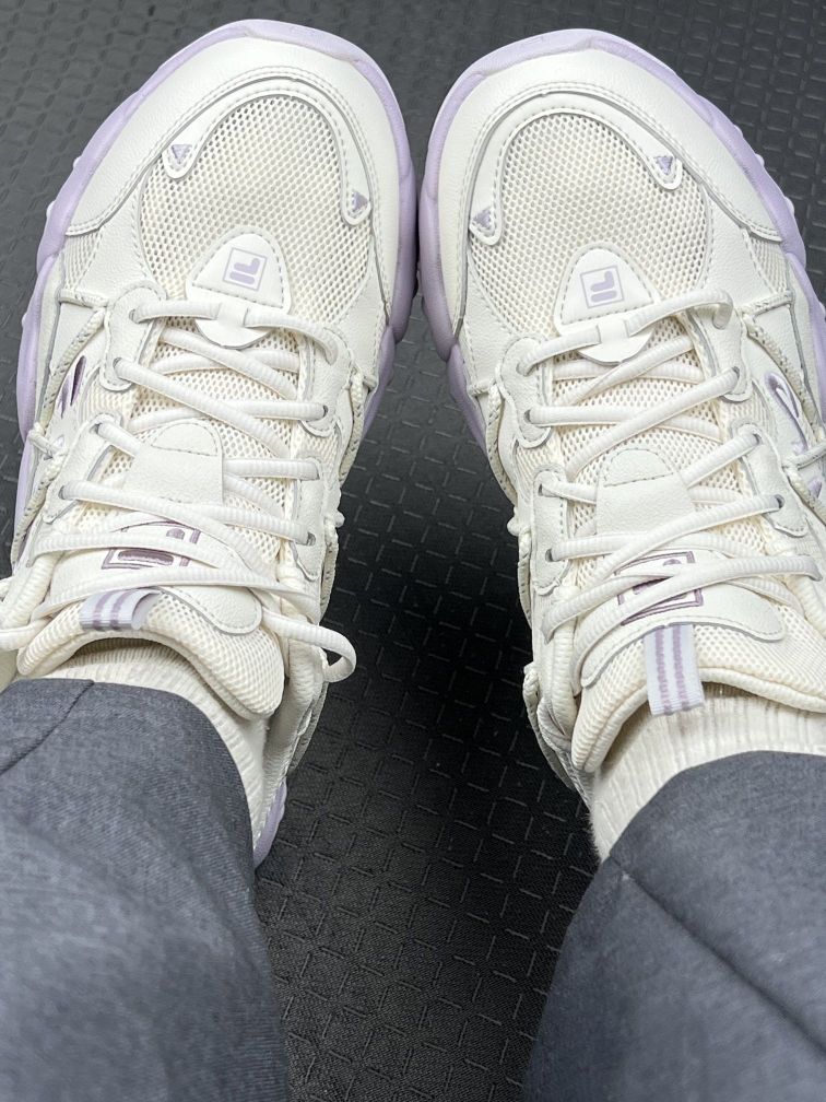 👟 关于鞋子: ①鞋型:厚底老爹鞋,鞋头偏圆,不会挤脚,但鞋身有一定宽度,脚特别瘦的可能觉得有点空。 ②鞋面:网面+合成革拼接,透气性不错,夏天穿不会闷脚,但白色部分容易蹭脏,要定期擦。 ③鞋底:5cm左右厚底,增高效果明显,走起来不硬,但鞋底有一定重量,刚开始穿需要适应。 ④鞋码:建议试穿或买小半码。 💜 颜色和细节: 奶油白+淡紫的配色实物比照片柔和,不荧光,搭配浅色衣服很清爽。 鞋舌和侧边有...