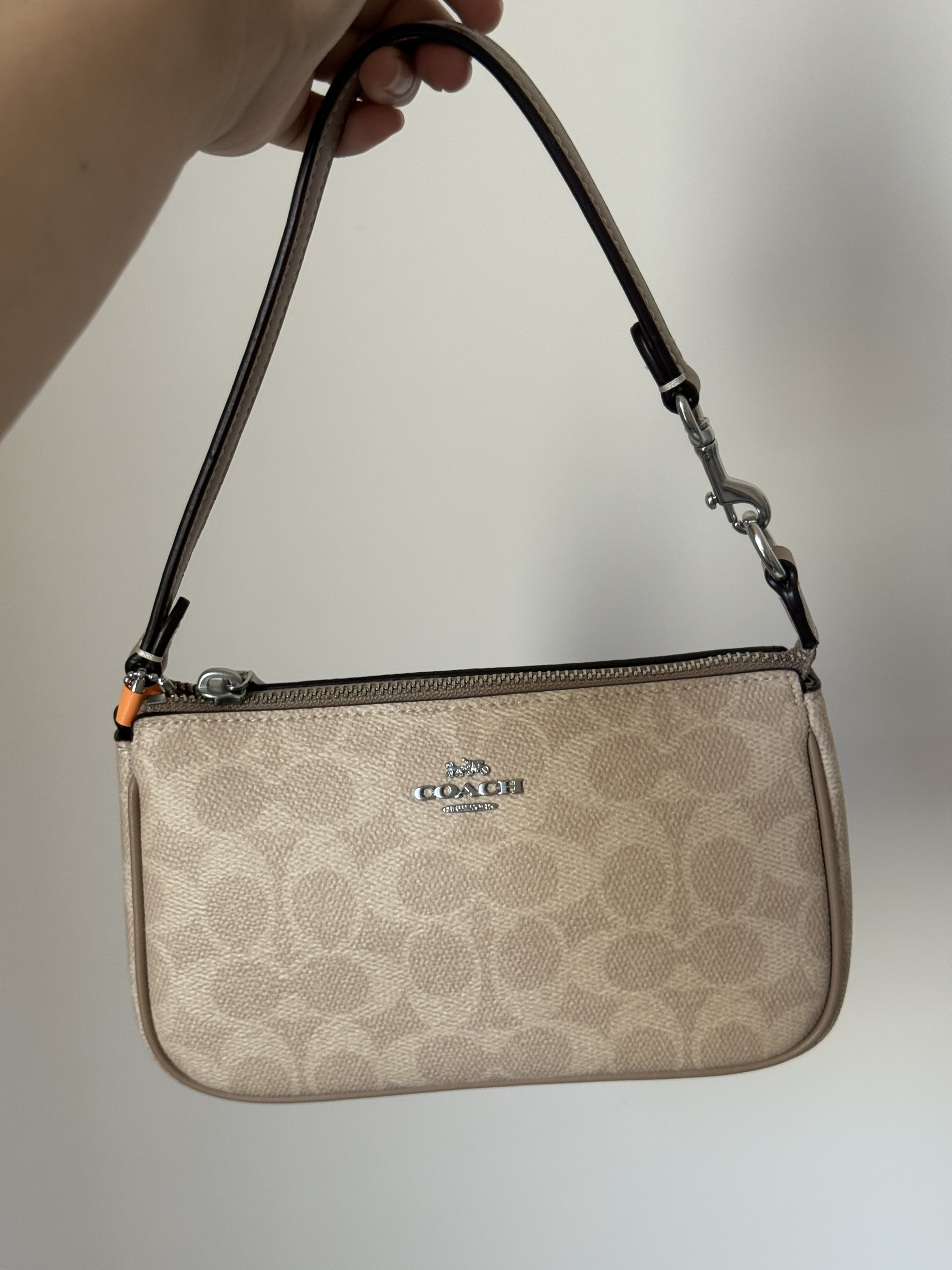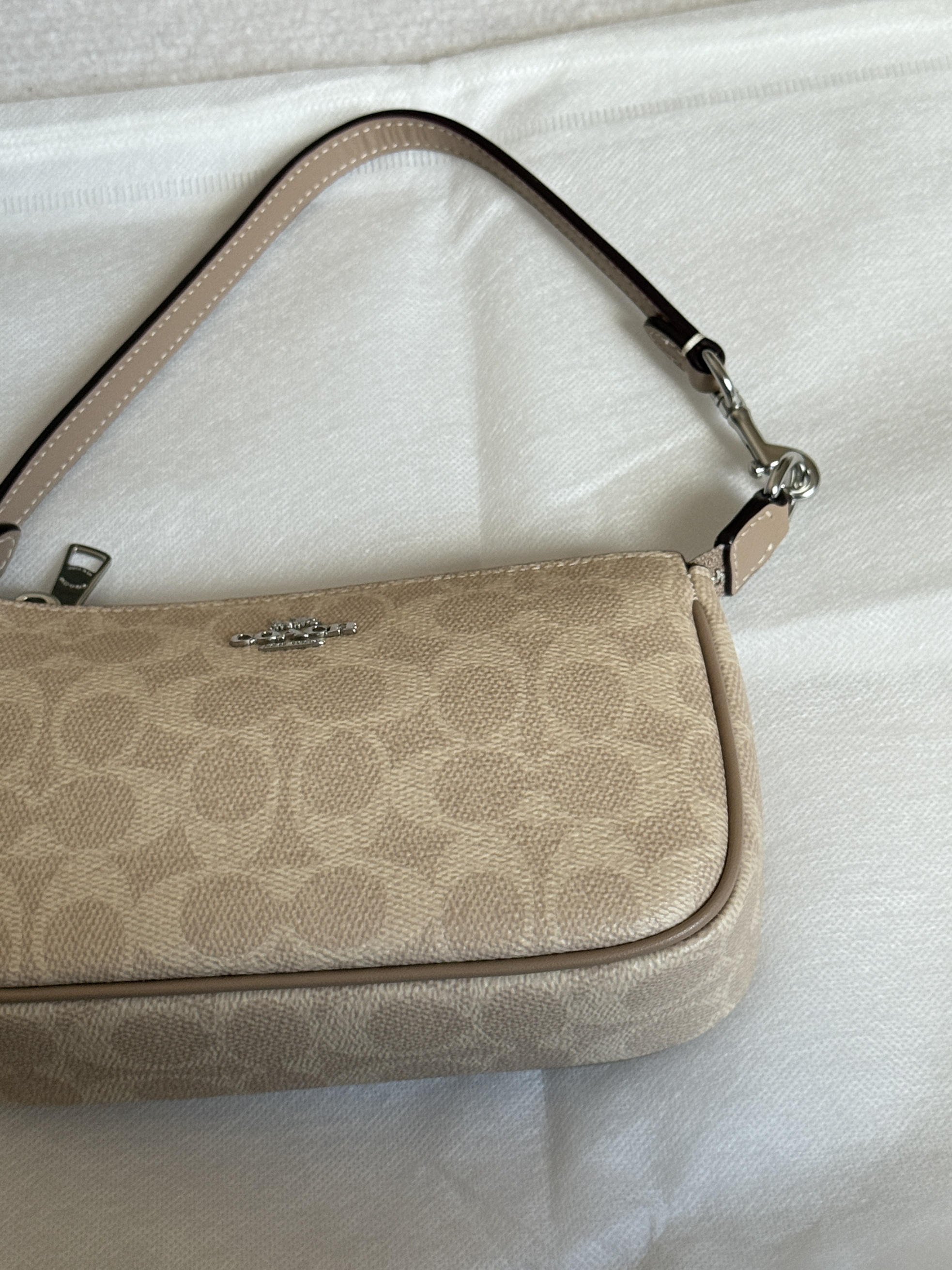 本篇笔记关联了Coach Nolita 19 小号 复古品牌徽标经典老花印花拉链封口涂层帆布人造革手拎腋下手提包单肩包 银色拼粉笔等商品,为用户提供真实的使用体验和购买参考。