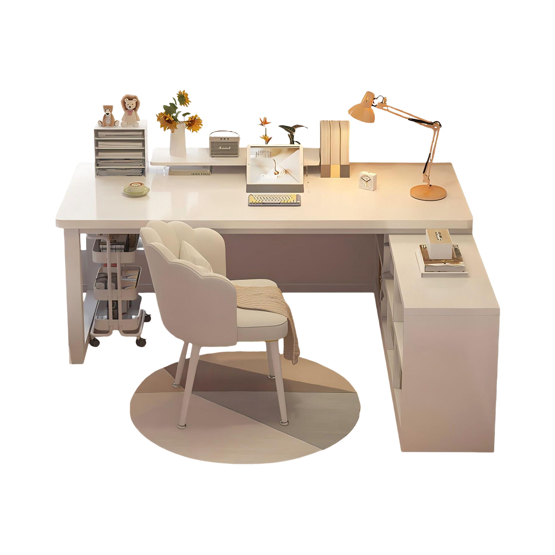 最近我找到了一件超适合放在卧室的宝贝👍。这是一张L型转角电脑桌,自带书架,暖云白色调简约又ins风满满🎈!书桌的台面足够大,两台电脑加上一些小摆件都毫无压力👏~底下的柜子用来收纳也相当nice😉~像我的一些玩偶、手办都找到家啦!美中不足就是刚开始组装的时候,对着说明书研究了好一阵,但最后弄好了真的成就感满满💪。如果你也想要在卧室打造一个属于自己的学习、工作或是娱乐小天地,可千万别错过它哟❤~