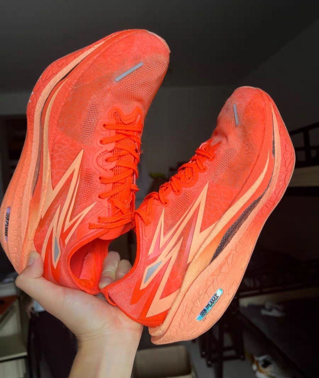 度子家的飞燃4代,我单看他的配置方面,那他真的很强,但是虽然采用进口的中底材料,但是他垃圾的发泡技术,导致这双鞋脚感并不是多么惊艳,前掌软弹,后掌软弹,跑动感一般,推进力一般,鞋底比较耐磨,虽然说他是一双竞训竞速跑鞋,但就这拿来竞速还是算了吧。除非你是大正🤨