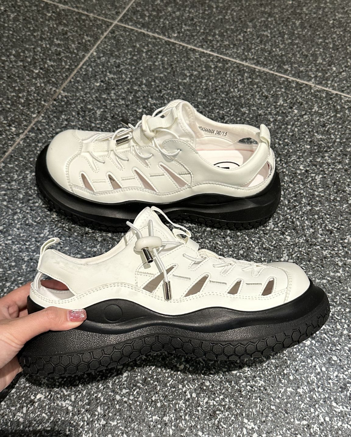 罗马凉鞋 透气 低帮生活休闲鞋4.9cm 女款极地白 想要 小五5 +关注 夏日百搭单品就选它! MASOOMAKE这款户外凉鞋,牛皮材质软软的质感满满~ 圆头设计显的脚好小,5cm厚底拒绝不了一点~ 懒人弹簧扣一拉就穿脱,黑白色系好清爽,拍照好出片