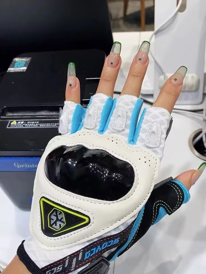 给宝子们分享我新买的半指骑行手套👏! 真的好用😊。它颜值巨高,戴起来也特上镜👍。质量相当不错,我骑了蛮久了,也没咋磨损 不过尺寸选择有限,没挑到百分百合适的,算是个小遗憾。夏天骑车戴上,不闷还挺舒服🤩