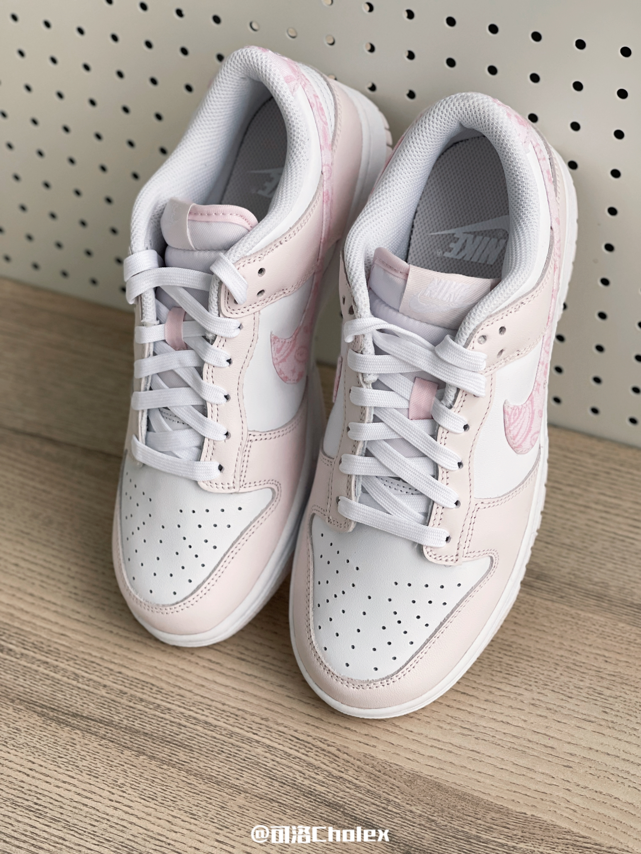 今天分享一双粉白色耐克板鞋。 颜值这方面那是真的很高,女生看了都喜欢。 粉色加白色的拼接,很可爱。 雨天尽量不要穿,不耐脏。 鞋底是一块防滑耐磨大底。 很百搭,夏天穿着很有活力。 价格还是很实惠,性价比还蛮高的。